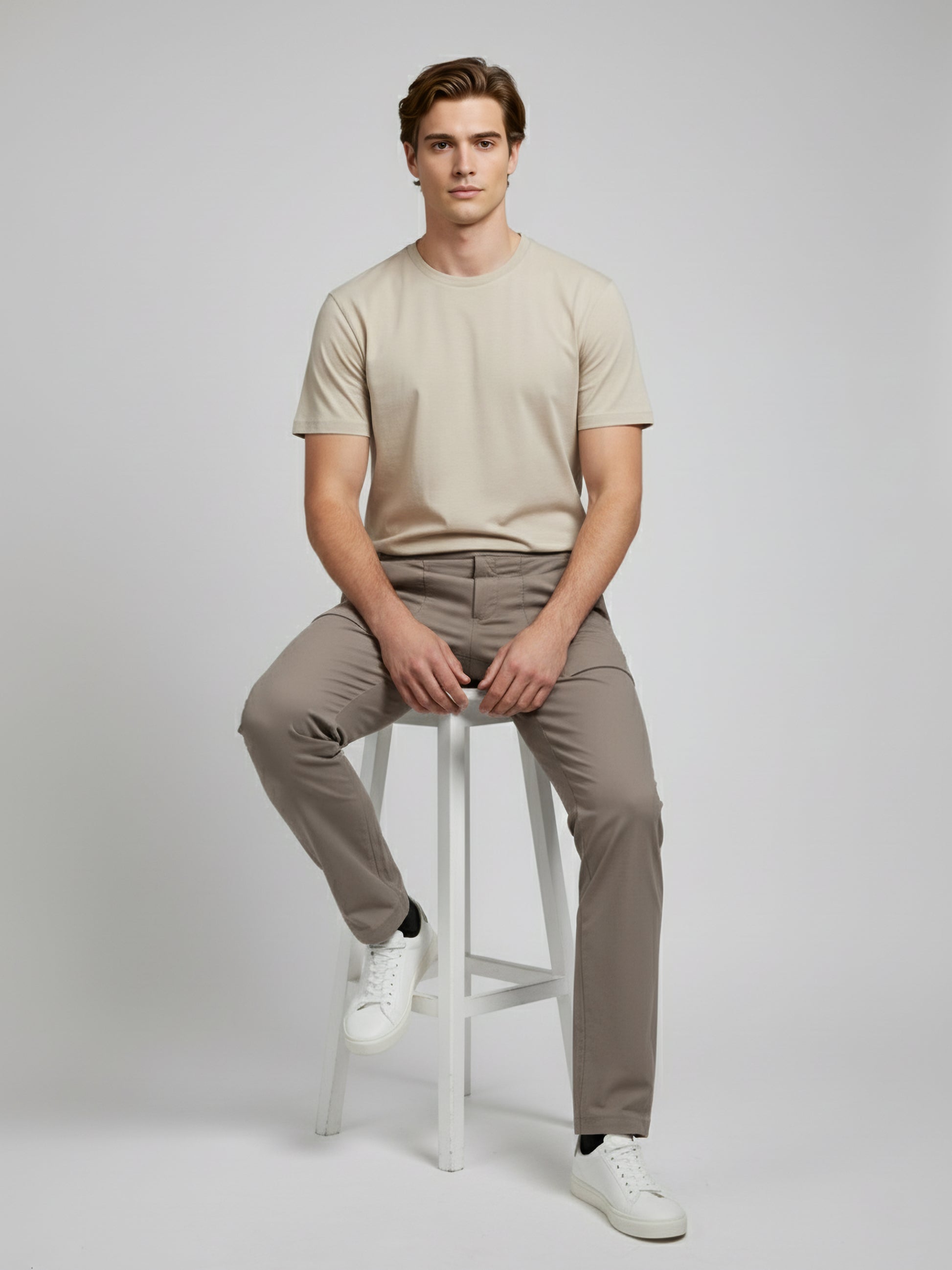 Discover comfort and style with Celio's beige solid nylon cargo trousers. Perfect for casual occasions, these regular fit trousers offer a contemporary look for men. Disclaimer: All other items in the image are only for display purposes and will not be a part of the delivery content. Product colour may slightly vary due to photographic lighting sources. Country of Origin - India.