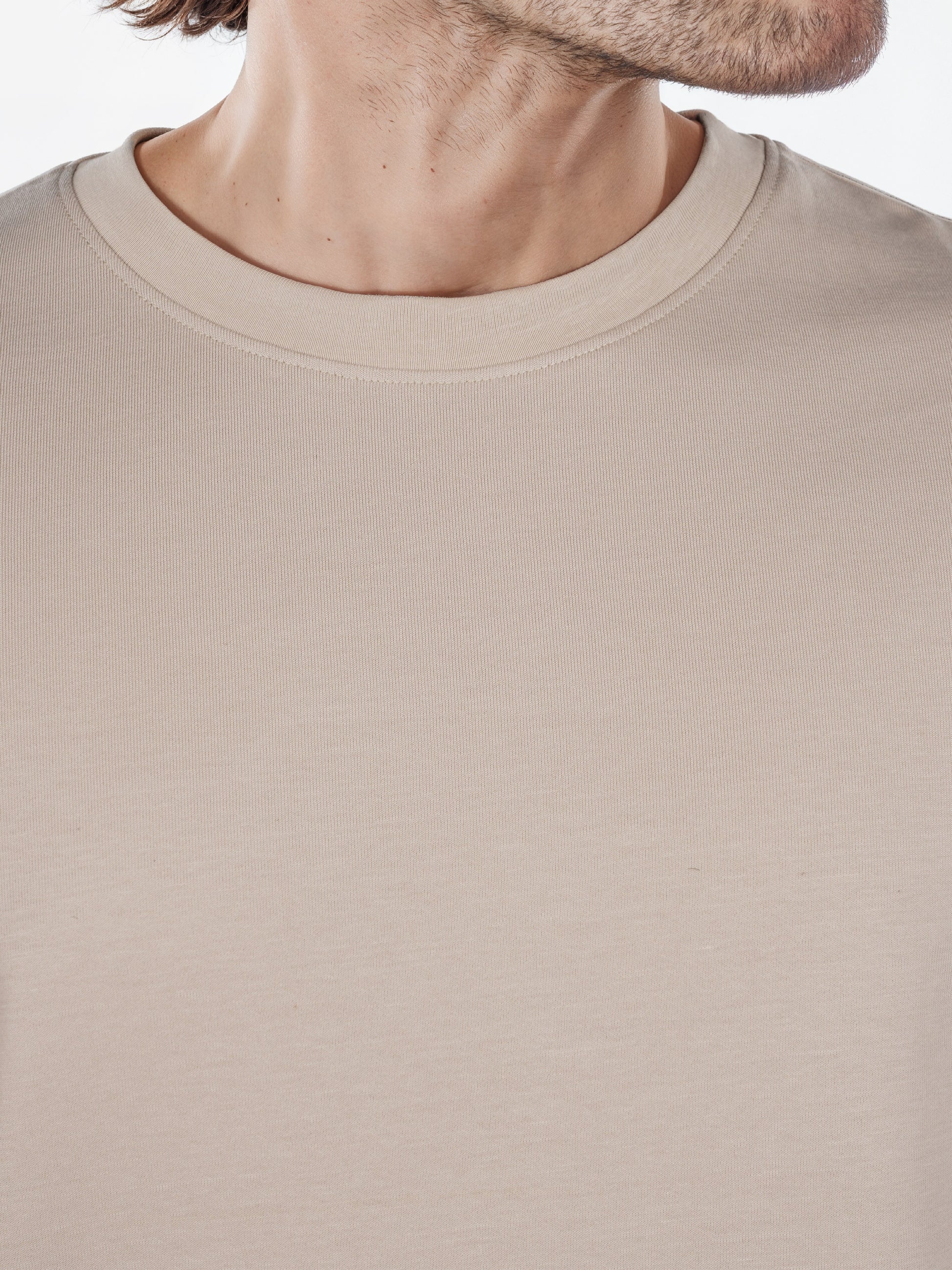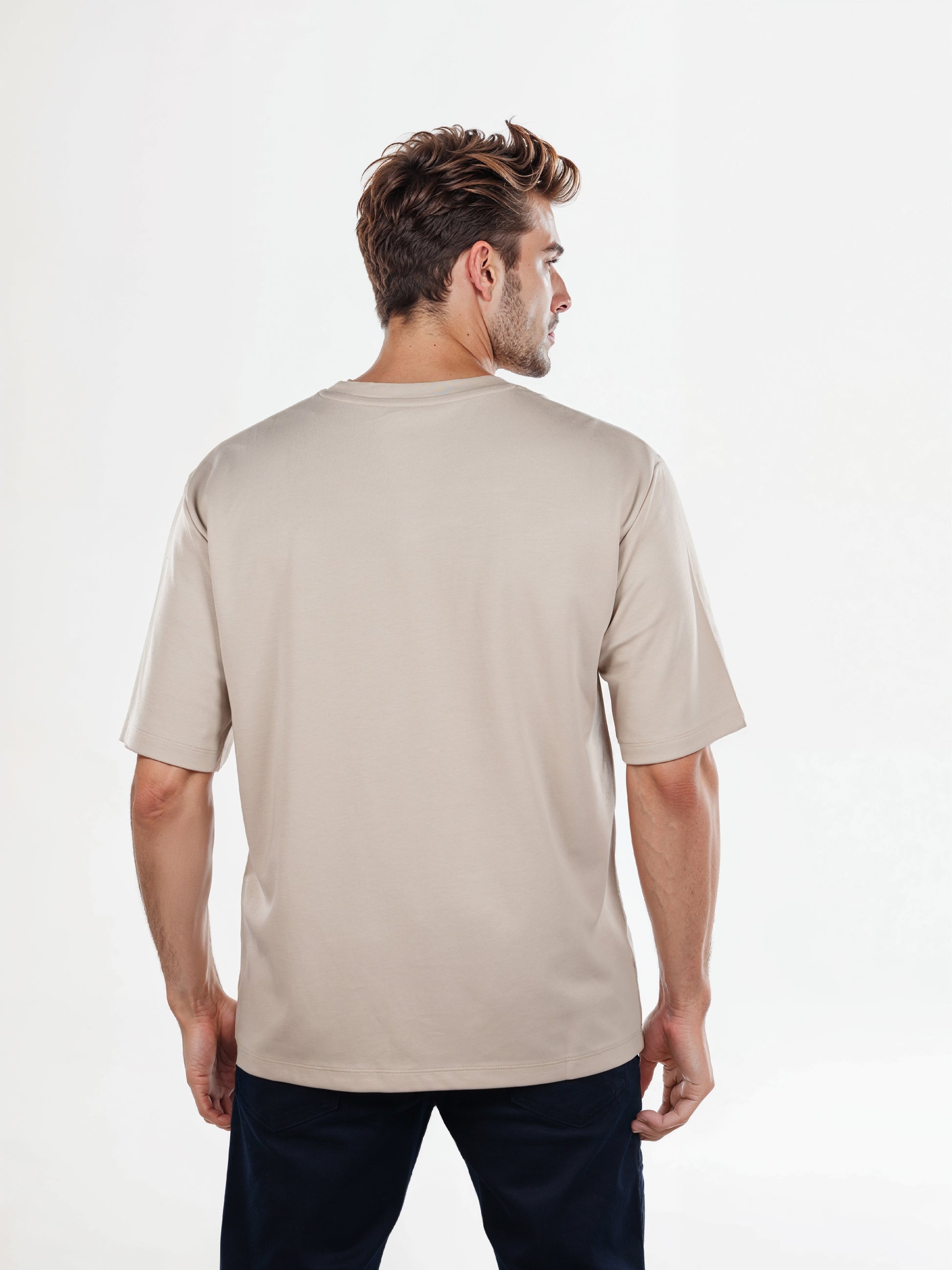 Celio* Solid Regular Fit Poly-Cotton Beige T-Shirt