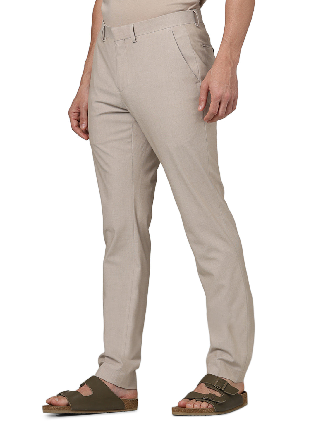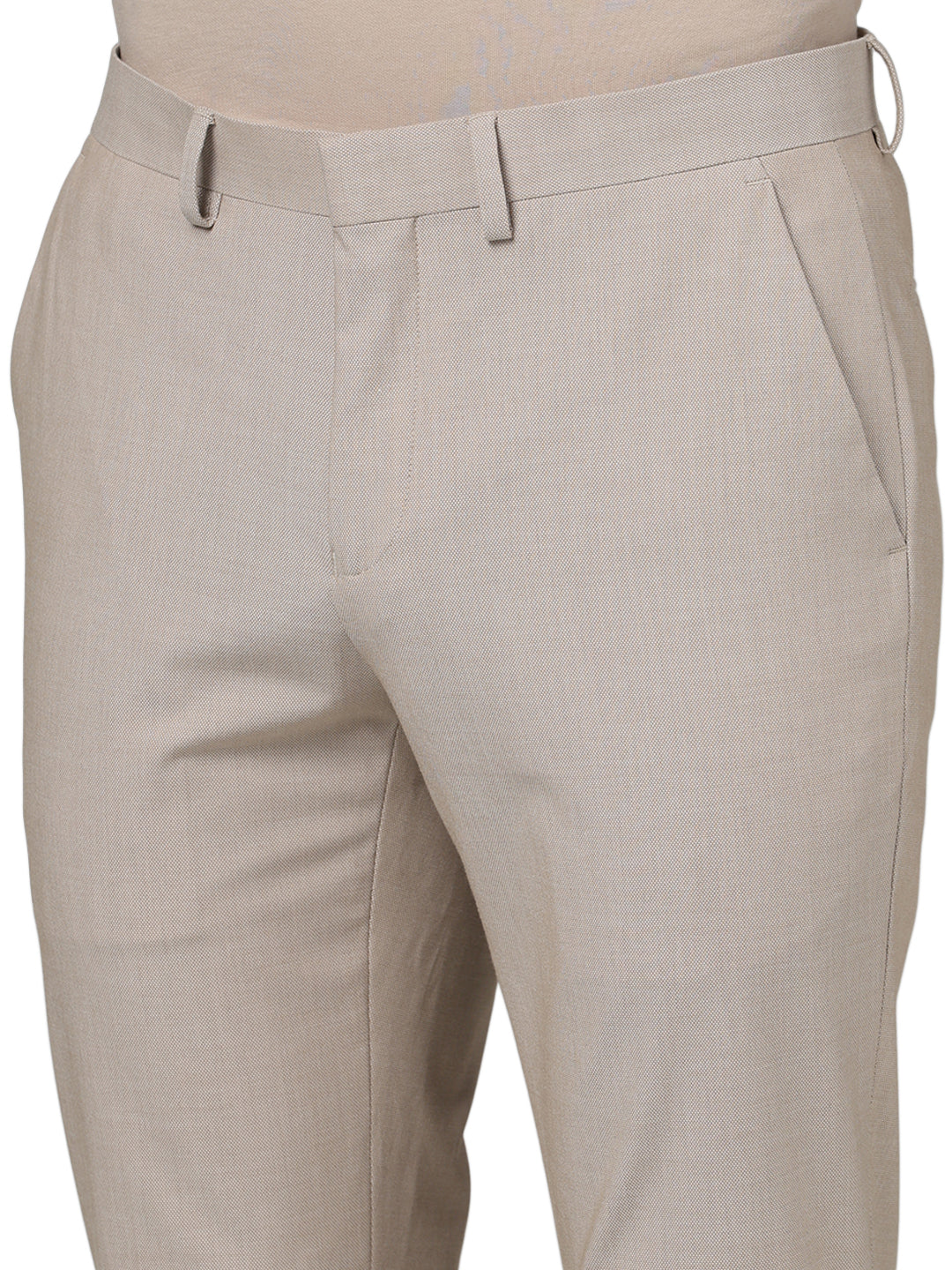 Celio* Formal Polyester Slim Fit Beige Trouser
