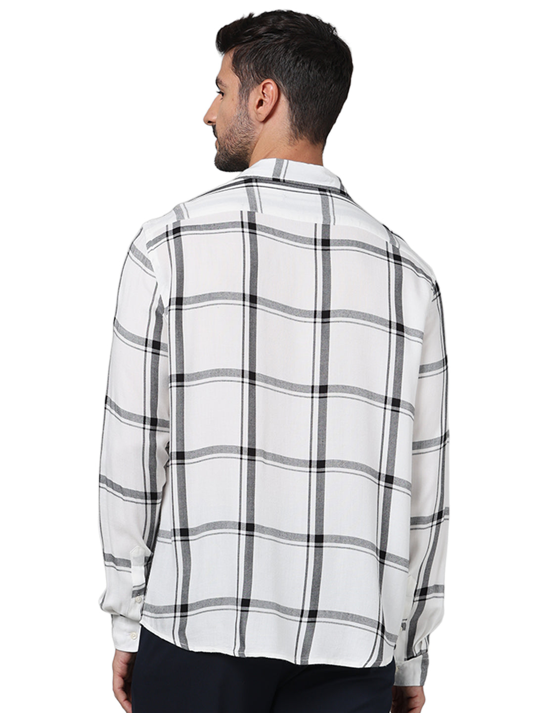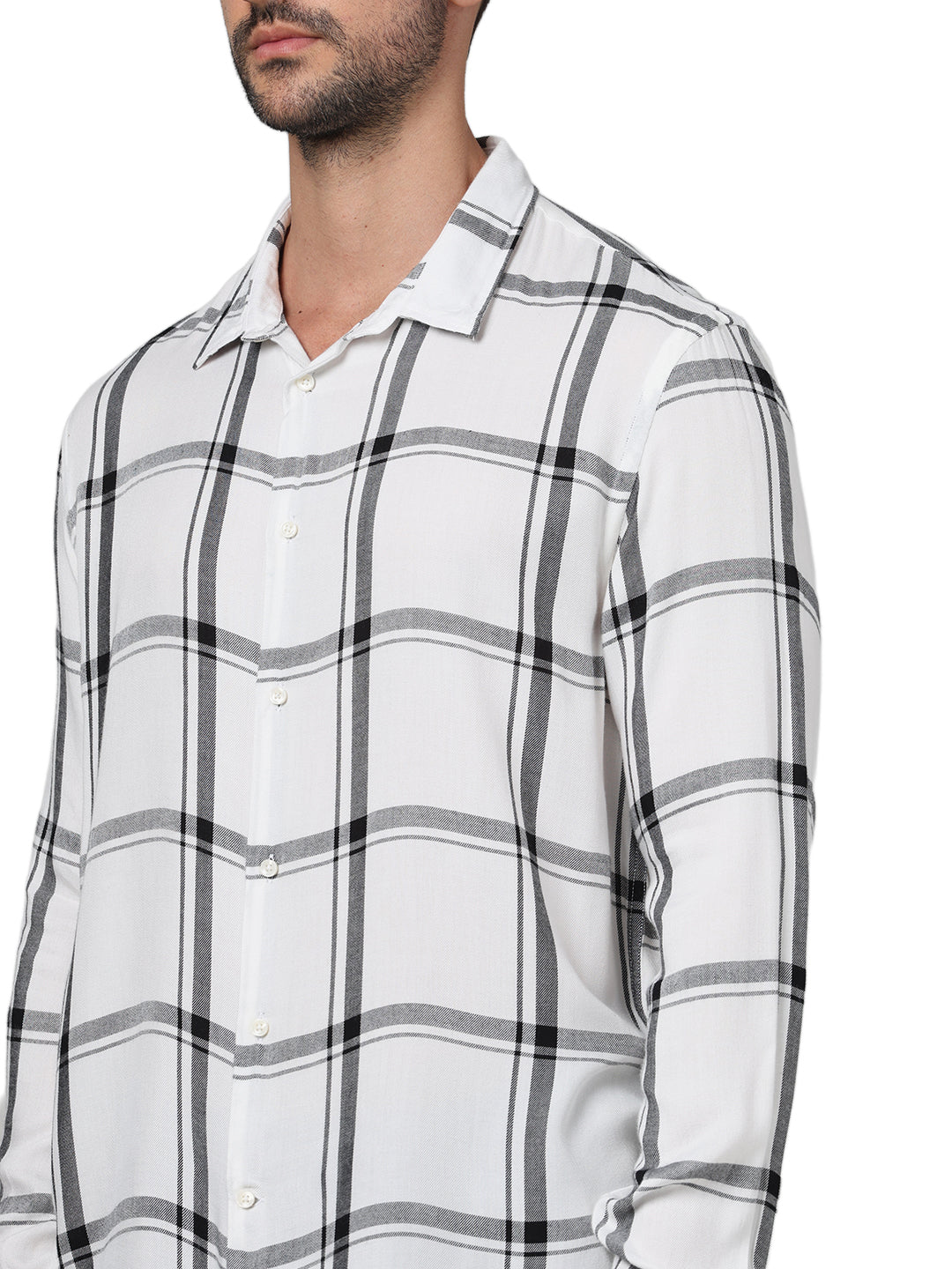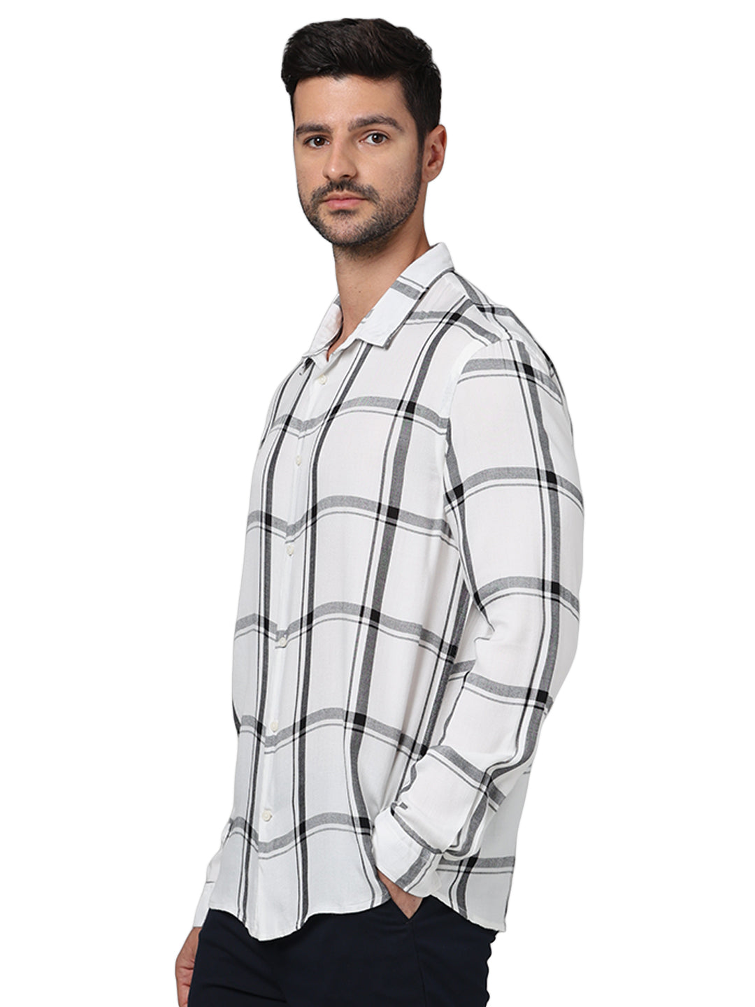 Elevate your casual wardrobe with the Celio Men Beige Checked Shirt. Crafted from soft viscose rayon, it features a spread collar, long sleeves, and a comfortable regular fit. Disclaimer: All other items in the image are only for display purposes and will not be a part of the delivery content. Product colour may slightly vary due to photographic lighting sources. Country of Origin - India.