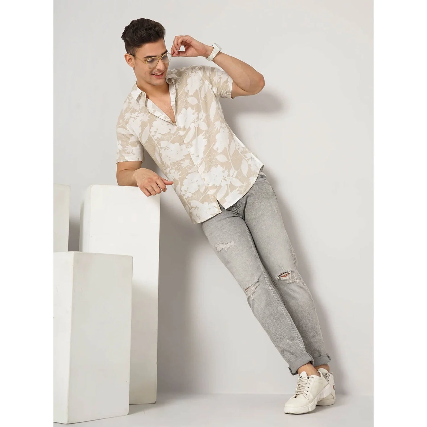 Celio* Floral Regular Fit Viscose Beige Shirt