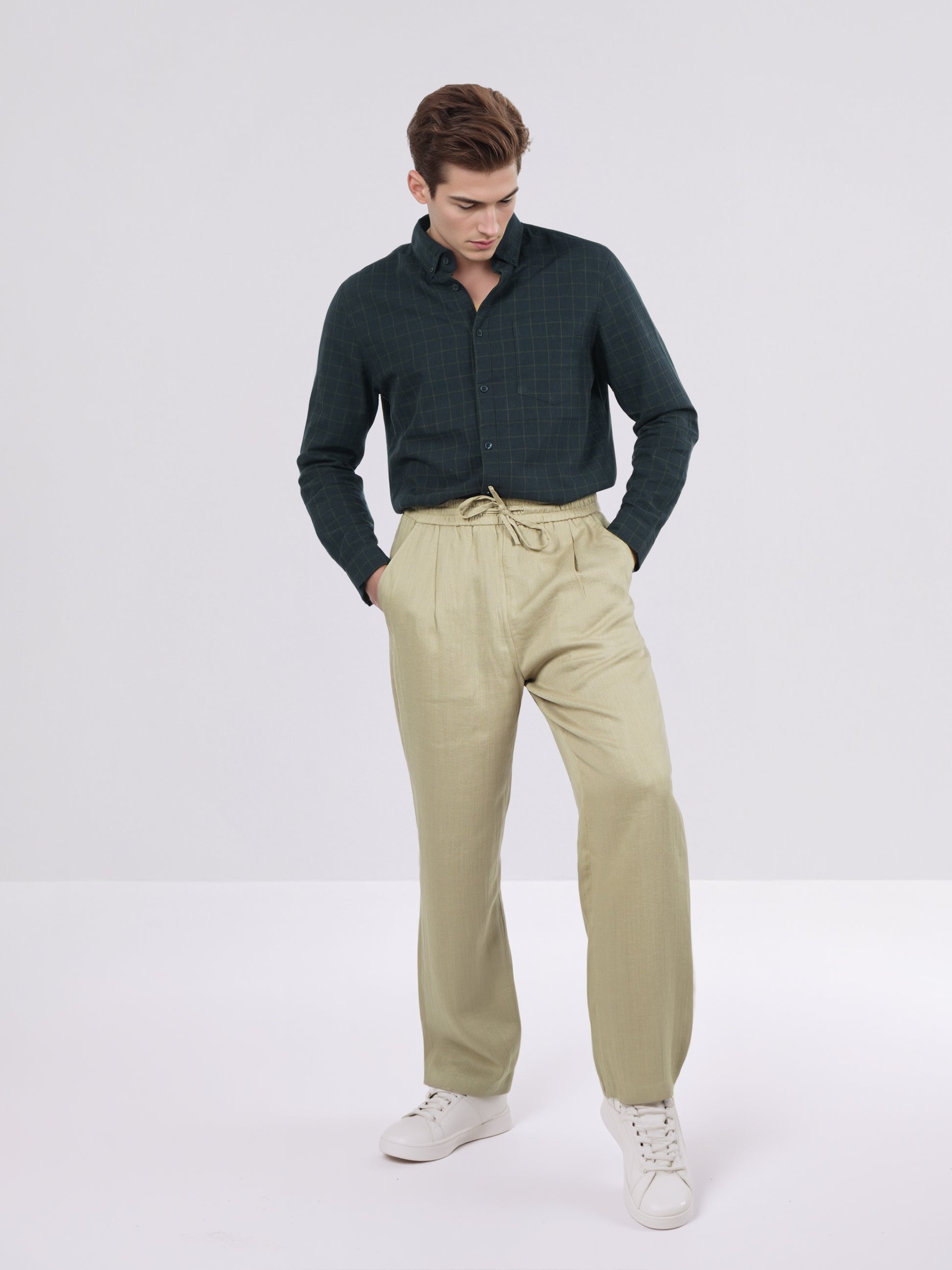 Celio* Men Beige Solid Loose Fit Viscose Trousers