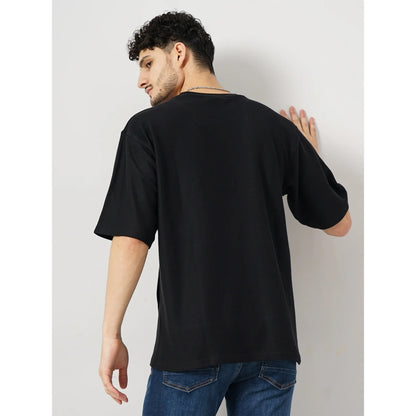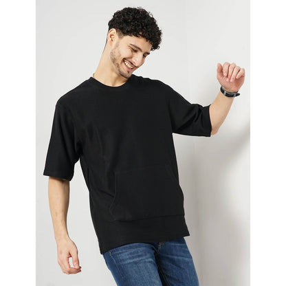 Celio* Solid Regular Fit 100% Cotton Black T-Shirt