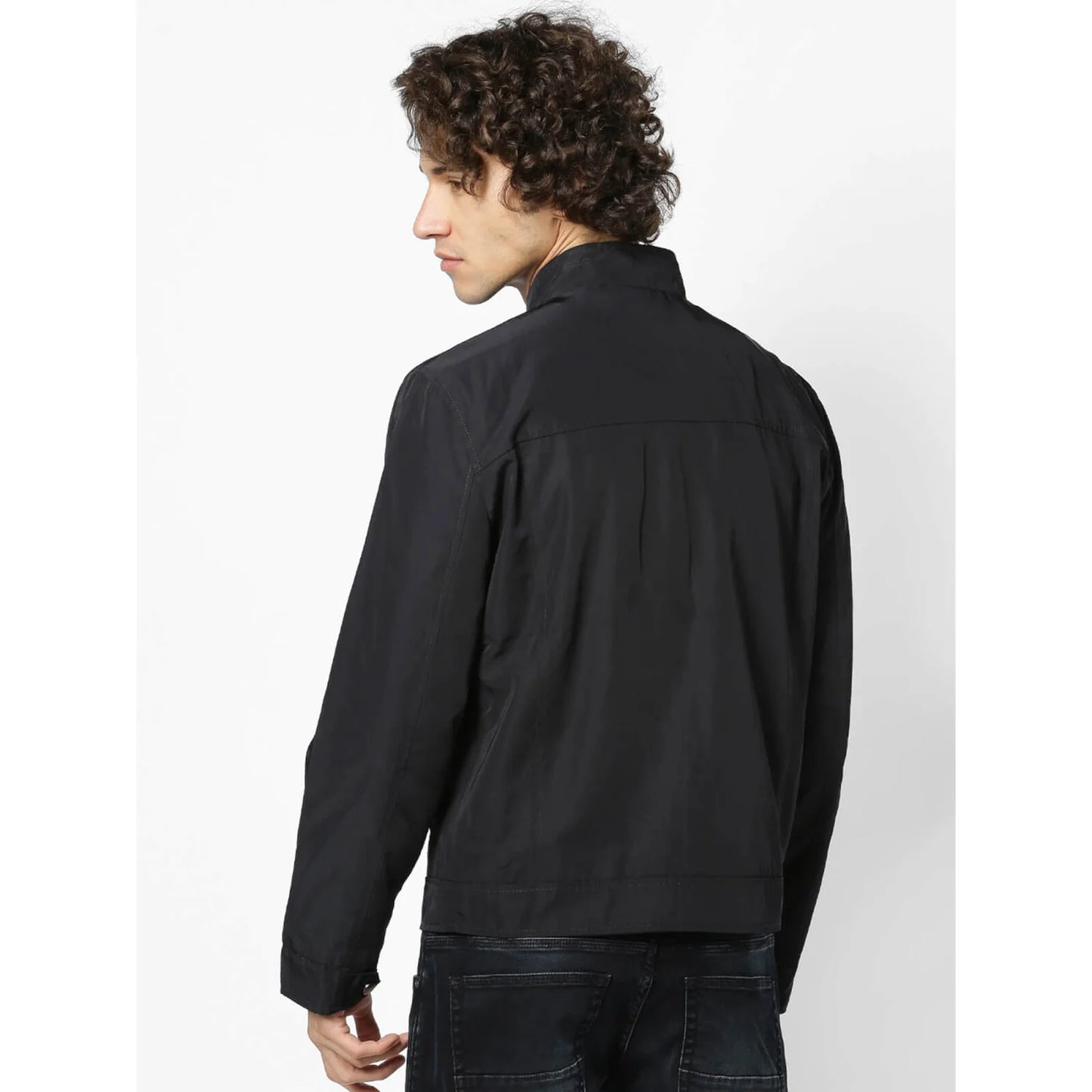 Celio* Solid Regular Fit Cotton-Blend Black Jacket