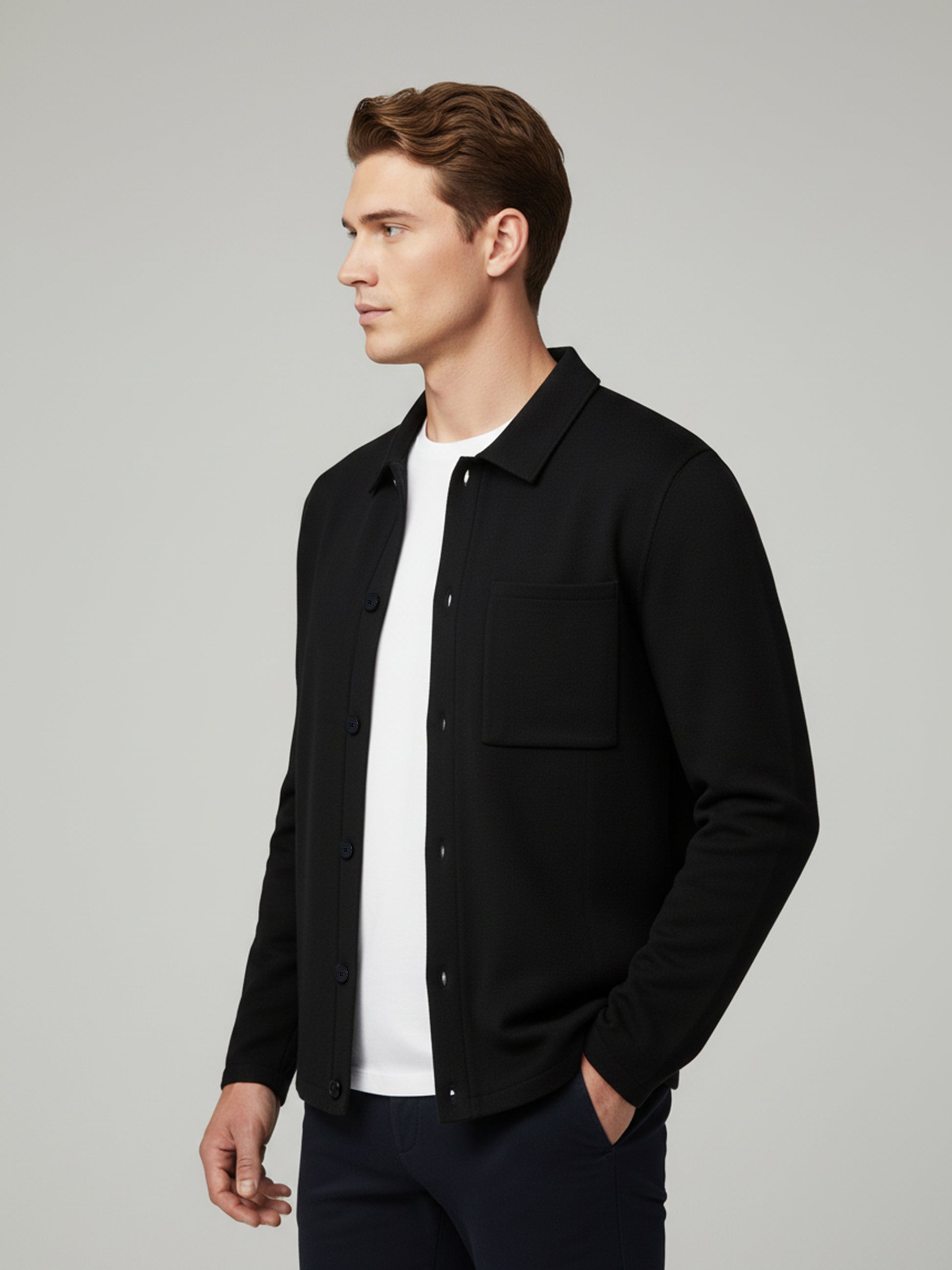 This Celio men's black jacket is crafted from a comfortable cotton-blend fabric. With long sleeves and a regular fit, it's a stylish choice for casual occasions. Disclaimer: All other items in the image are only for display purposes and will not be a part of the delivery content. Product colour may slightly vary due to photographic lighting sources. Country of Origin - India.