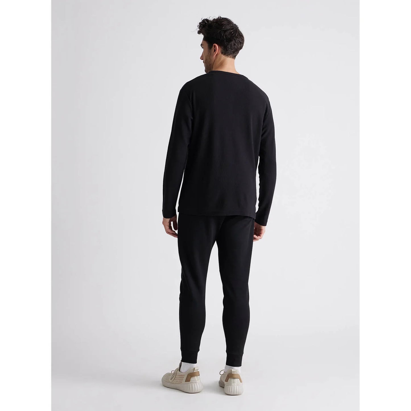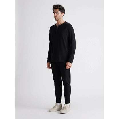 Stylish solid black long sleeve t-shirt by Celio for men. Made from a comfortable cotton blend, perfect for casual occasions. Disclaimer: All other items in the image are only for display purposes and will not be a part of the delivery content. Product colour may slightly vary due to photographic lighting sources. Country of Origin - India.