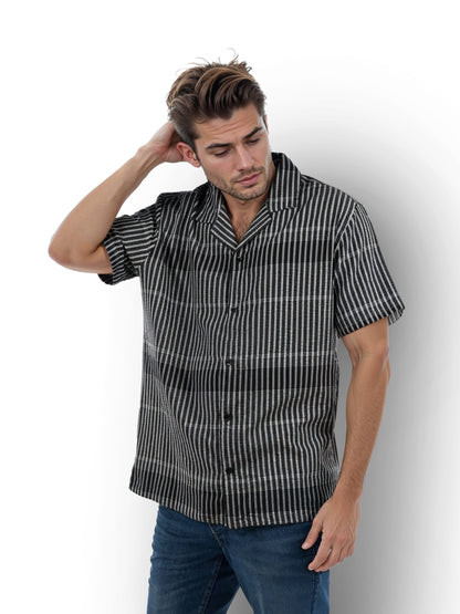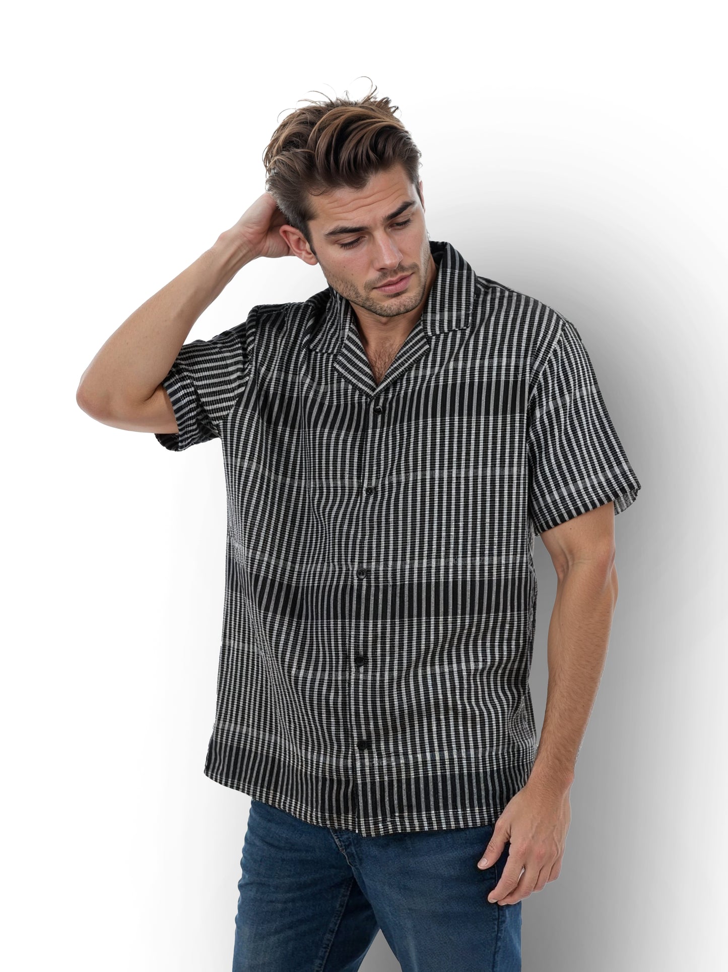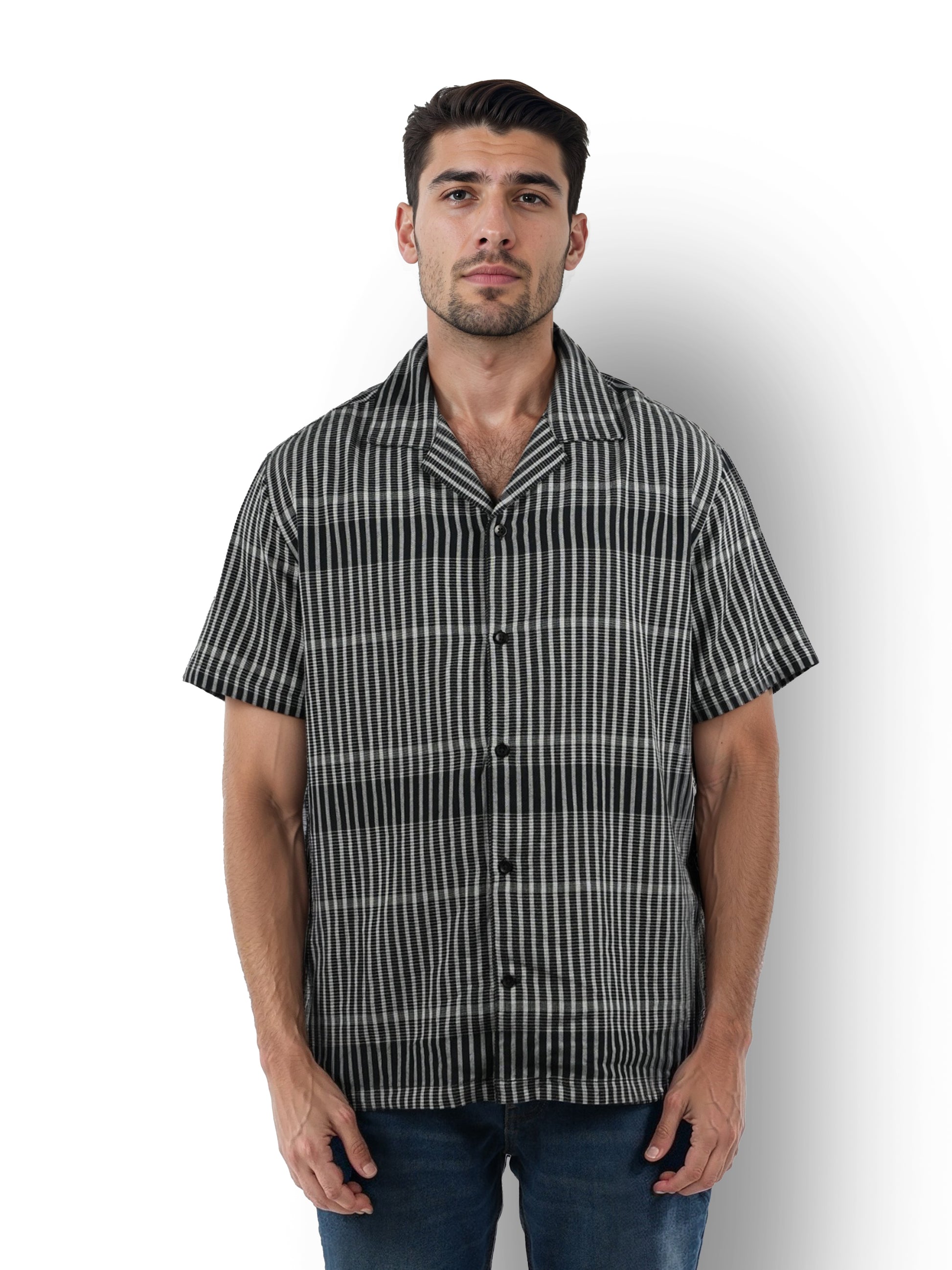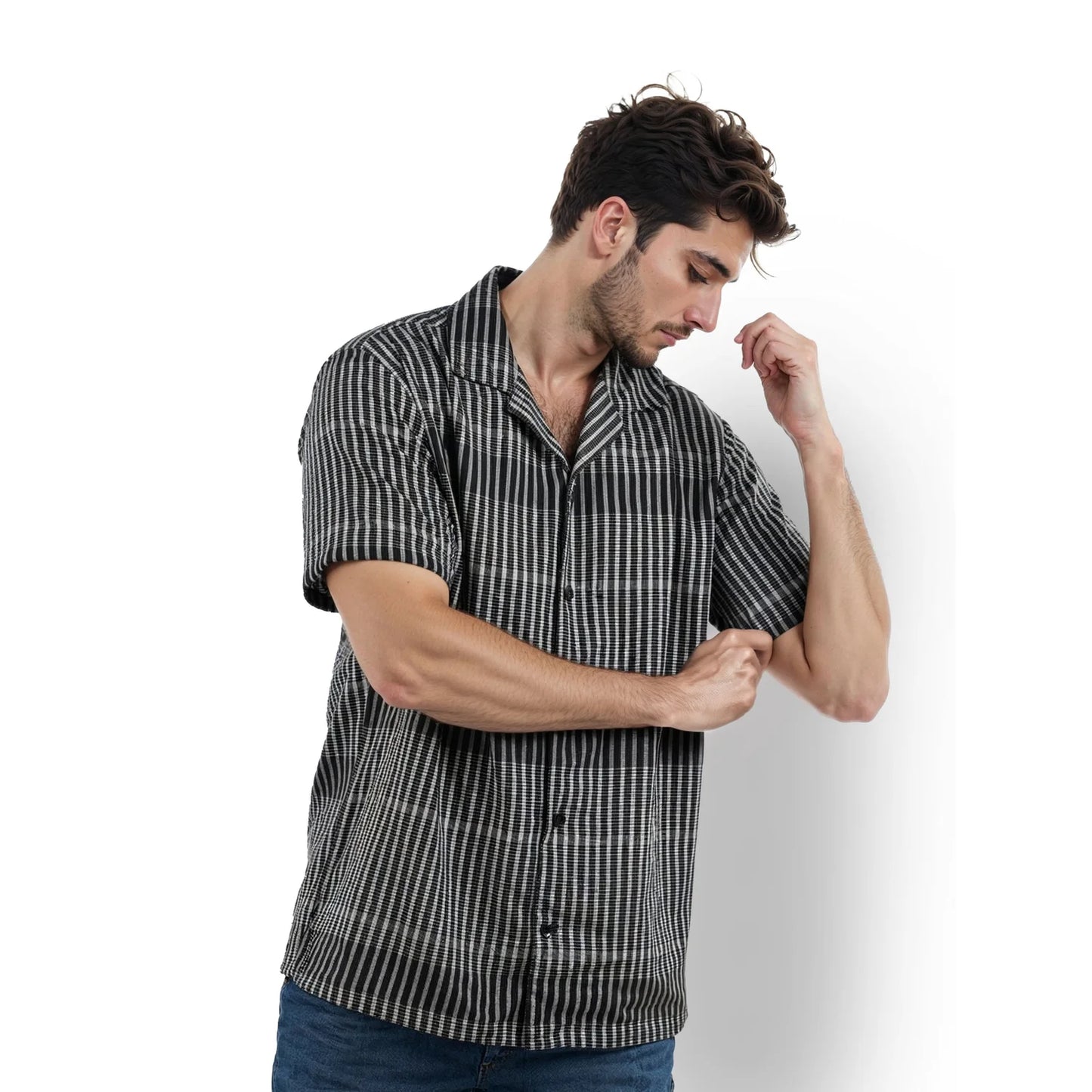 Elevate your casual look with the Celio Men’s Black Cuban Collar Checked Shirt. Crafted from soft cotton, it features short sleeves and a stylish checked design, perfect for any occasion. Disclaimer: All other items in the image are only for display purposes and will not be a part of the delivery content. Product colour may slightly vary due to photographic lighting sources. Country of Origin - India.