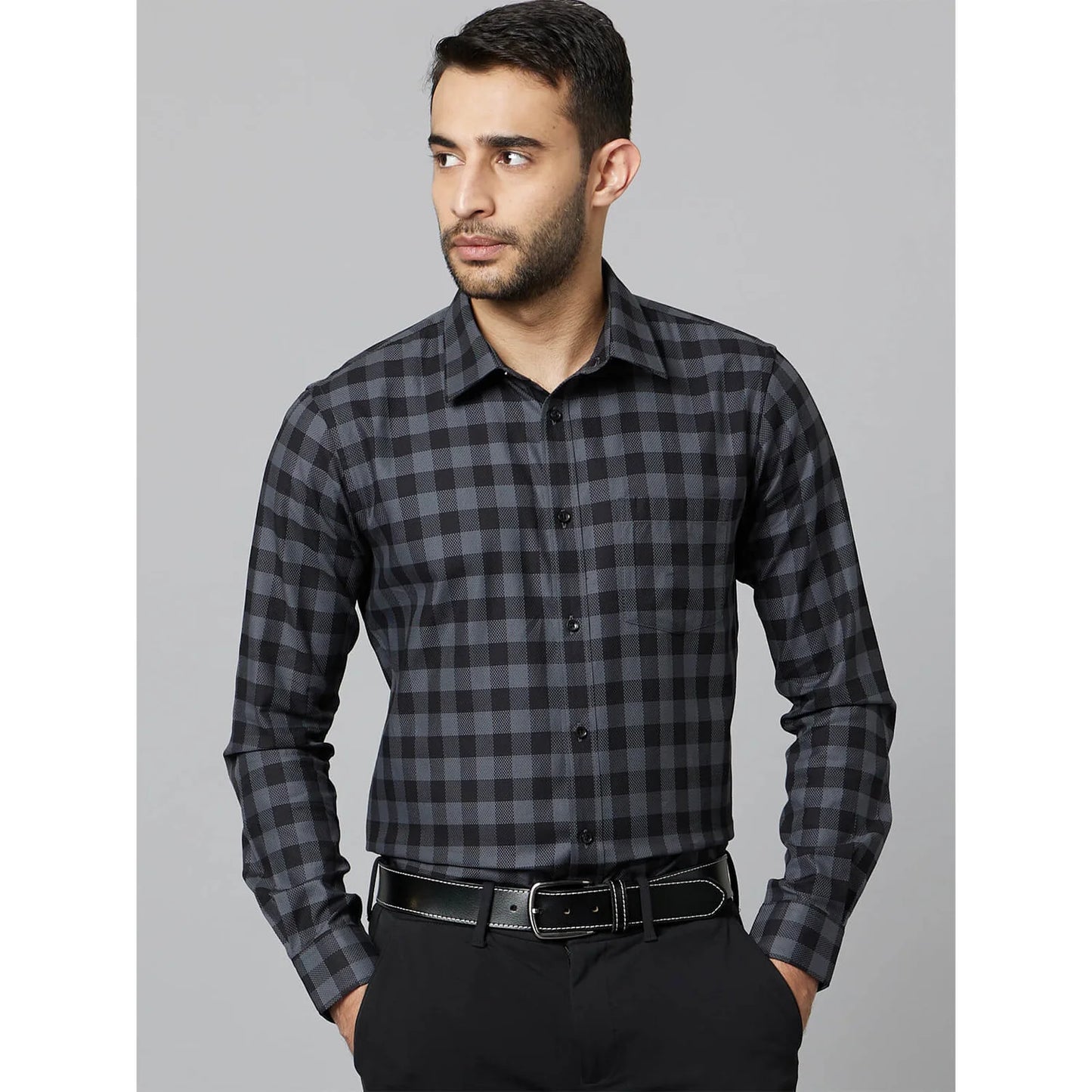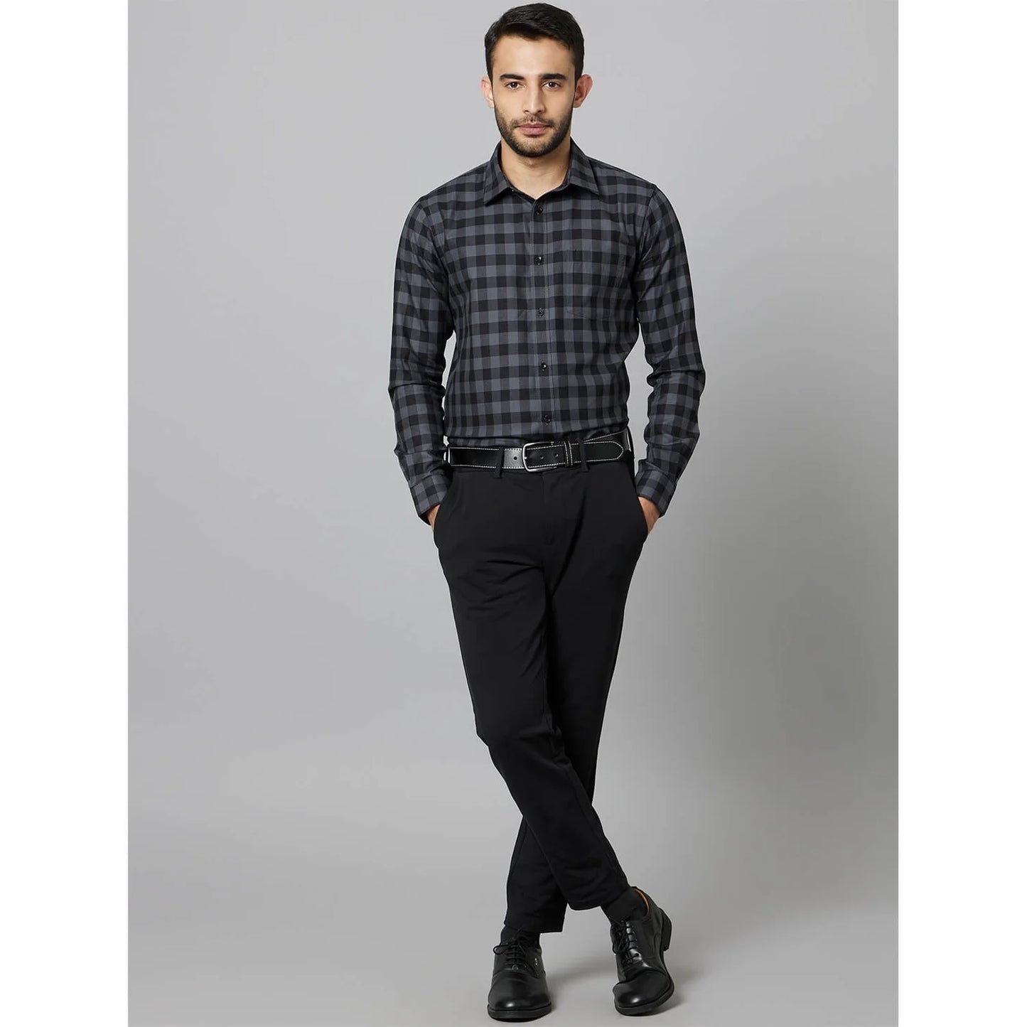 Celio* Checked Regular Fit Cotton Black Formal Shirt