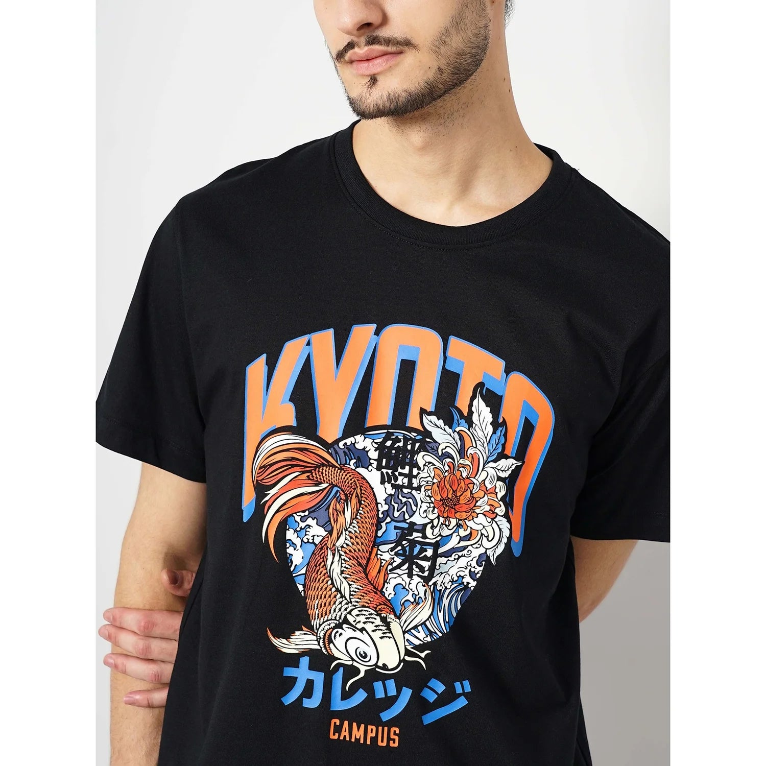 Celio* Graphics Regular Fit Cotton Black T-Shirt
