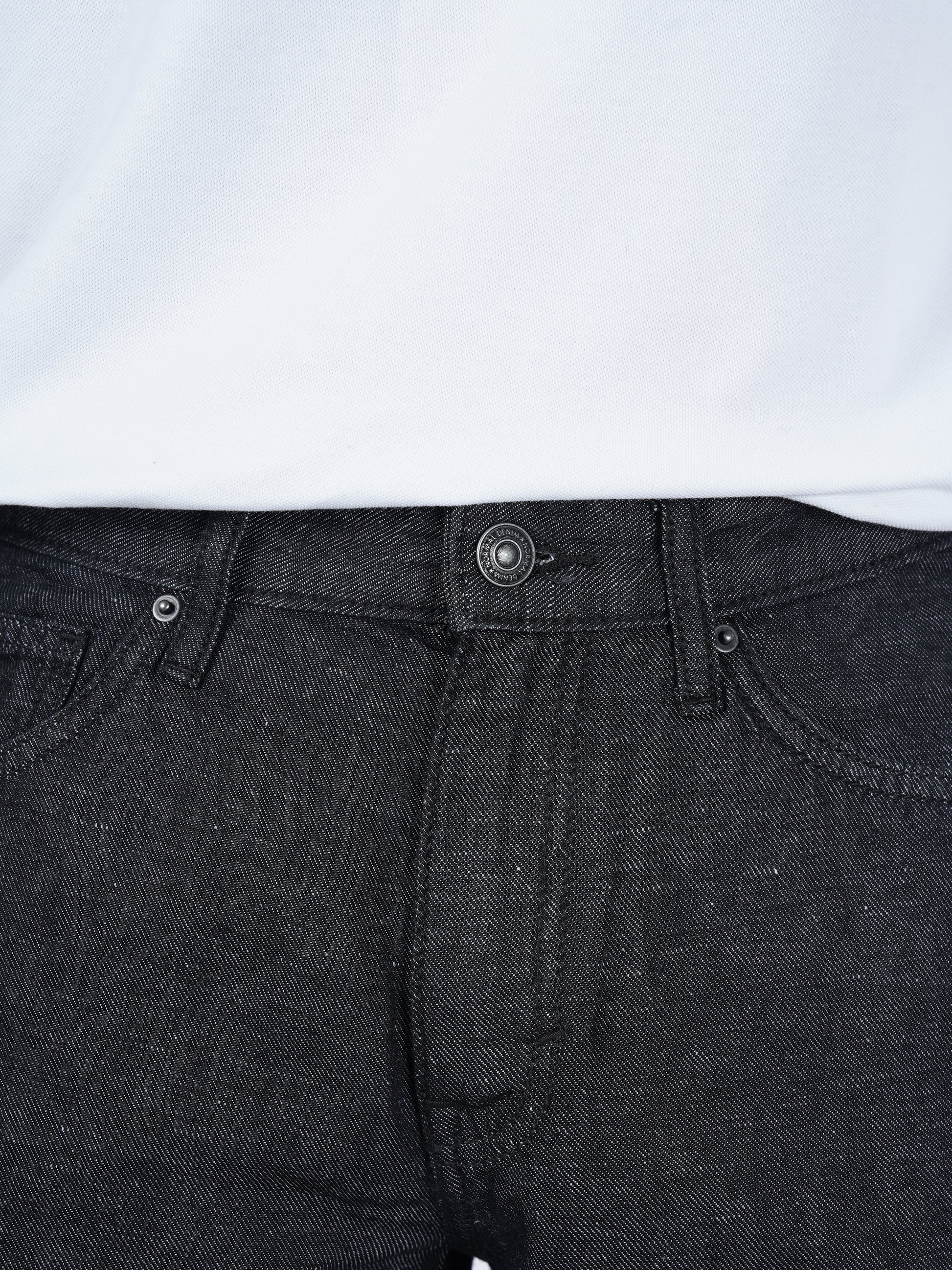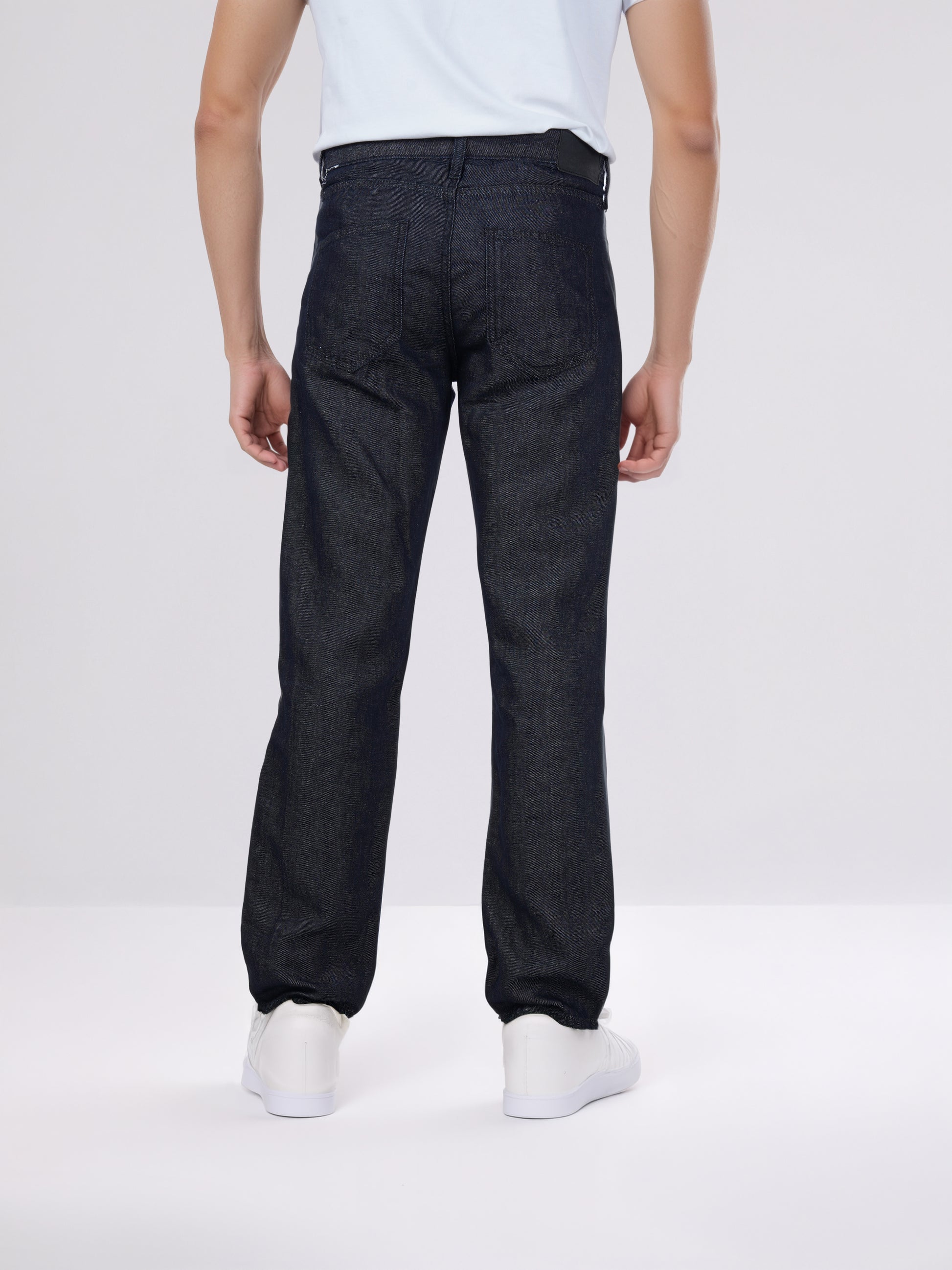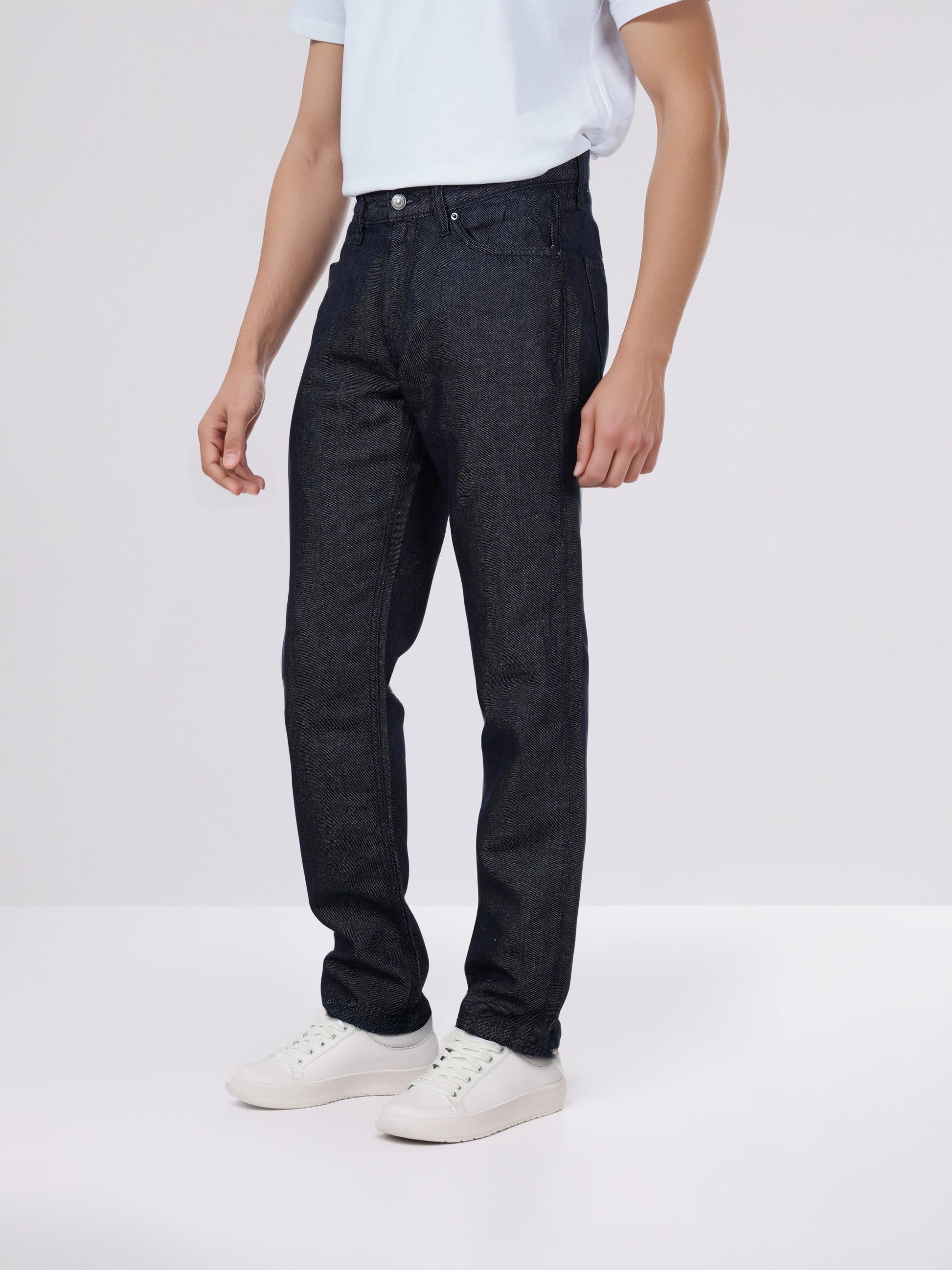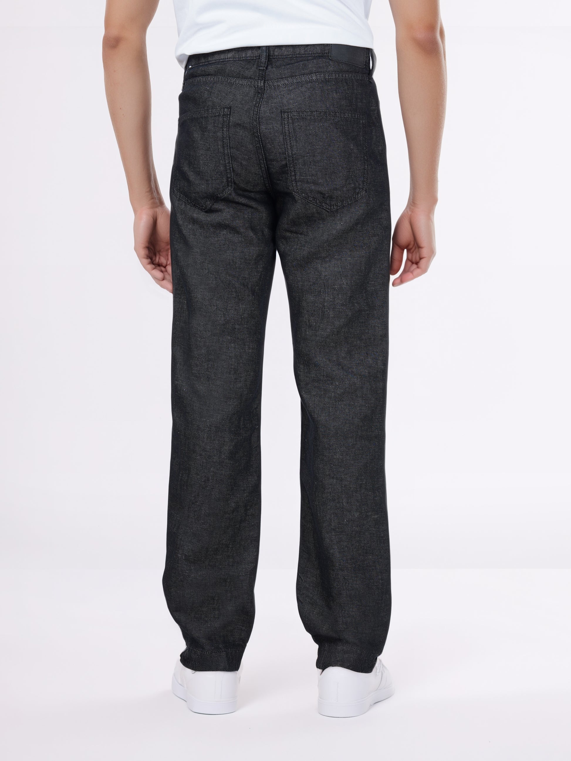Celio* Men Black Solid Straight Fit Cotton-Linen-Blend Jeans