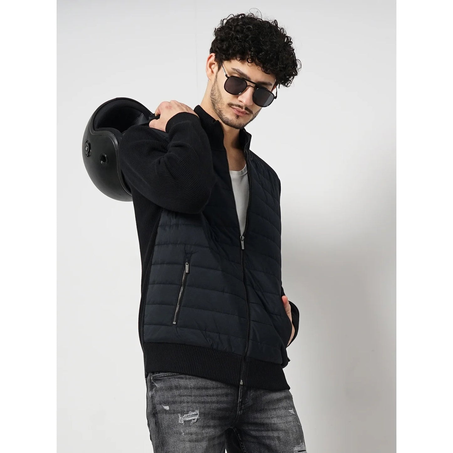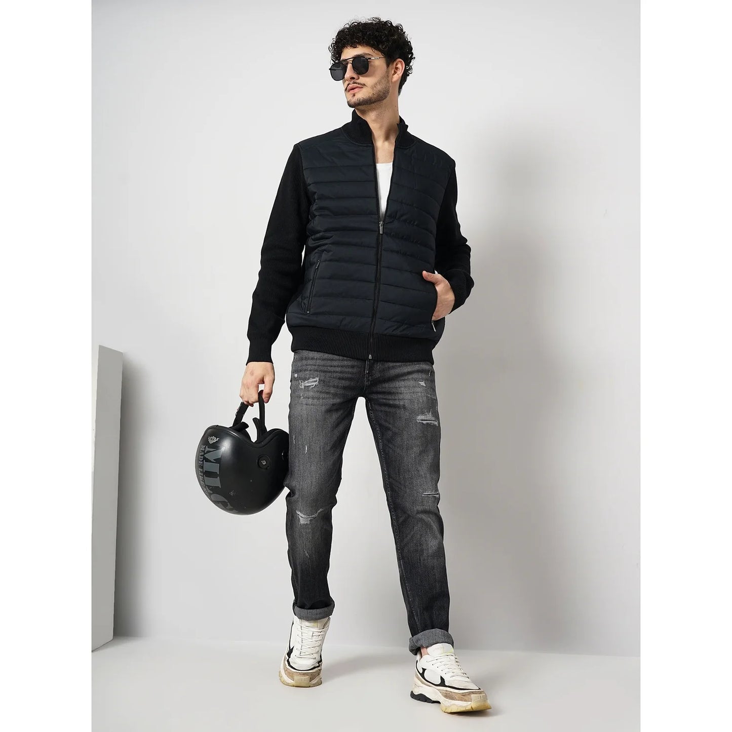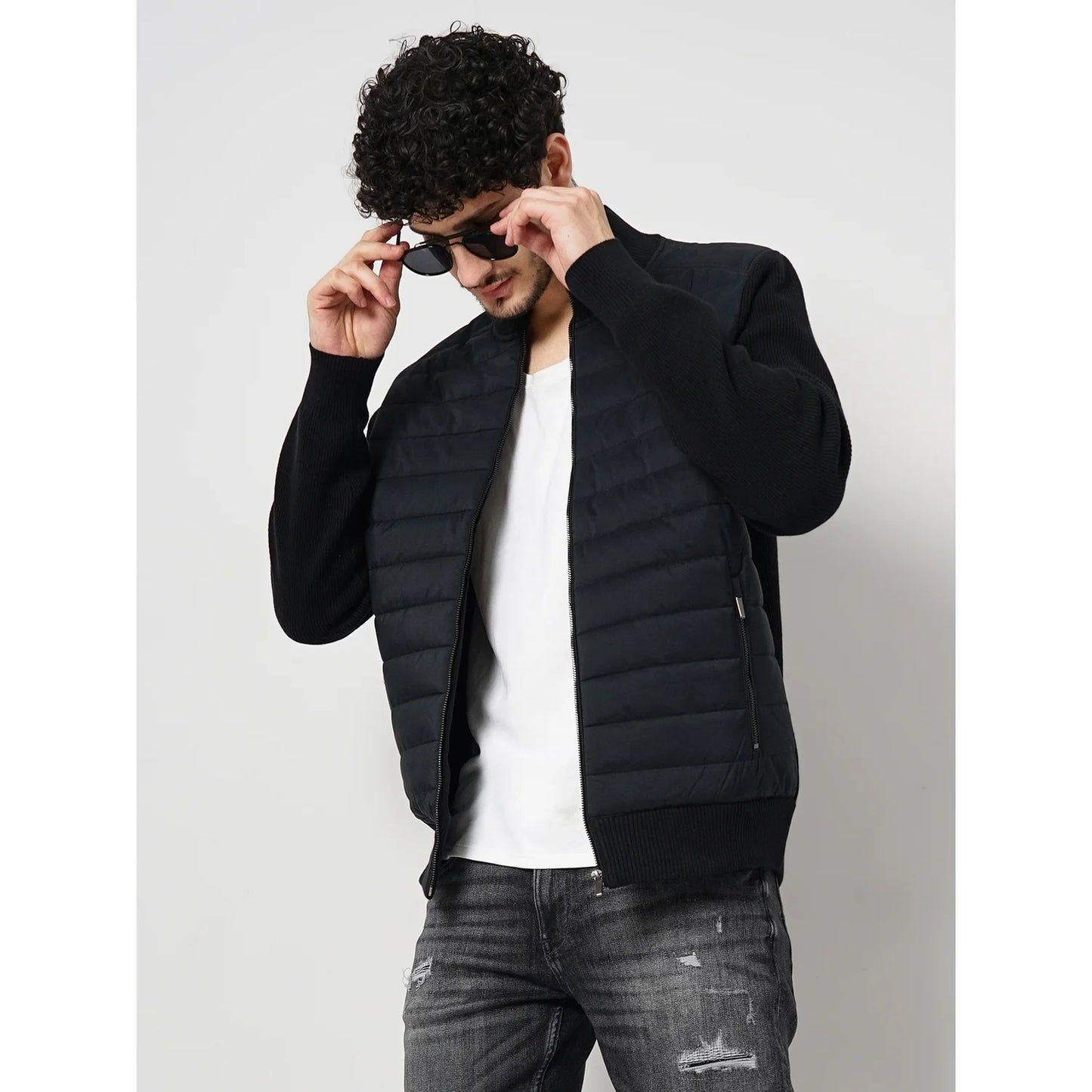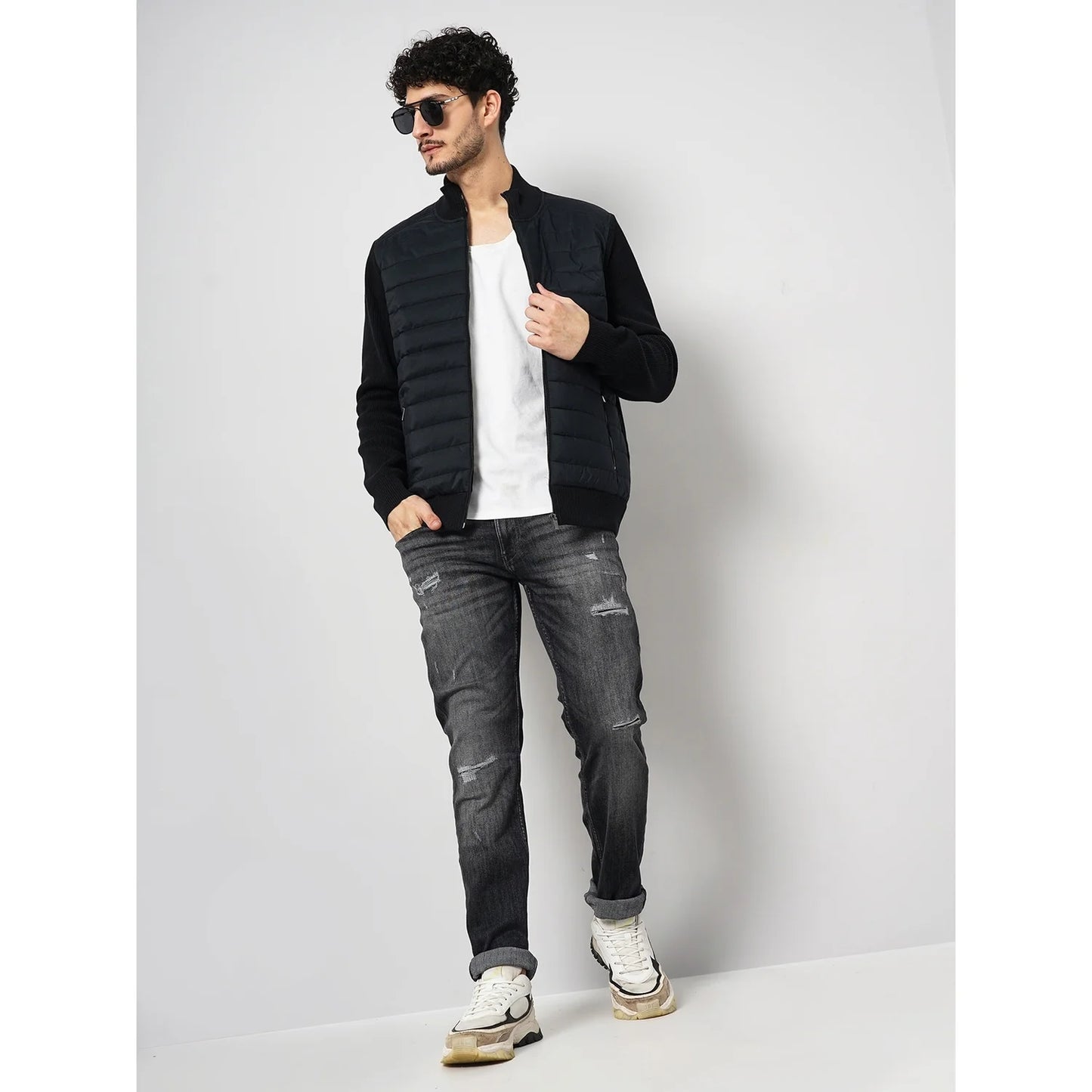 Celio* Solid Regular Fit Cotton-Poly-Blend Black Jacket