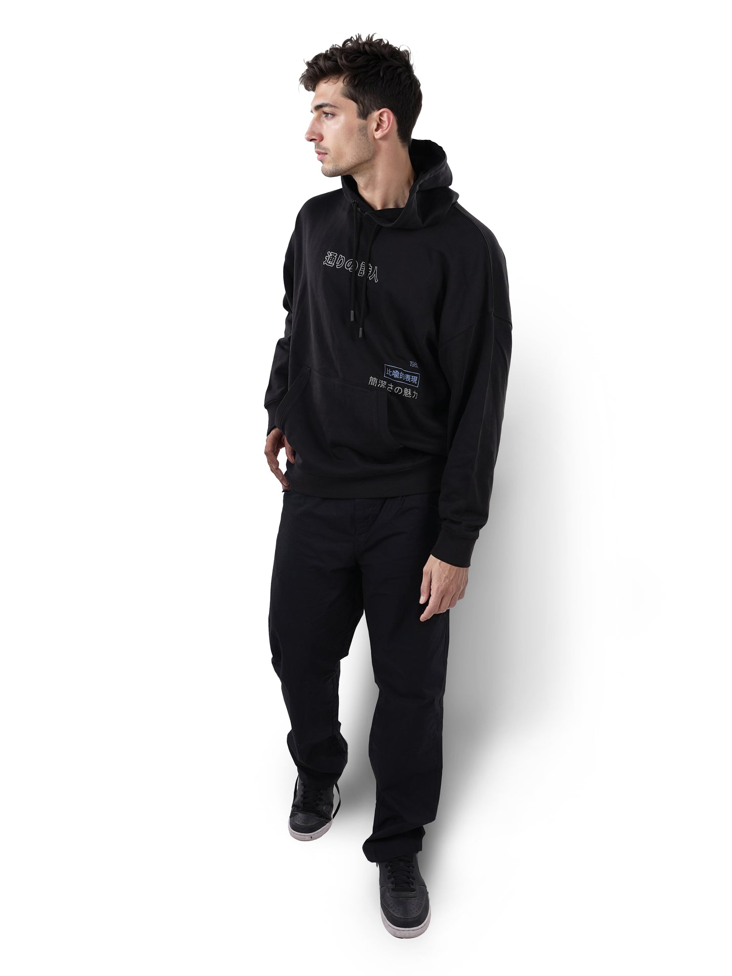 Stay stylish and comfortable in the Celio Men Black Hood Printed Sweatshirt. Made from soft cotton, it features a regular fit and long sleeves, perfect for casual outings. Disclaimer: All other items in the image are only for display purposes and will not be a part of the delivery content. Product colour may slightly vary due to photographic lighting sources. Country of Origin - India.