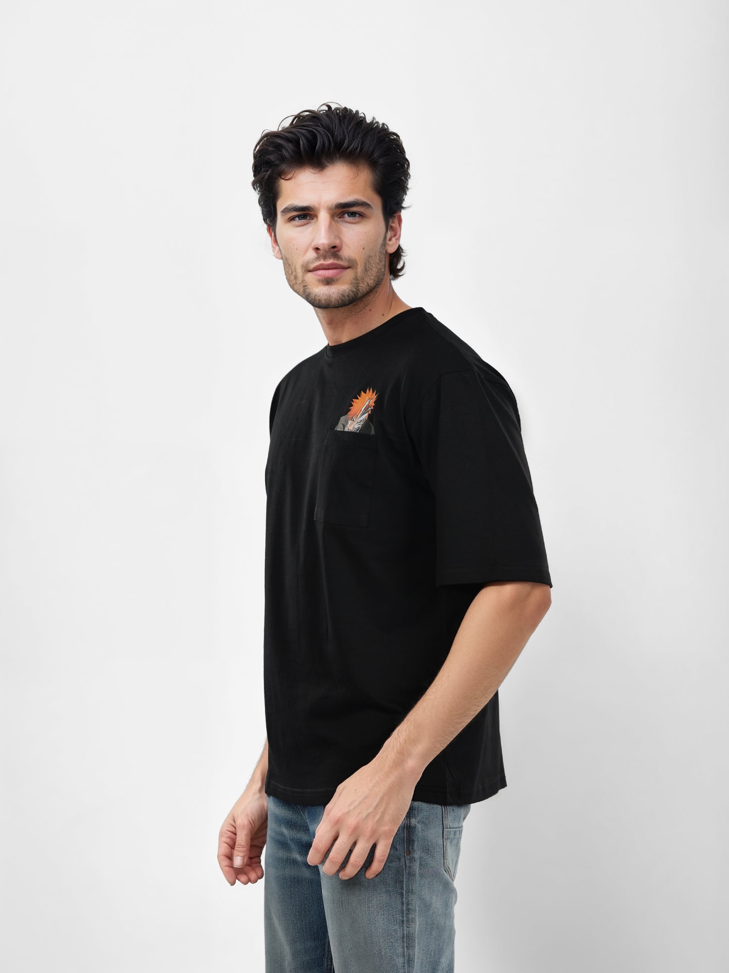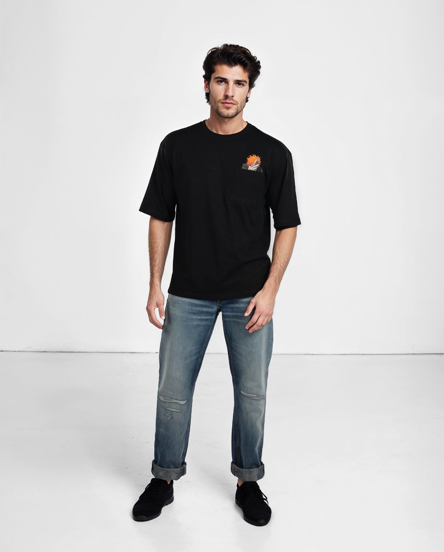 Shop the Celio Men Black Printed Oversized Cotton Bleach T-shirt, perfect for casual outings. Crafted from comfortable cotton with short sleeves, it offers a stylish and relaxed fit. Disclaimer: All other items in the image are only for display purposes and will not be a part of the delivery content. Product colour may slightly vary due to photographic lighting sources. Country of Origin - India. LFEBLCH2