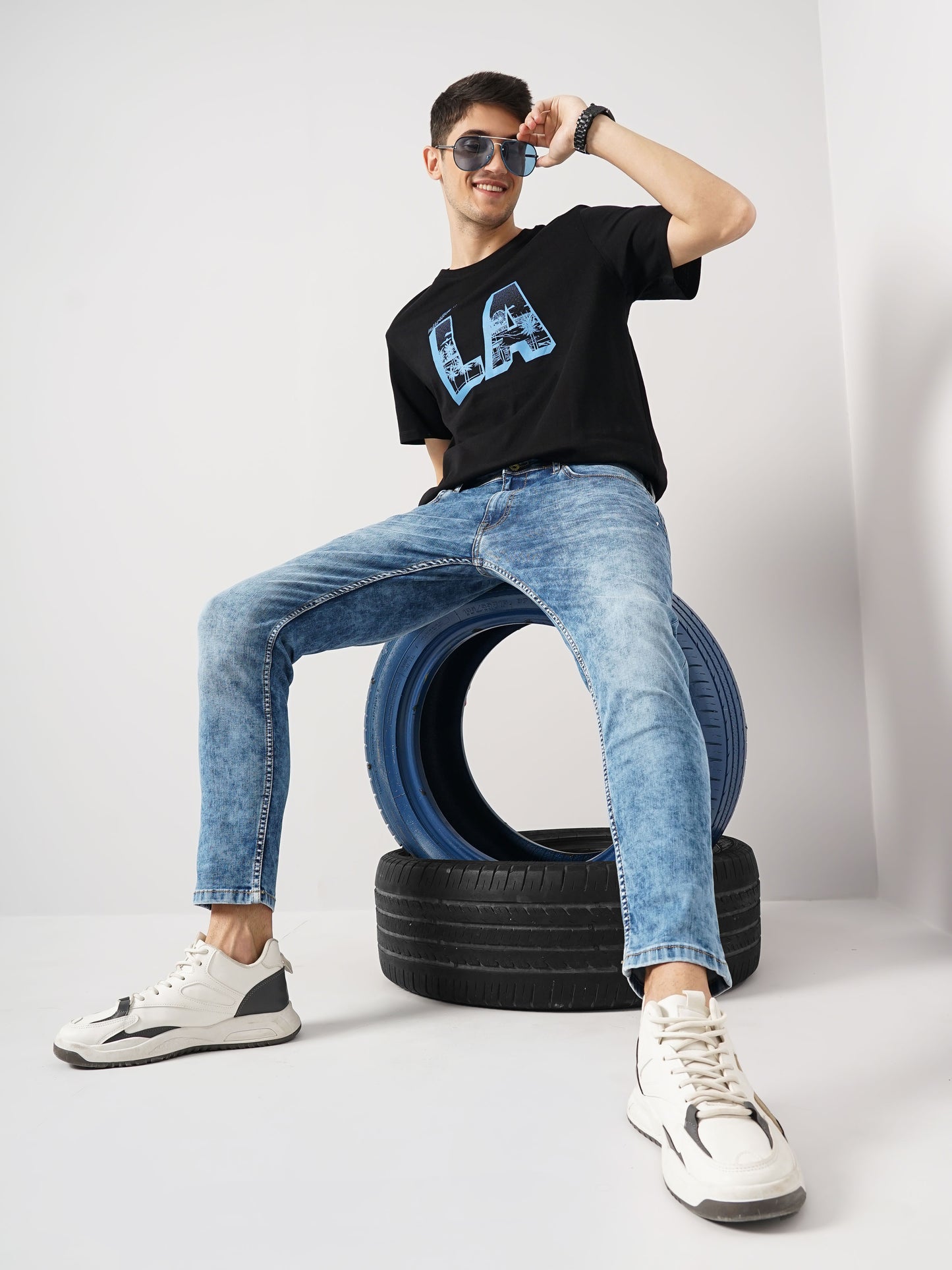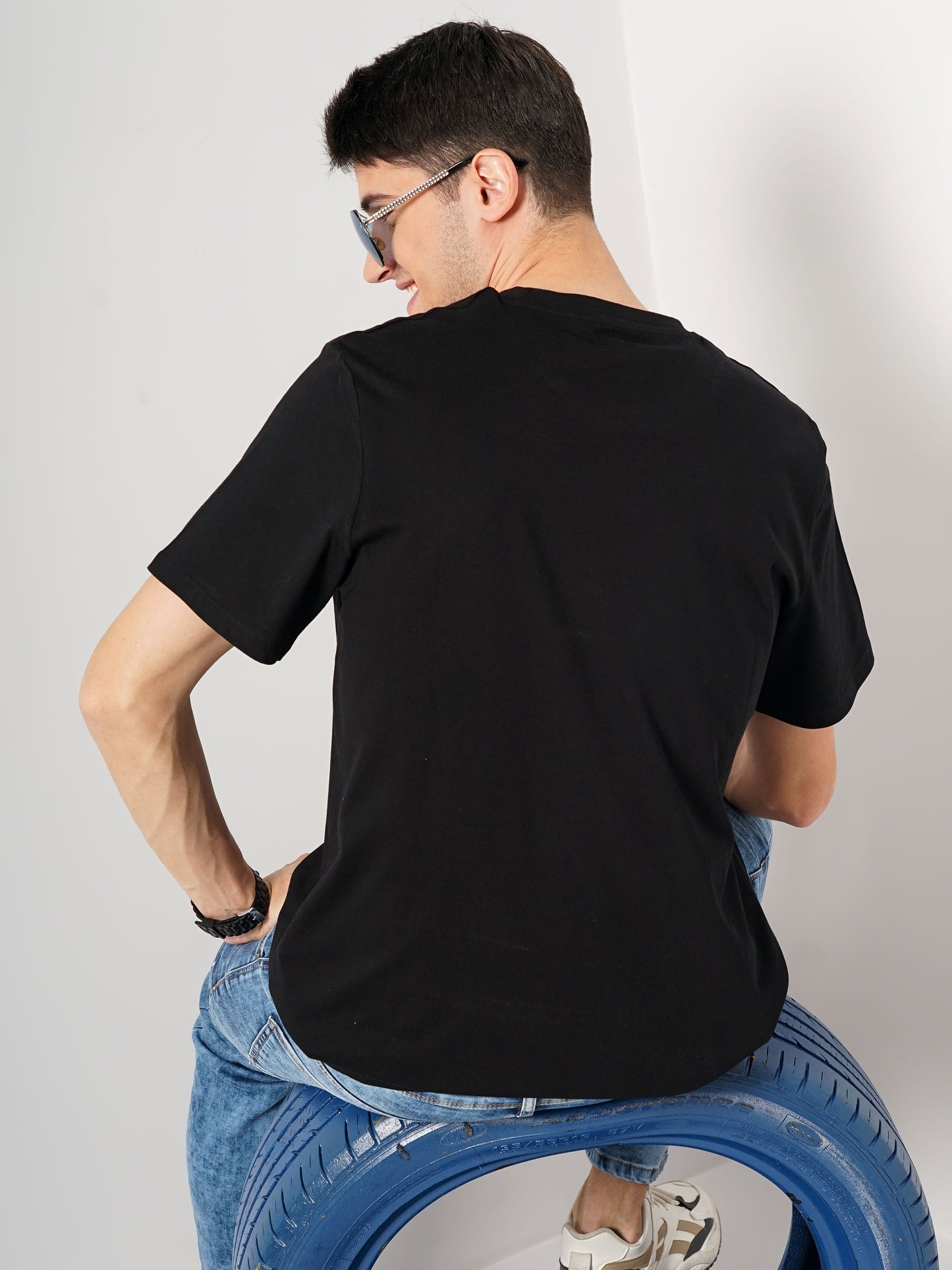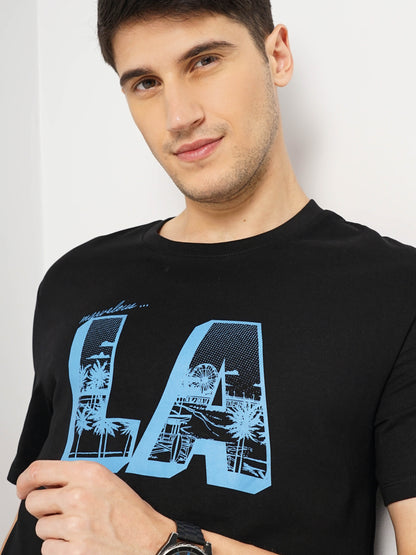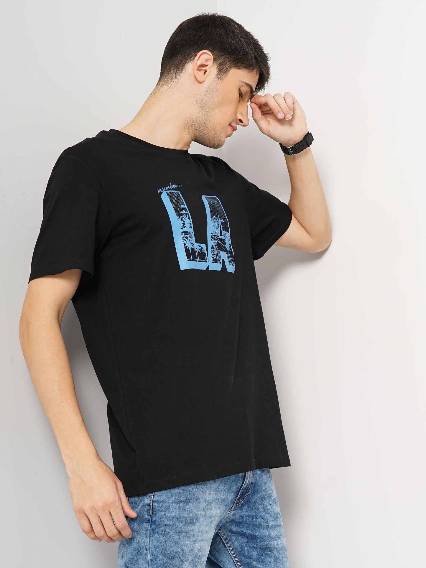 Celio* Printed Regular Fit Cotton Black T-Shirt