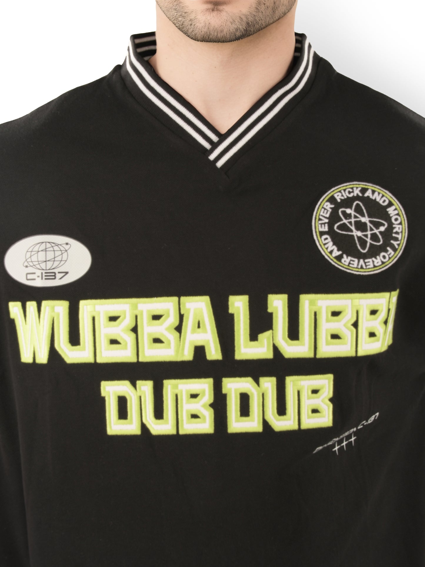 Get ready to turn heads with the Rick & Morty - Black Printed Cotton T-shirt by Celio. This tee combines the comfort of soft, breathable cotton with a unique, trendy design inspired by US sportswear. Perfect for fans of the iconic show, it showcases your favorite characters in bold style on classic black fabric, giving you a versatile, go-anywhere look. The t-shirt features a lenticular patch that adds a cool 3D effect and even reveals hidden details when exposed to UV light, bringing an extra layer of intrigue to your style. With a boxy cut and short sleeves, this piece delivers a modern, relaxed fit, ideal for any season. An embroidered rendition of the cult phrase "Wubba Lubba Dub Dub" completes the look, capturing the quirky spirit of the show. Pair it with Celio jeans for an effortless, everyday style that stands out. Whether you're hitting the streets or lounging at home, this Rick & Morty tee is a must-have for any fan looking to elevate their casual wardrobe. Disclaimer: All other items in the image are only for display purposes and will not be a part of the delivery content. Product colour may slightly vary due to photographic lighting sources. Country of Origin - India.