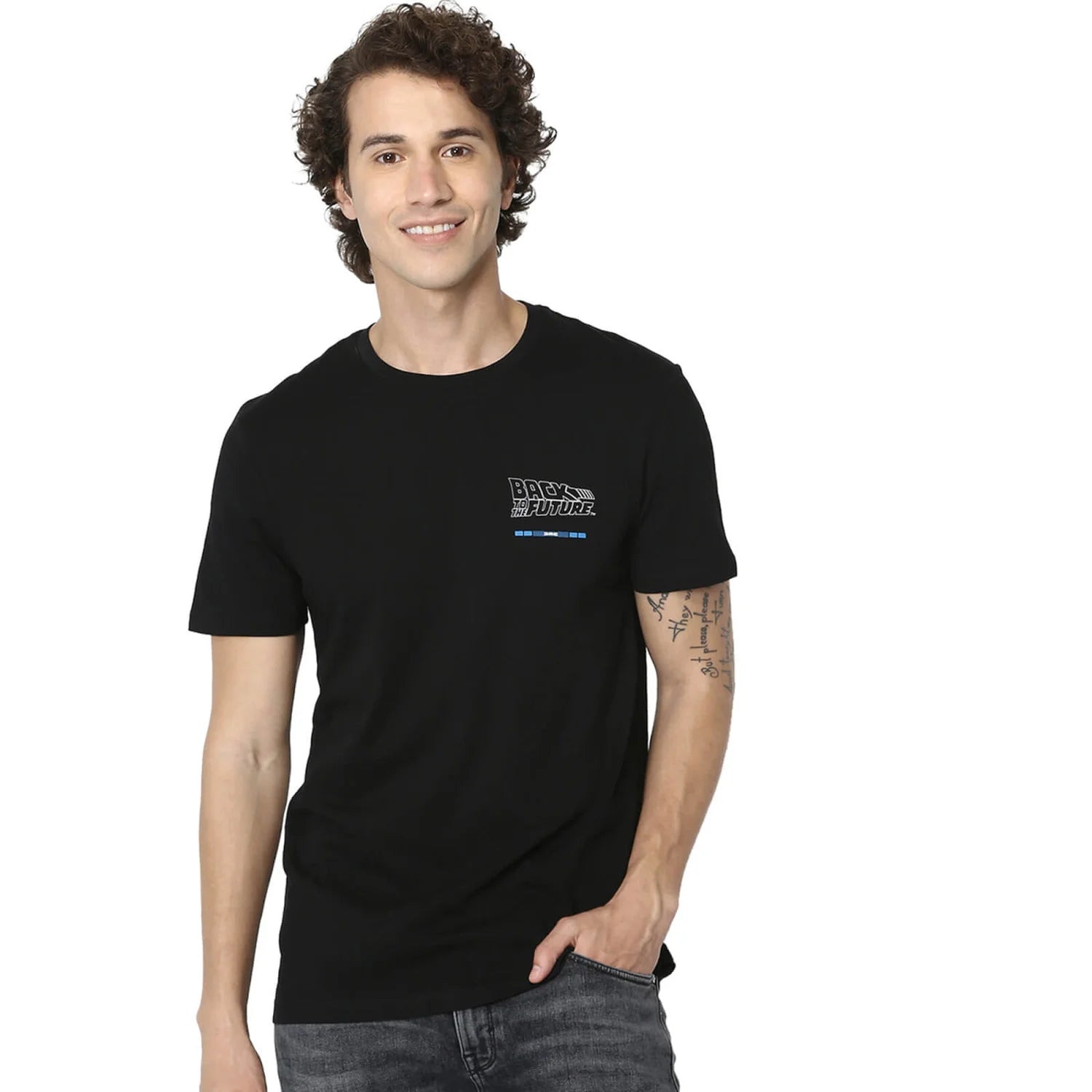 Introducing the Celio Men's Black Printed T-Shirt, perfect for casual outings. Crafted from cotton, it features short sleeves and a regular fit design. Disclaimer: All other items in the image are only for display purposes and will not be a part of the delivery content. Product colour may slightly vary due to photographic lighting sources. Country of Origin - India.