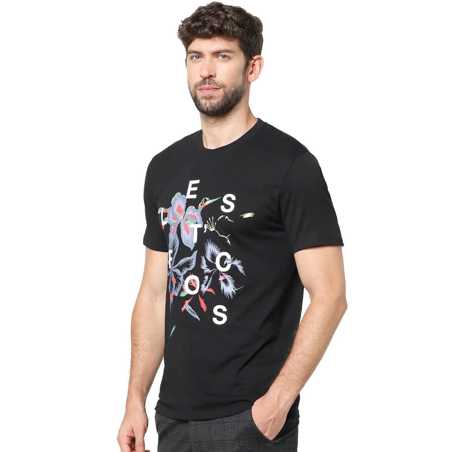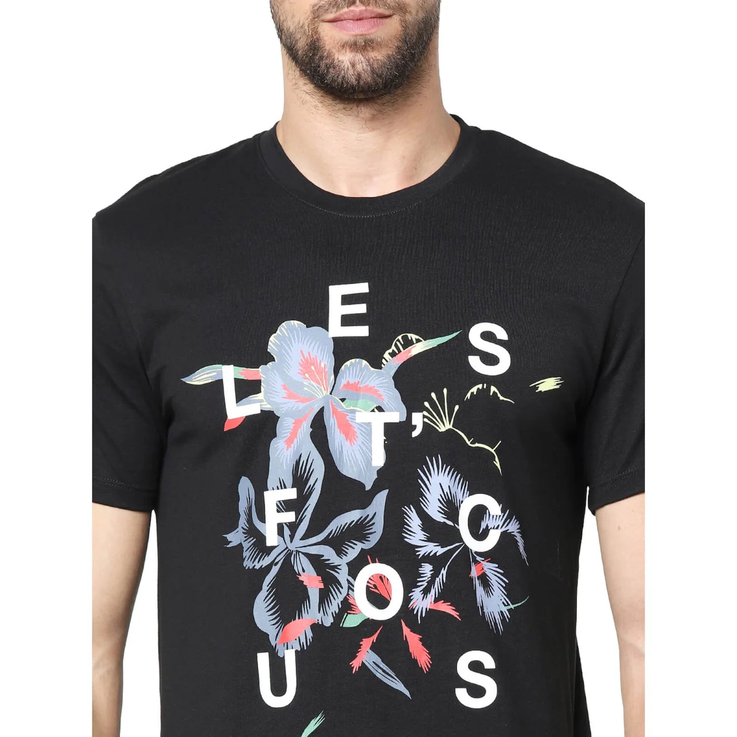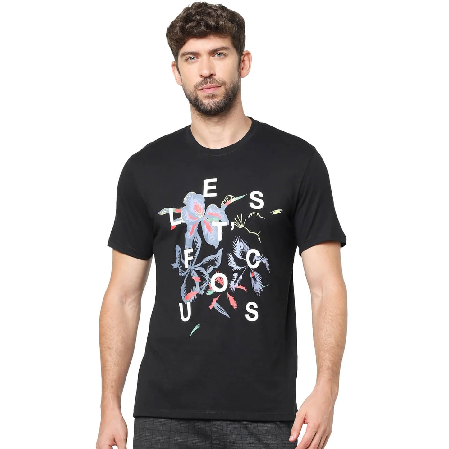 Discover the Celio Men's Black Cotton Floral Printed Regular T-Shirt in Vegreyin Black. Perfect for casual outings, this stylish shirt features short sleeves and a comfortable fit. Disclaimer: All other items in the image are only for display purposes and will not be a part of the delivery content. Product colour may slightly vary due to photographic lighting sources. Country of Origin - India.