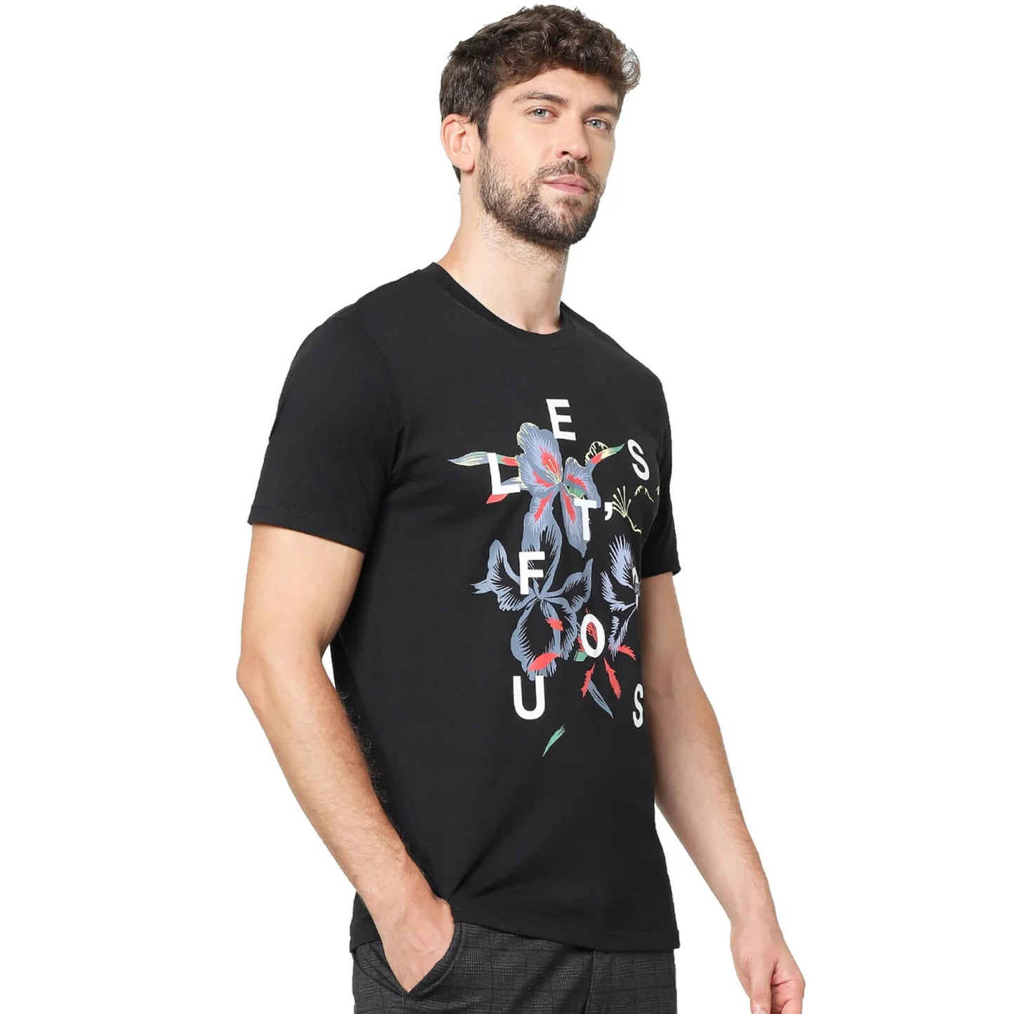 Celio* Printed Regular Fit Cotton Black T-Shirt