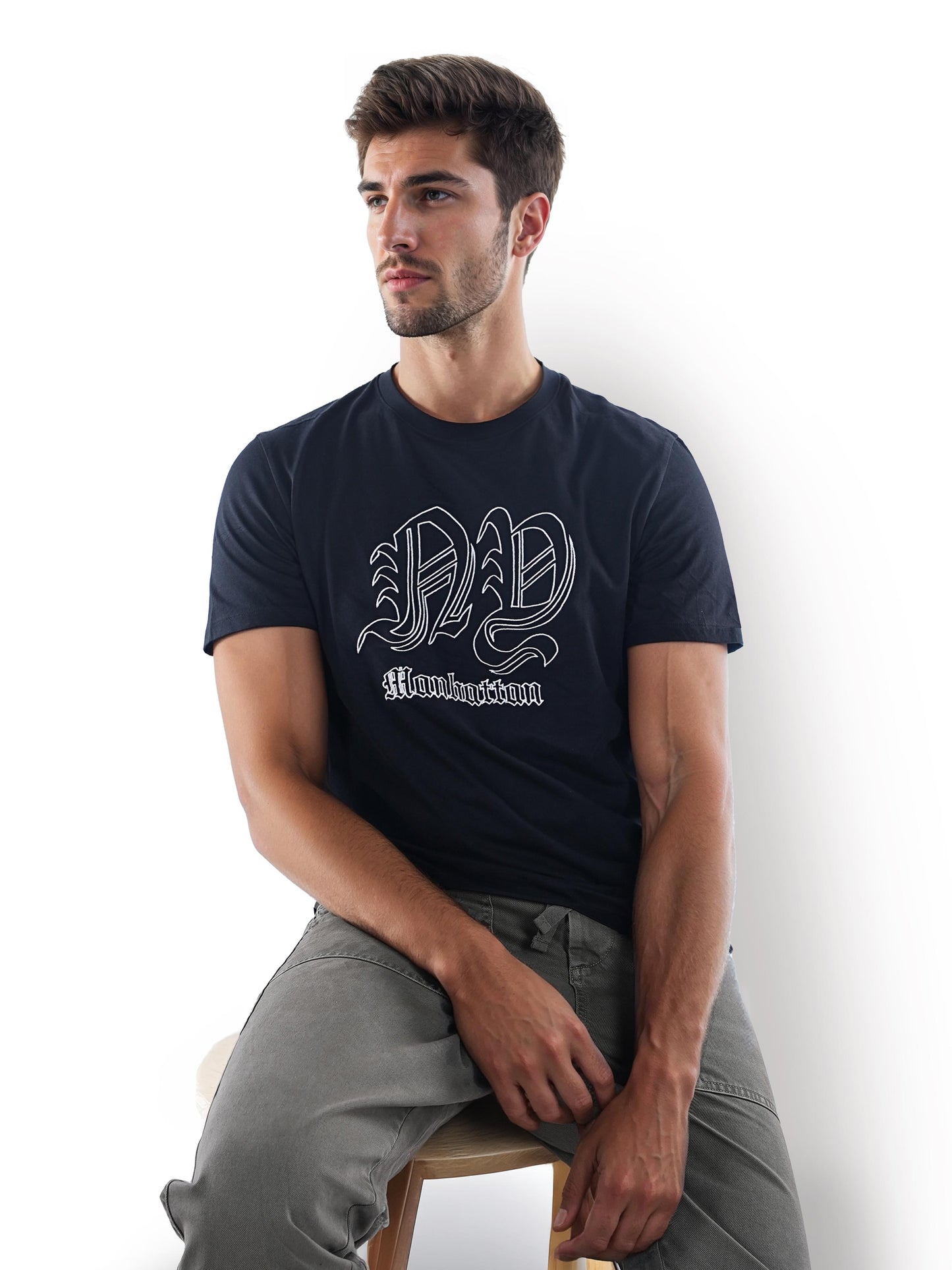 Celio* Printed Straight Fit Cotton Black T-Shirt