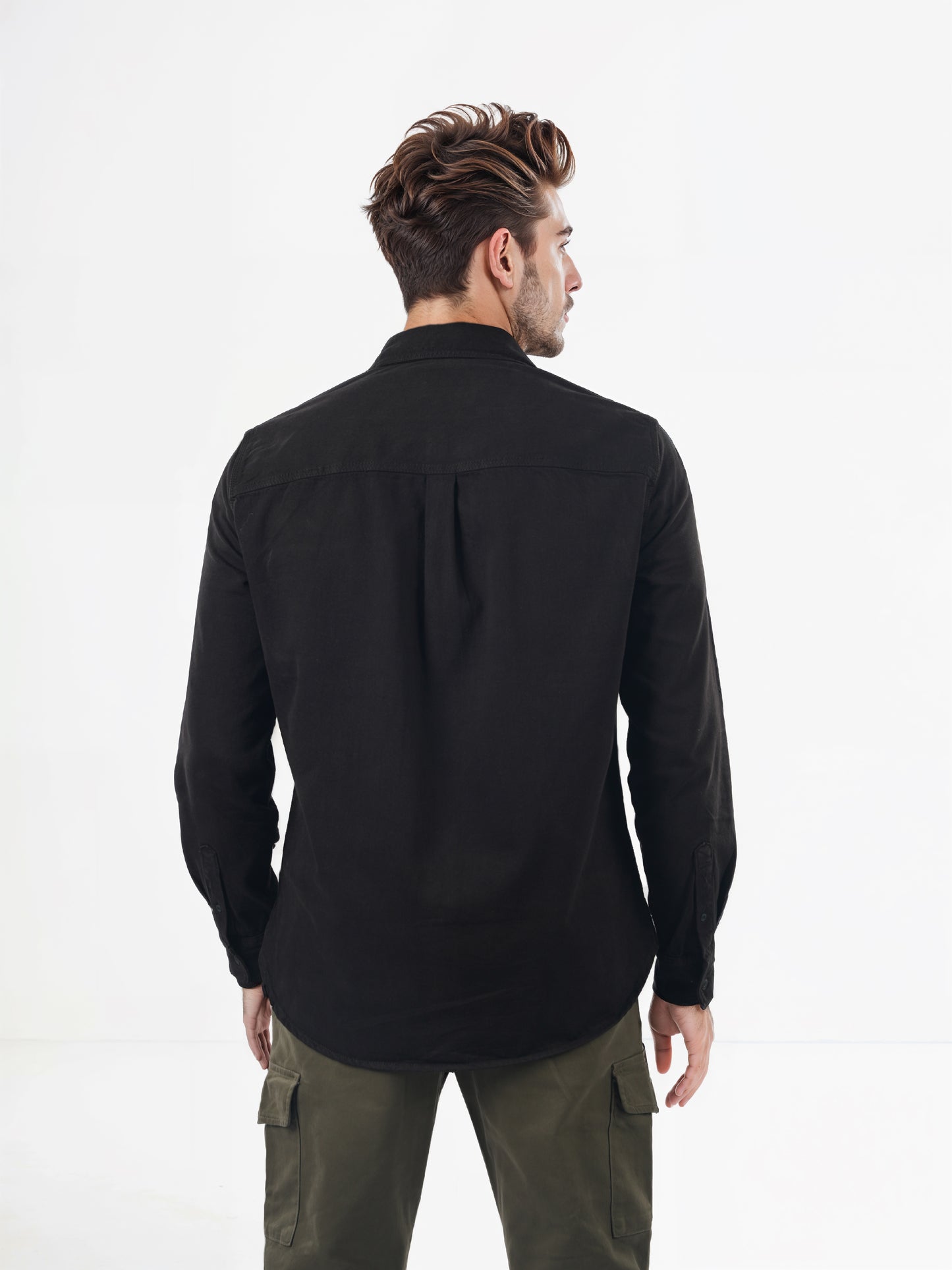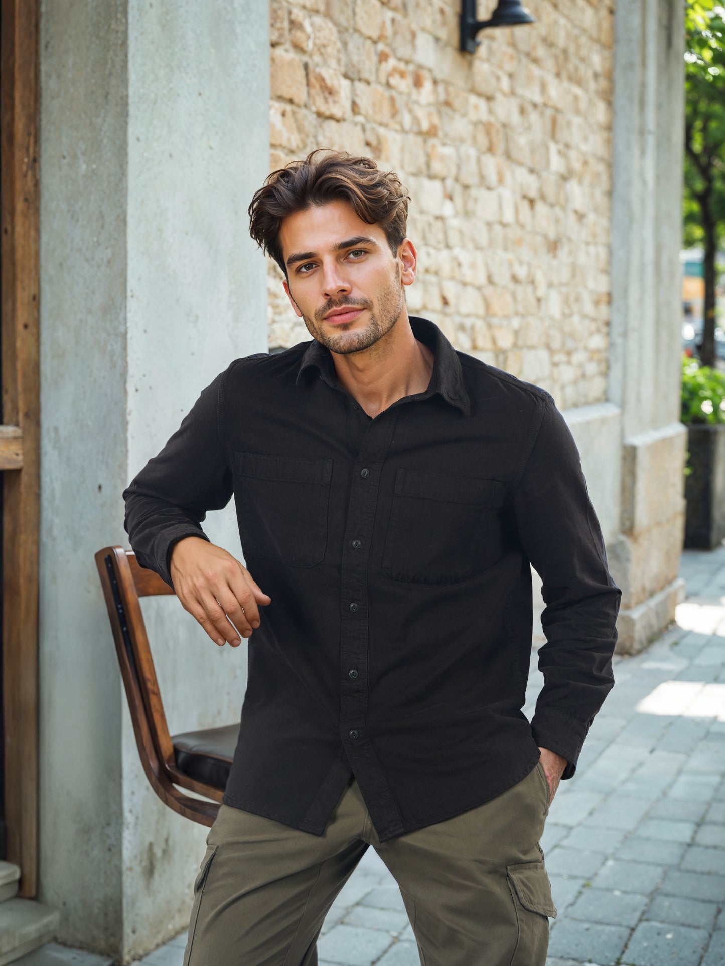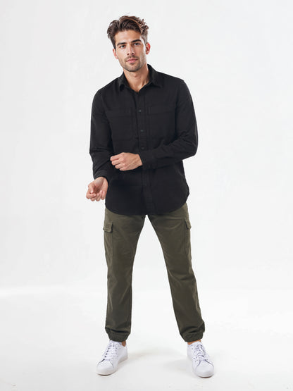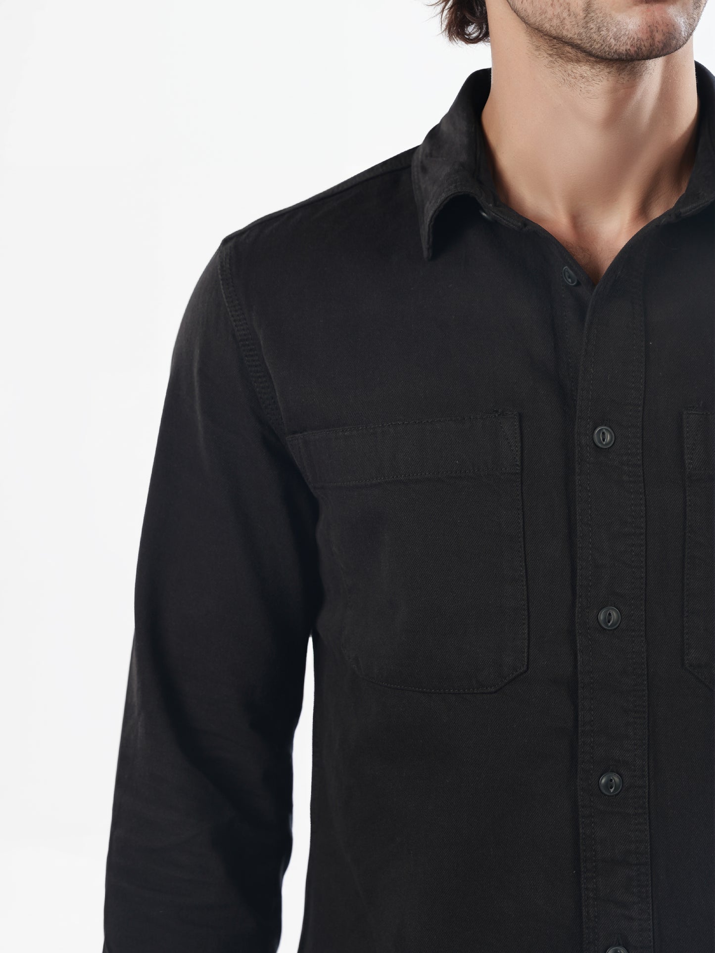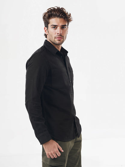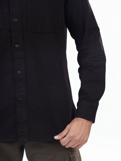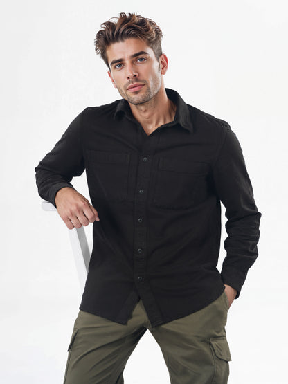 Stylish black overshirt for men by Celio, crafted from comfortable cotton. Perfect for casual occasions, it features long sleeves for a relaxed fit. Disclaimer: All other items in the image are only for display purposes and will not be a part of the delivery content. Product colour may slightly vary due to photographic lighting sources. Country of Origin - India.