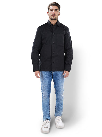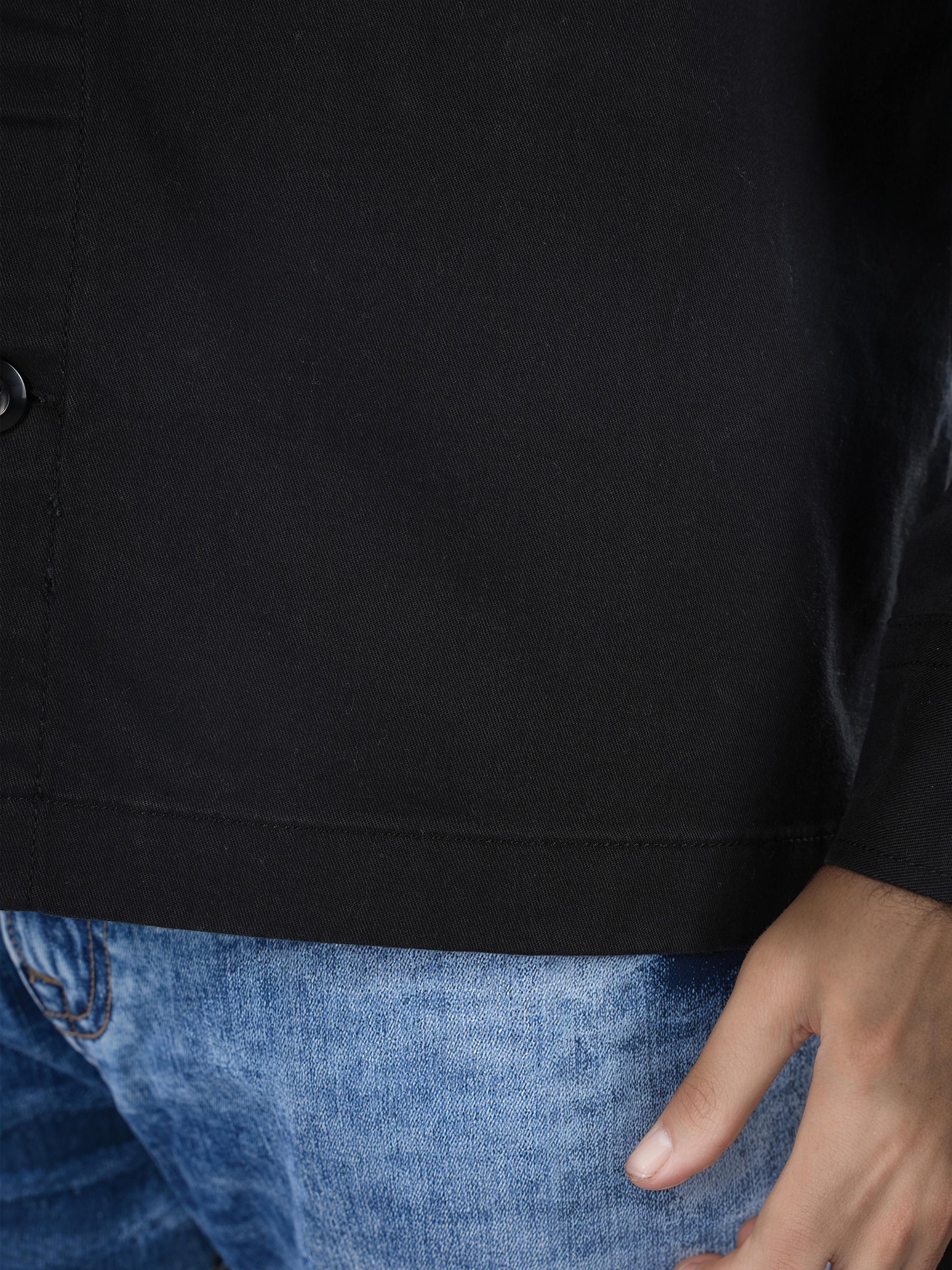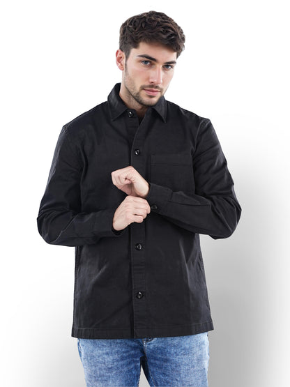 Celio* Solid Oversized Cotton Black Shirt