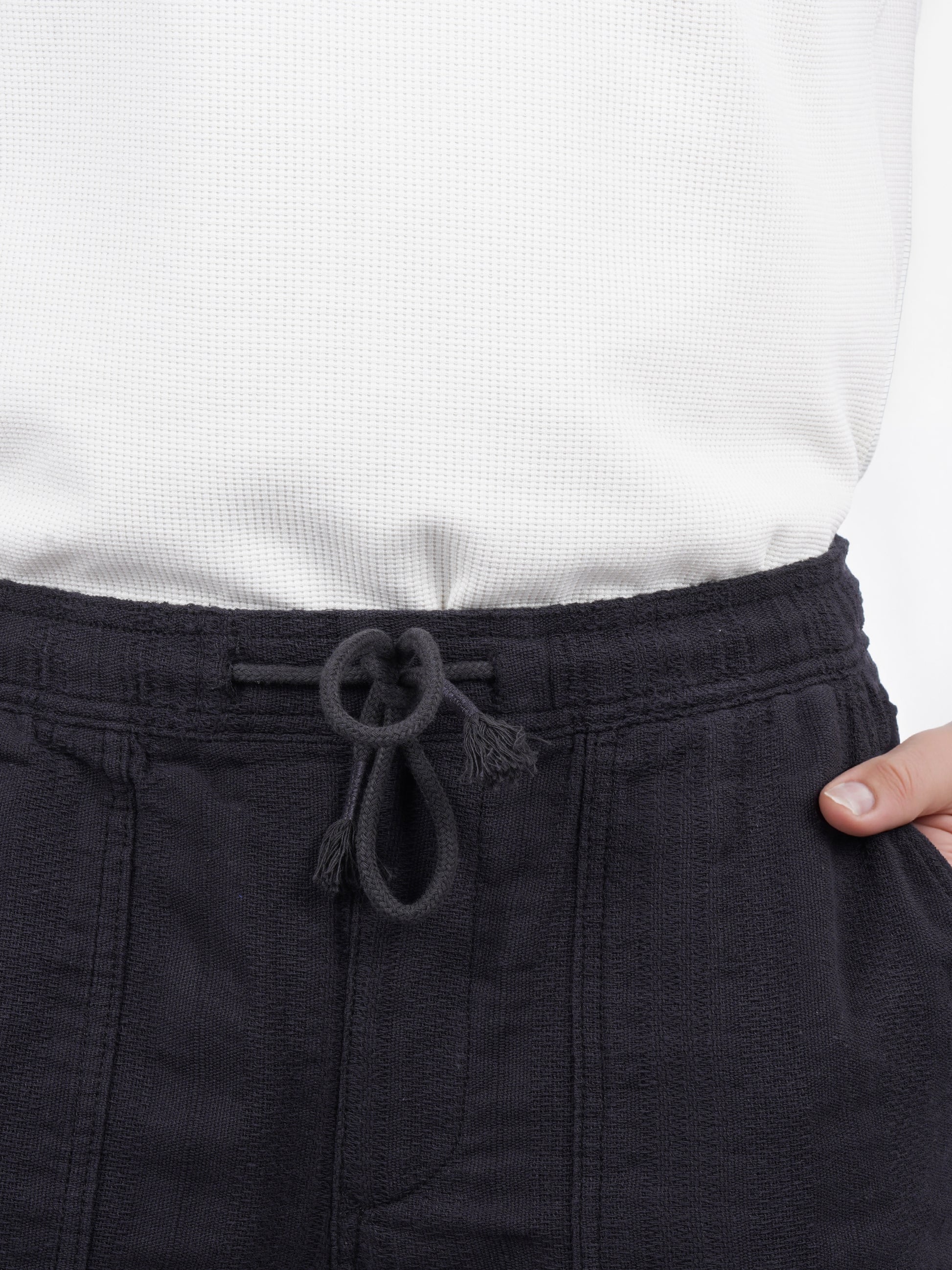 Explore comfort with Celio's black solid cotton bermuda shorts for men, perfect for casual outings. Enjoy a regular fit that pairs well with any relaxed wardrobe. Disclaimer: All other items in the image are only for display purposes and will not be a part of the delivery content. Product colour may slightly vary due to photographic lighting sources. Country of Origin - India.