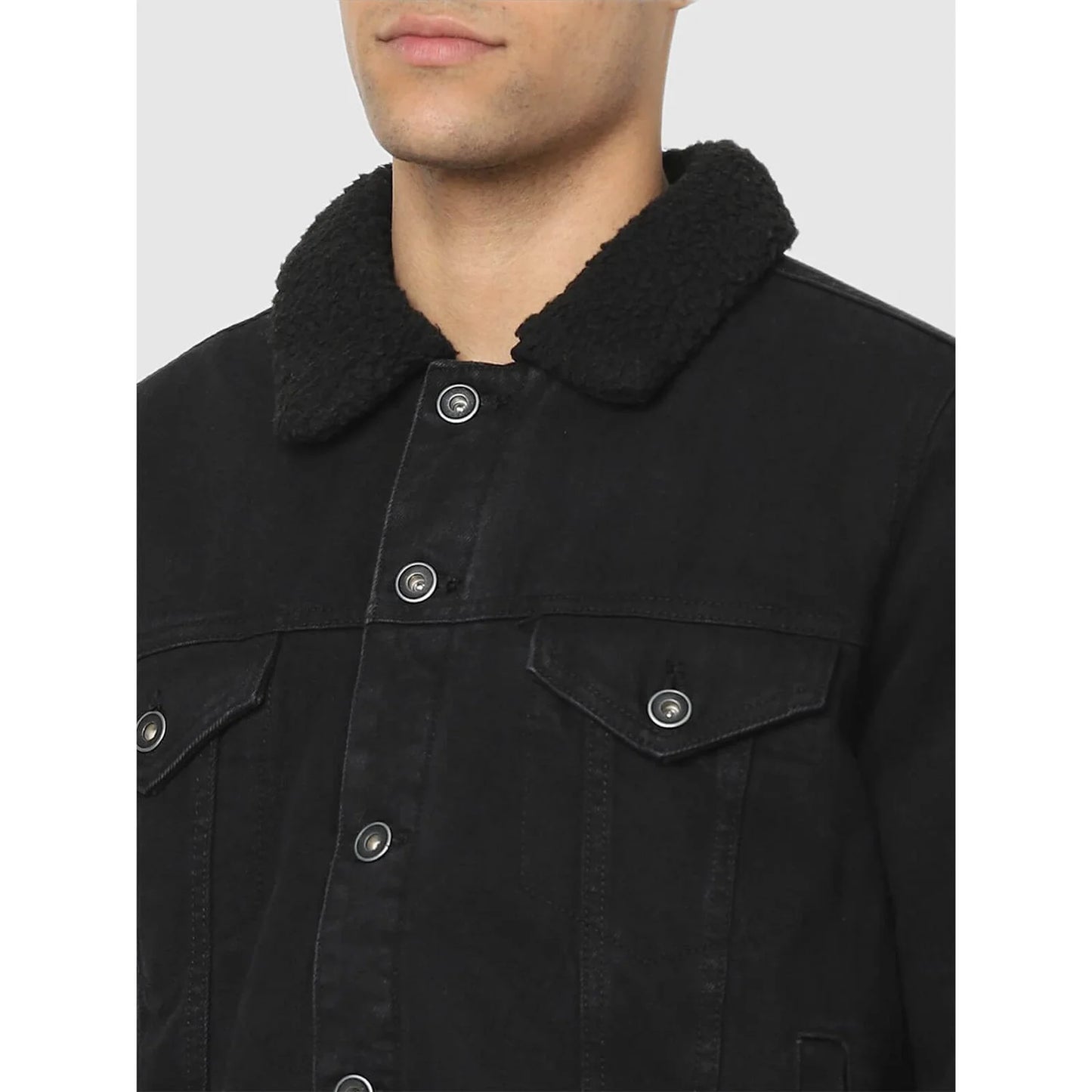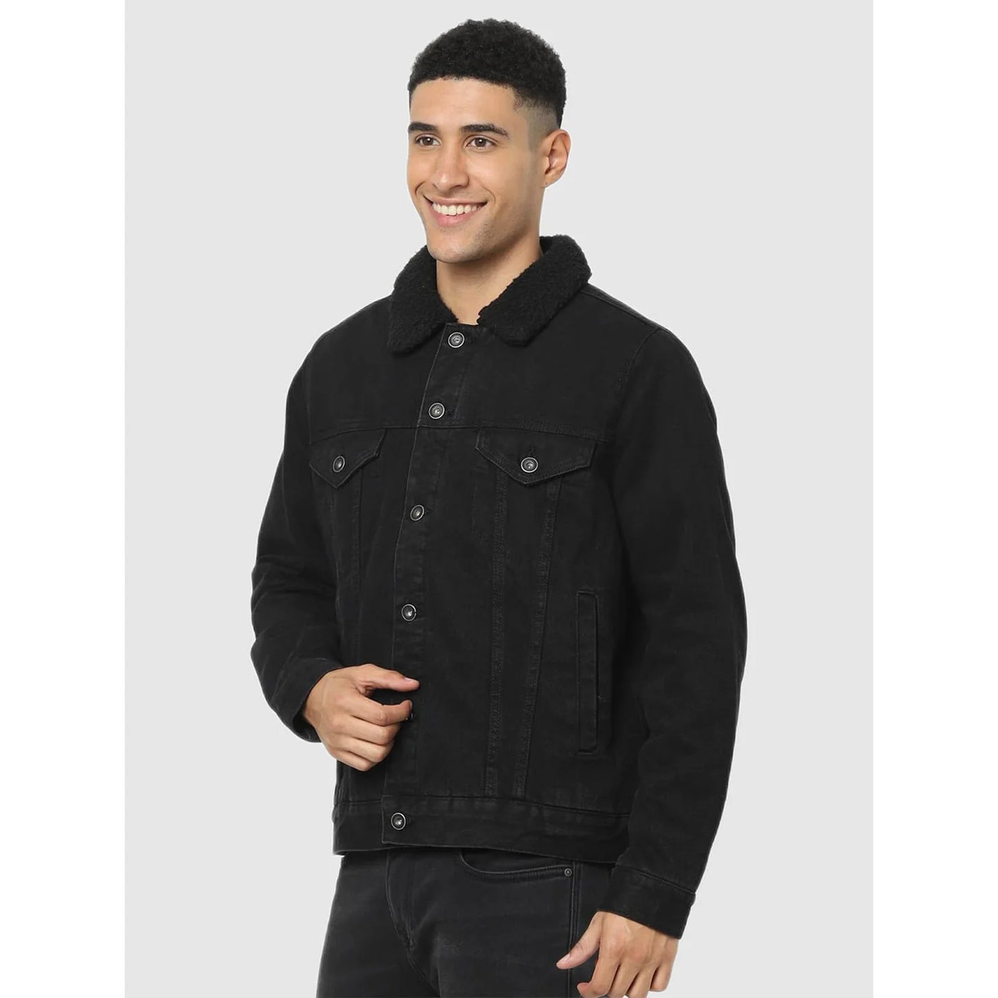 Celio* Solid Regular Fit Cotton Black Jacket