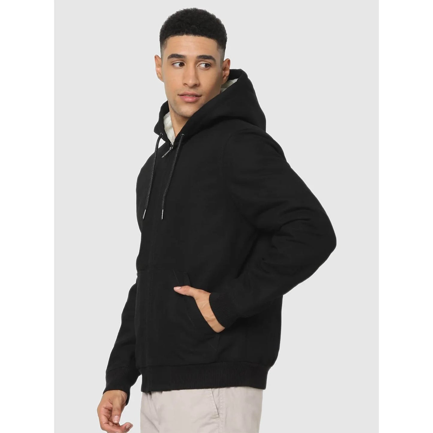 Elevate your casual look with the Celio Black Solid Regular Fit Jacket. Crafted from cotton, this stylish men's jacket features long sleeves for a comfortable fit. Disclaimer: All other items in the image are only for display purposes and will not be a part of the delivery content. Product colour may slightly vary due to photographic lighting sources. Country of Origin - India.