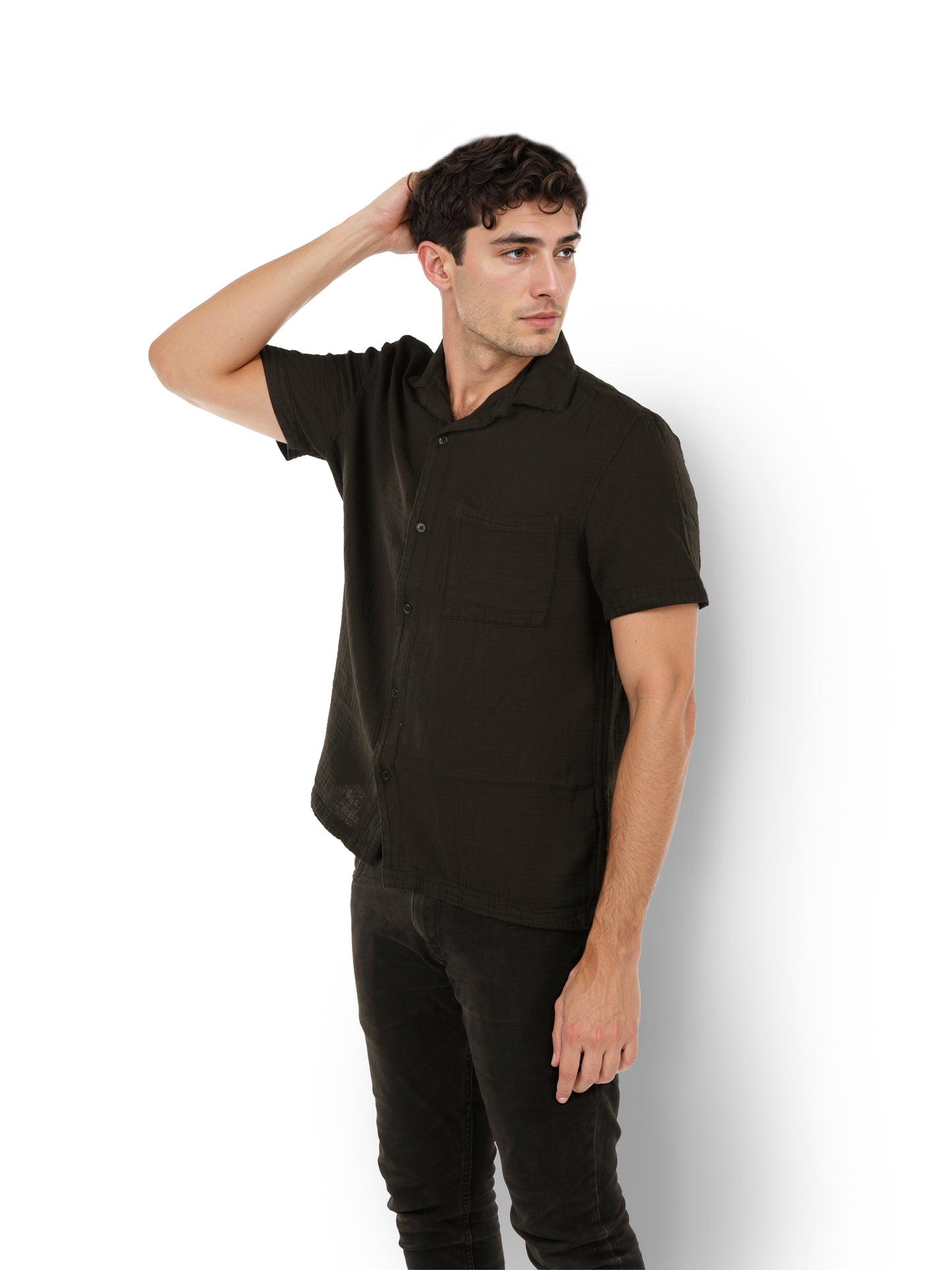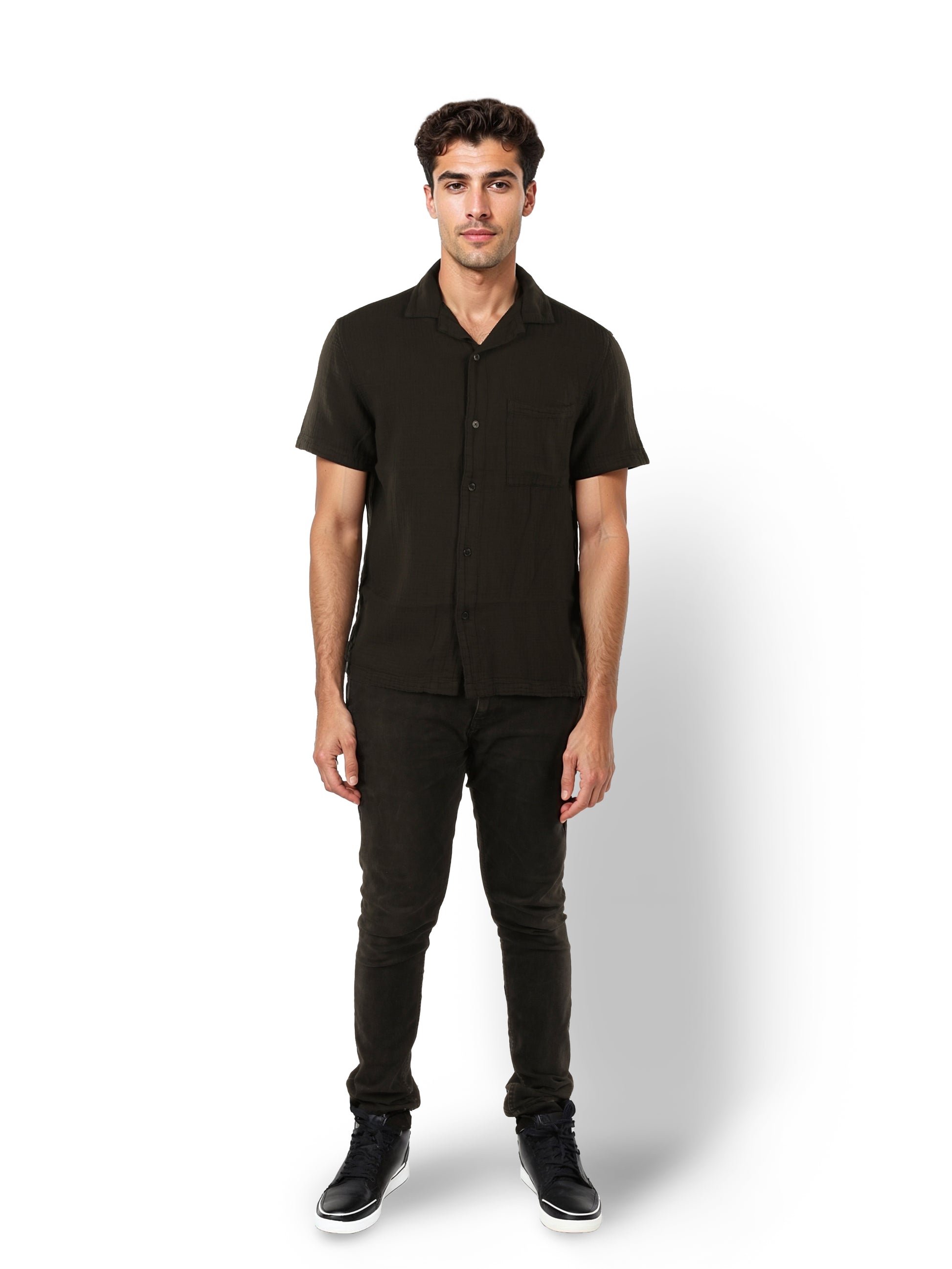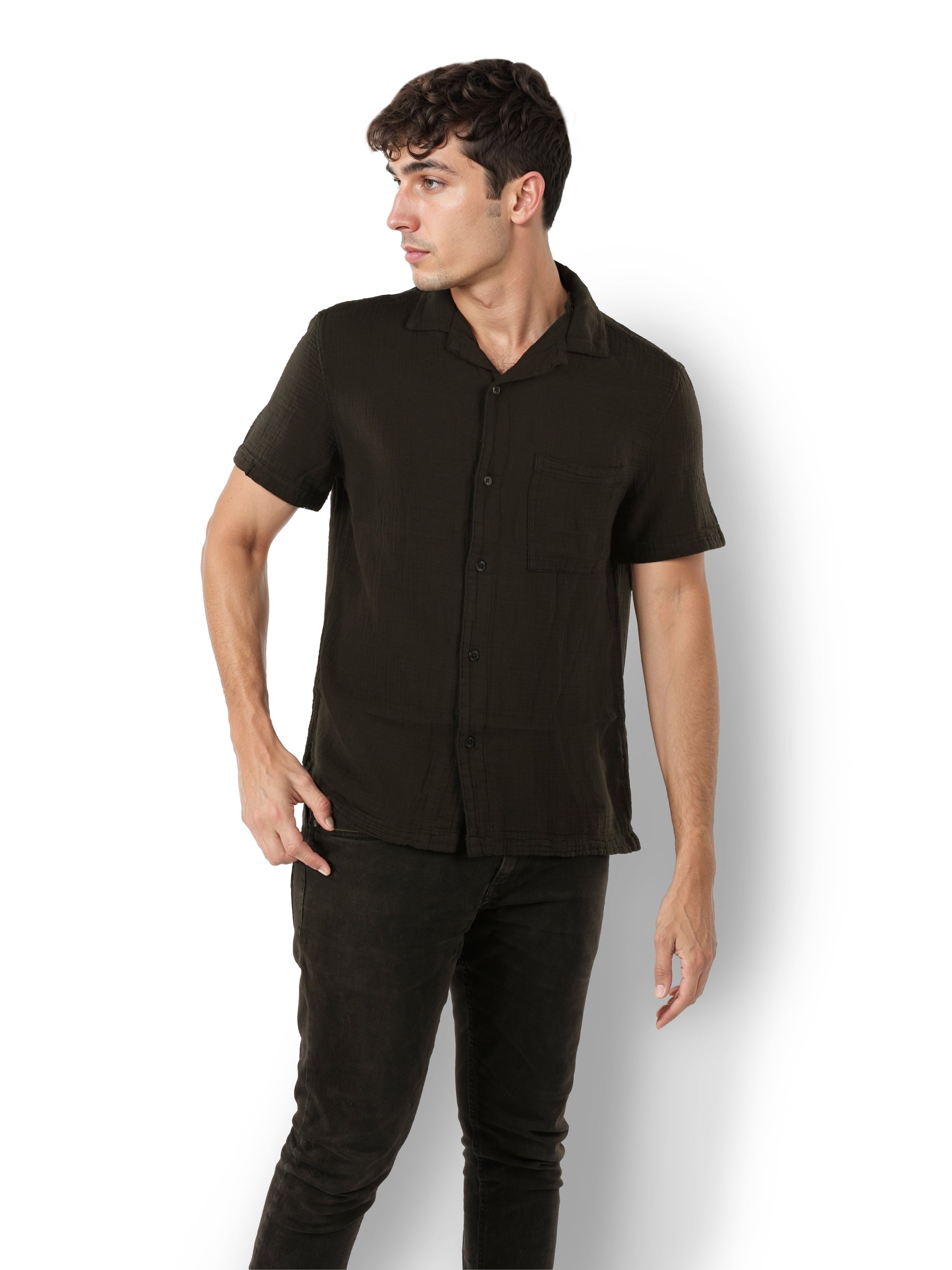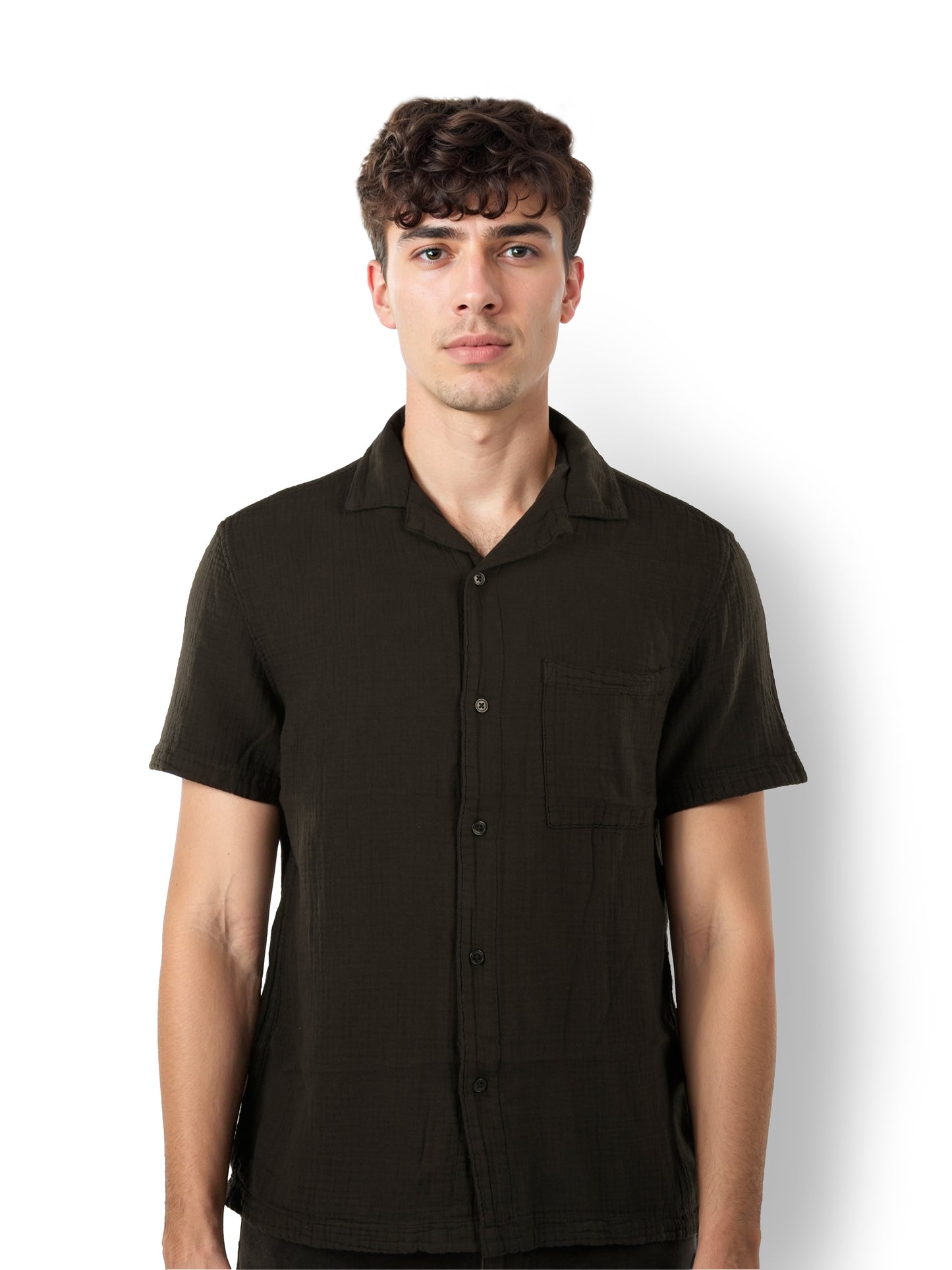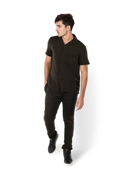 Experience comfort and style with the Celio Men Black Cuban Collar Shirt. Made from soft cotton, this regular fit shirt features short sleeves, perfect for casual occasions. Disclaimer: All other items in the image are only for display purposes and will not be a part of the delivery content. Product colour may slightly vary due to photographic lighting sources. Country of Origin - India.