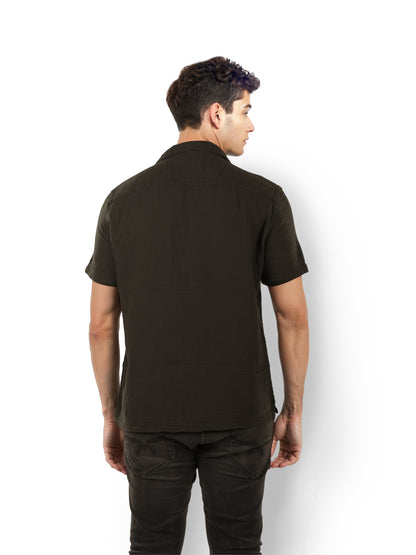 Celio* Solid Regular Fit Cotton Black Shirt