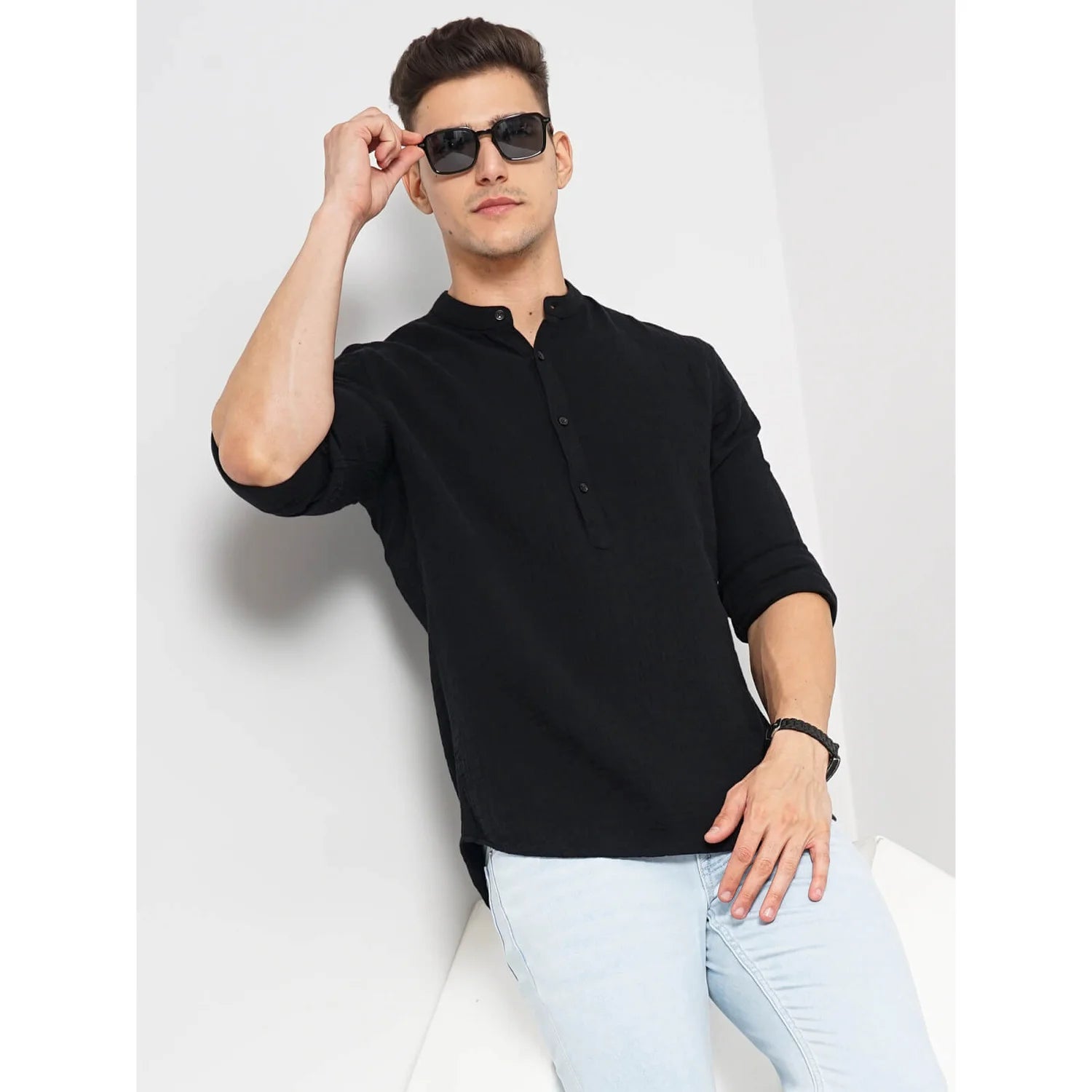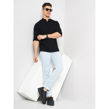 Discover the Celio Black Cotton Shirt in Black for men. This casual, long-sleeve shirt made from comfortable cotton is perfect for effortless style. Disclaimer: All other items in the image are only for display purposes and will not be a part of the delivery content. Product colour may slightly vary due to photographic lighting sources. Country of Origin - India.