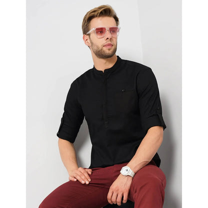 Elevate your casual wear with the Celio Black Solid Cotton Shirt in Black. Crafted from breathable cotton, it features long sleeves, ideal for men seeking style and comfort. Disclaimer: All other items in the image are only for display purposes and will not be a part of the delivery content. Product colour may slightly vary due to photographic lighting sources. Country of Origin - India.