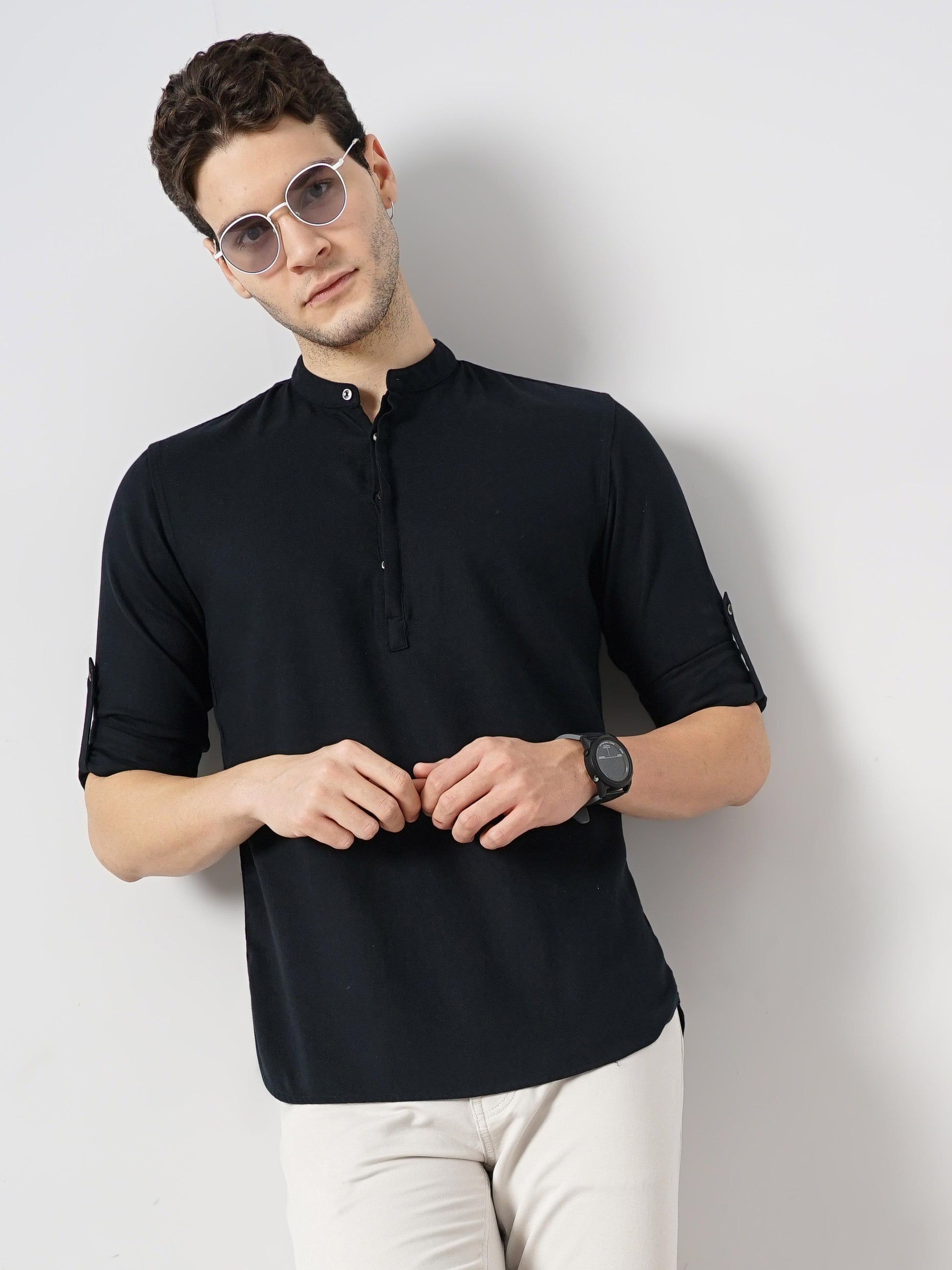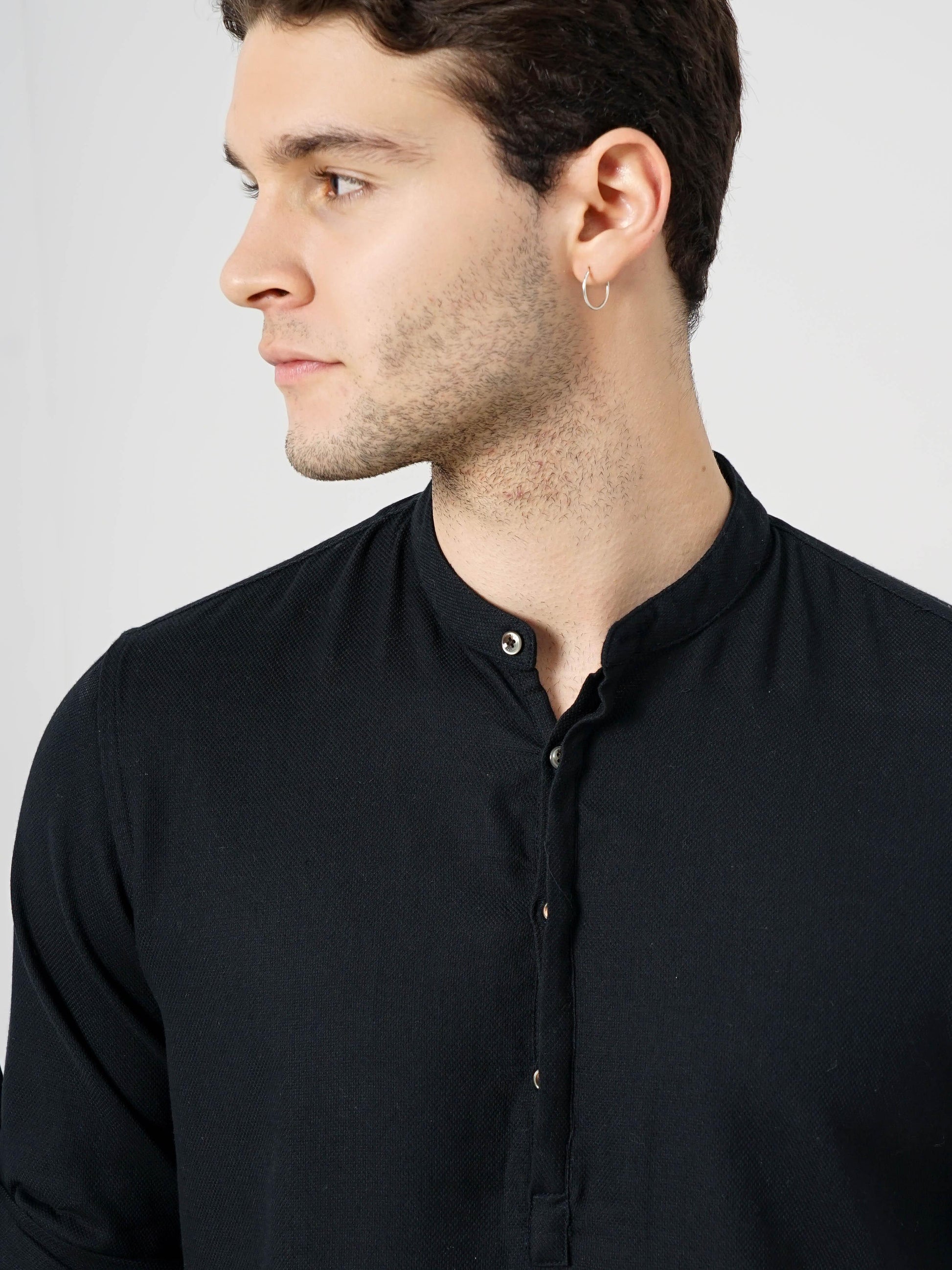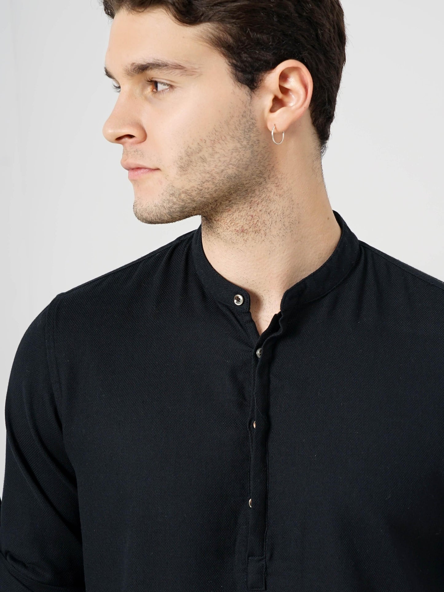 Elevate your casual wardrobe with the Celio Men Black Solid Regular Fit Cotton Shirt. Designed for comfort, it features long sleeves and a contemporary style perfect for any occasion. Disclaimer: All other items in the image are only for display purposes and will not be a part of the delivery content. Product colour may slightly vary due to photographic lighting sources. Country of Origin - India.