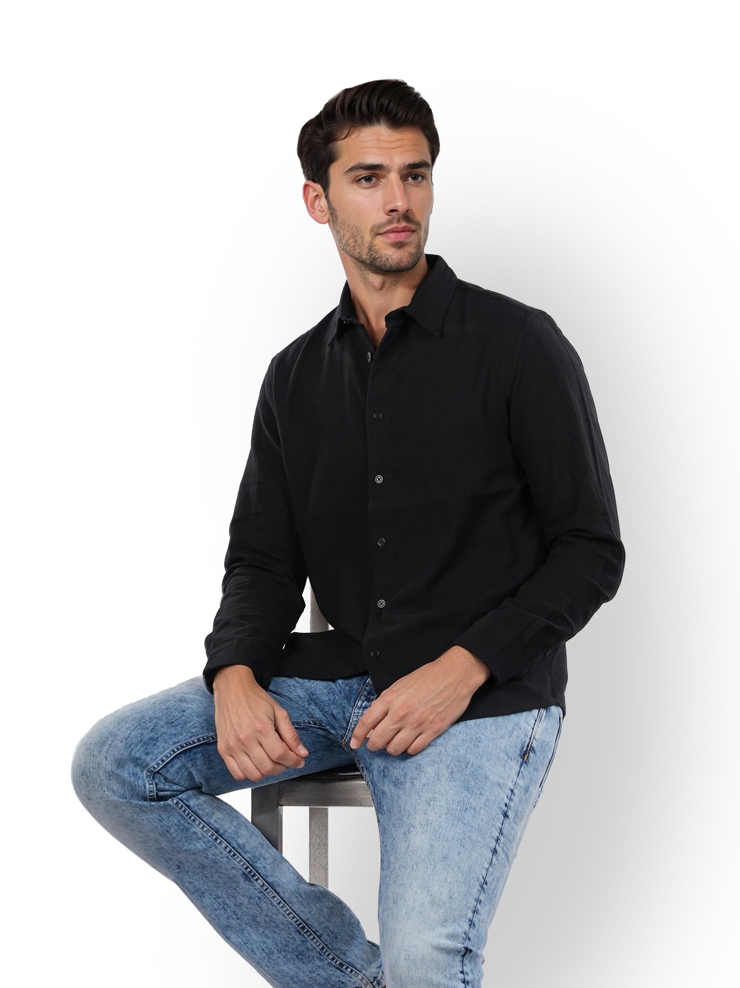 Discover the ultimate in casual style with the Men Black Spread Collar Solid Regular Fit Cotton Knit Shirt by Celio. Perfect for any occasion, this long-sleeve shirt is made from soft cotton. Disclaimer: All other items in the image are only for display purposes and will not be a part of the delivery content. Product colour may slightly vary due to photographic lighting sources. Country of Origin - India.