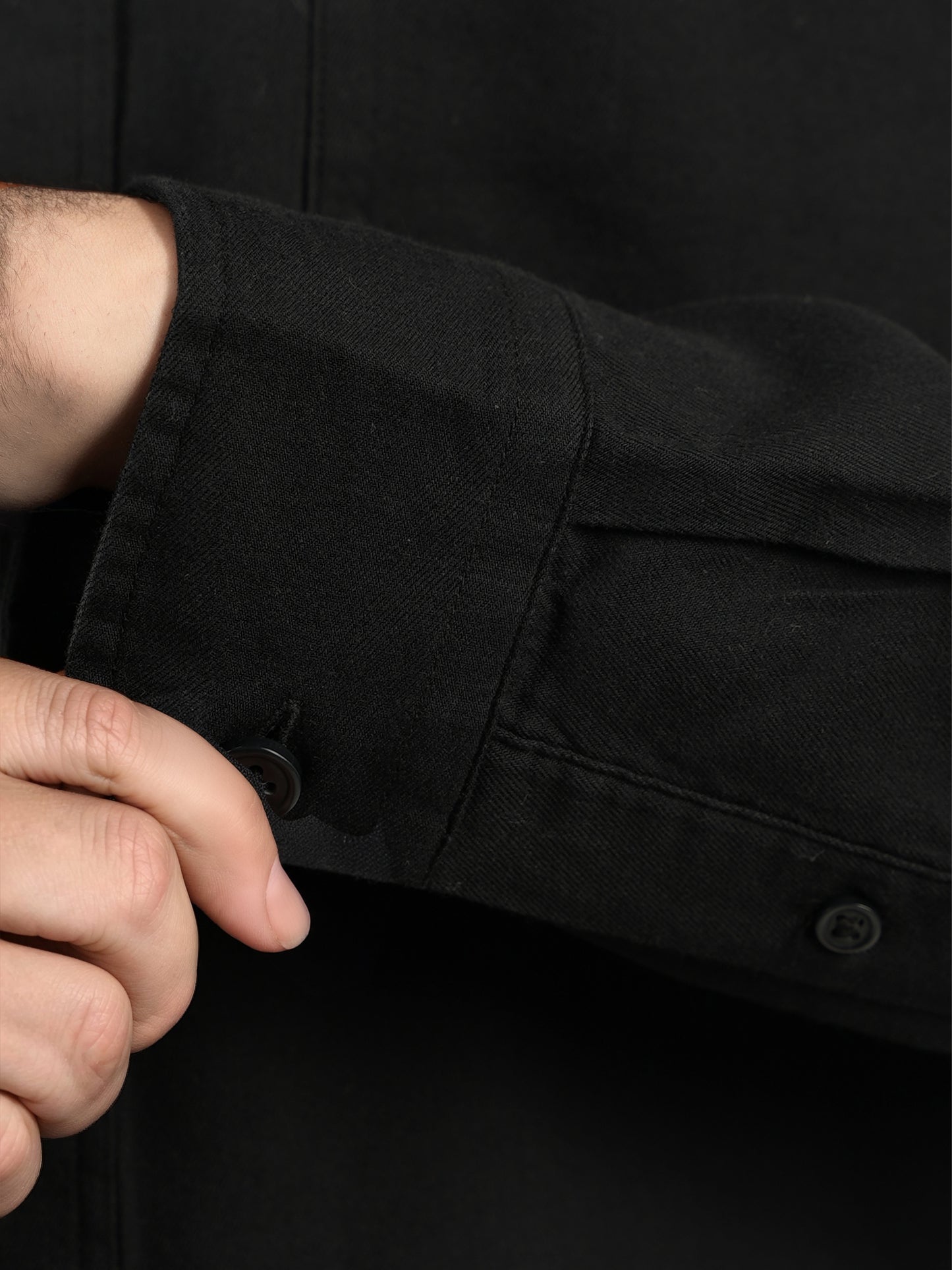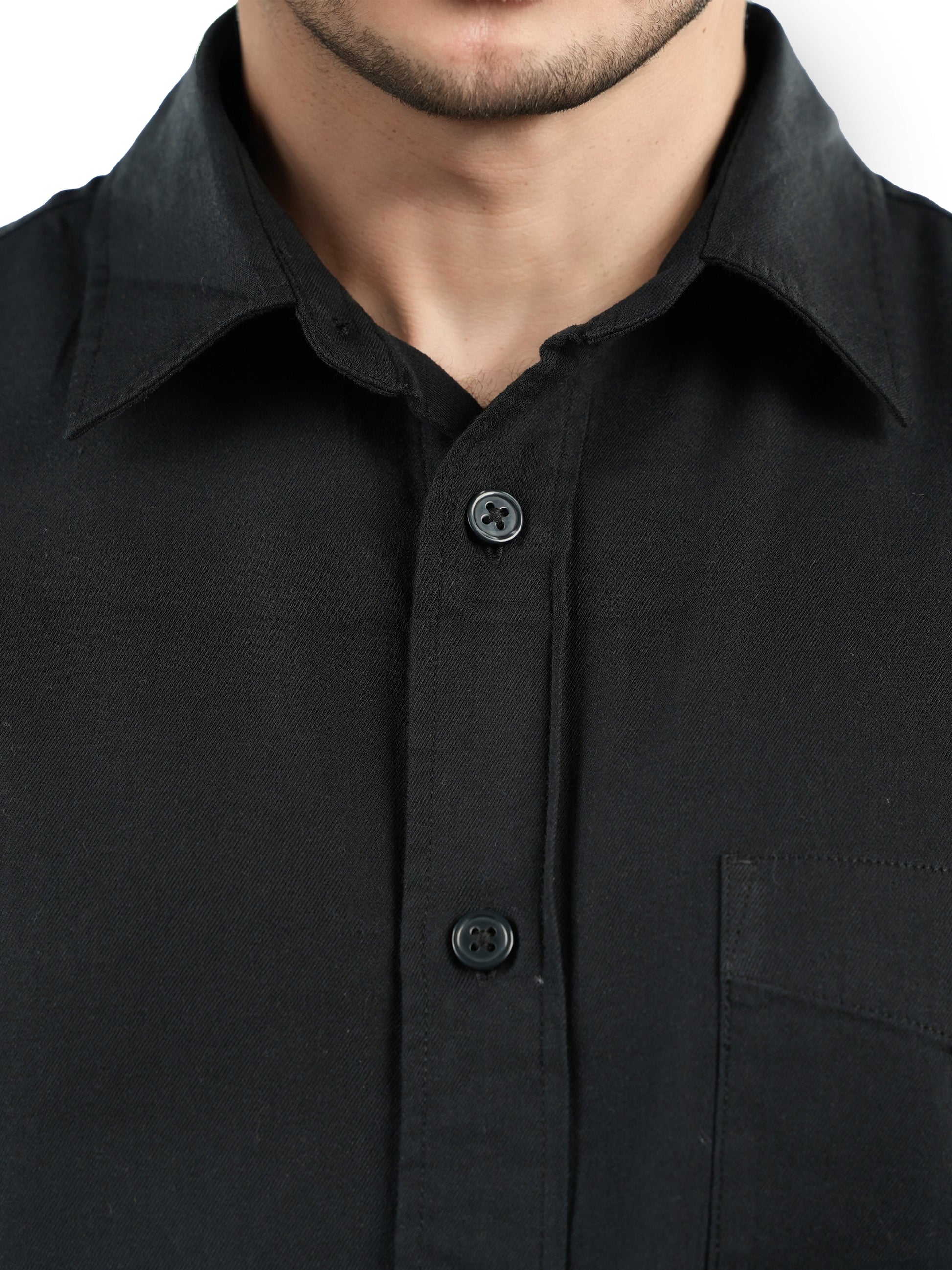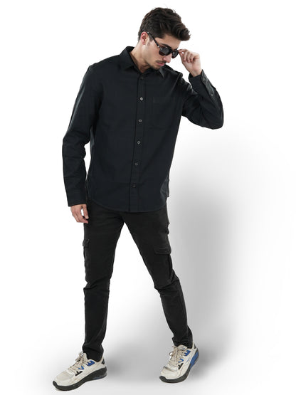 Elevate your casual wardrobe with this Men’s Black Spread Collar Shirt from Celio. Made from comfortable cotton, it features long sleeves and a solid design for a stylish look. Disclaimer: All other items in the image are only for display purposes and will not be a part of the delivery content. Product colour may slightly vary due to photographic lighting sources. Country of Origin - India.