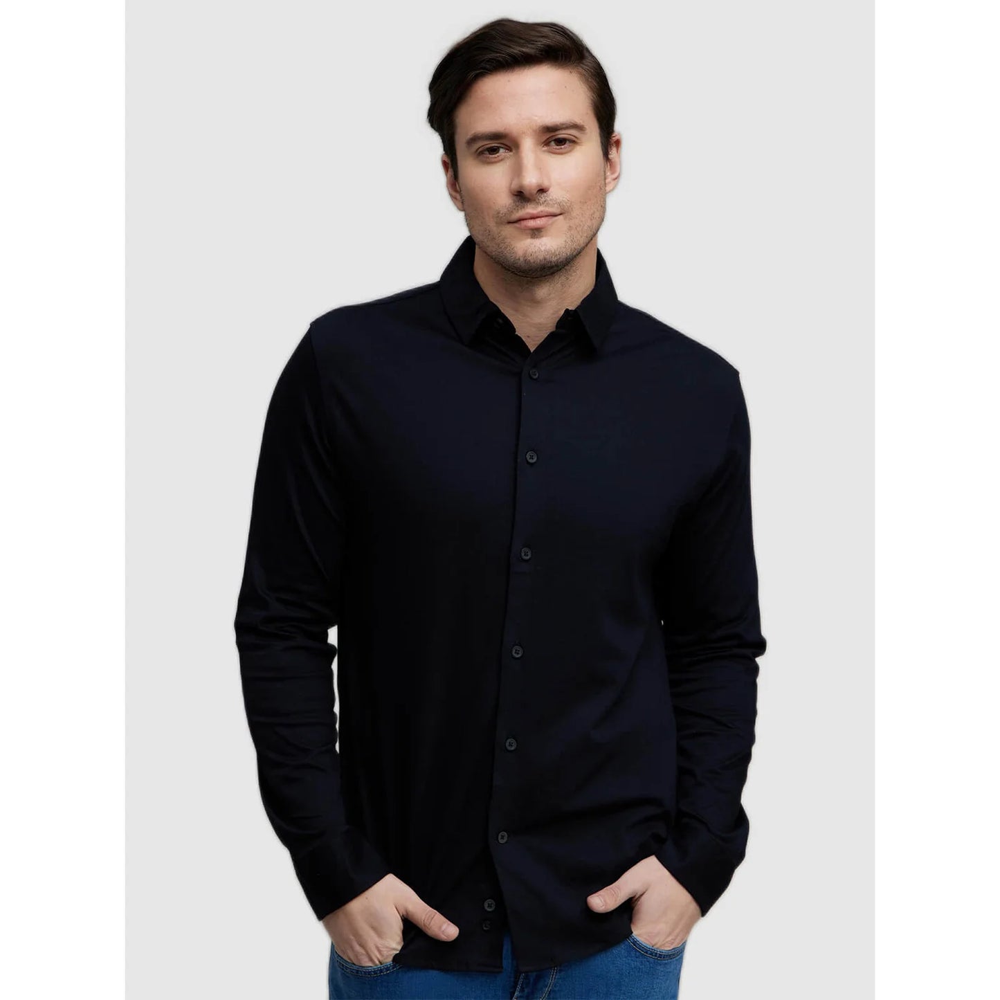 Elevate your casual wardrobe with Celio Men's Black Solid Casual Shirt. Crafted from comfortable cotton, this long sleeve shirt is perfect for any laid-back occasion. Disclaimer: All other items in the image are only for display purposes and will not be a part of the delivery content. Product colour may slightly vary due to photographic lighting sources. Country of Origin - India.