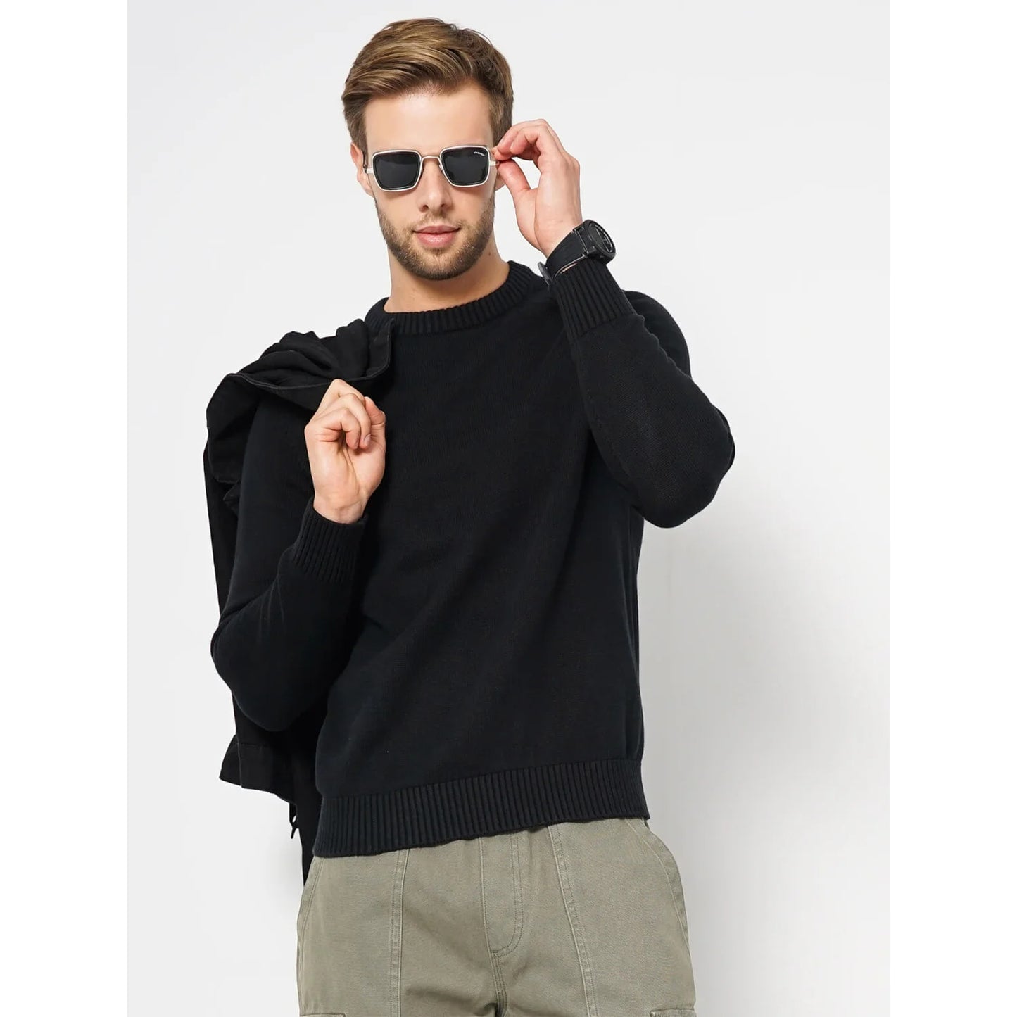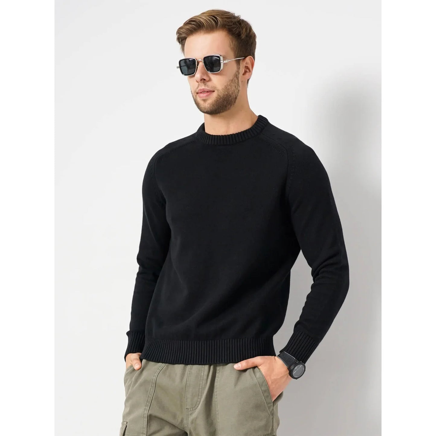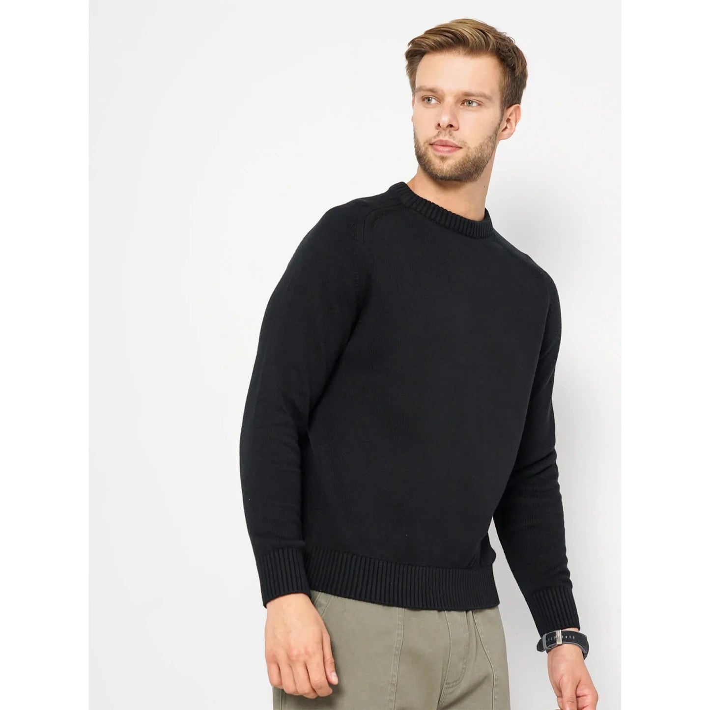 Discover the Celio Black Solid Cotton Sweater in luxurious black. Perfect for casual outings, this long-sleeve piece is tailored for men, blending comfort with style. Disclaimer: All other items in the image are only for display purposes and will not be a part of the delivery content. Product colour may slightly vary due to photographic lighting sources. Country of Origin - India.