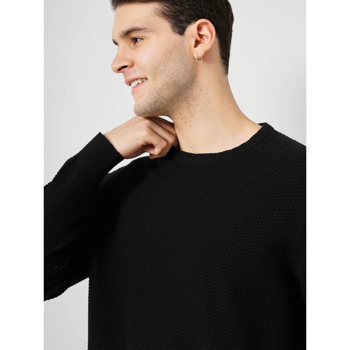Celio* Solid Regular Fit Cotton Black Sweater