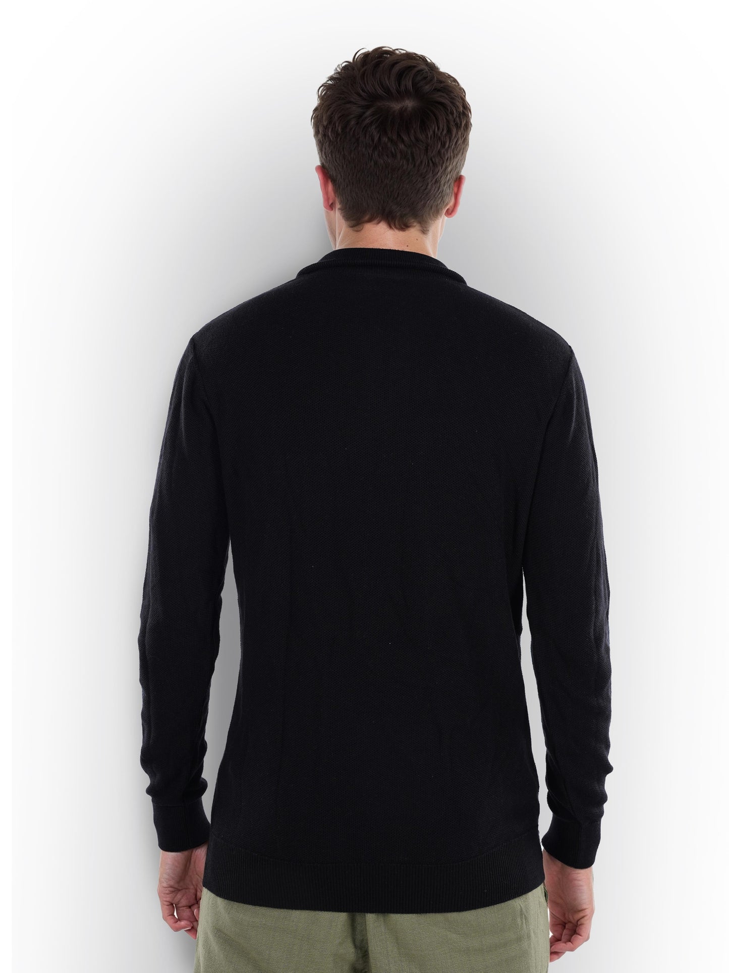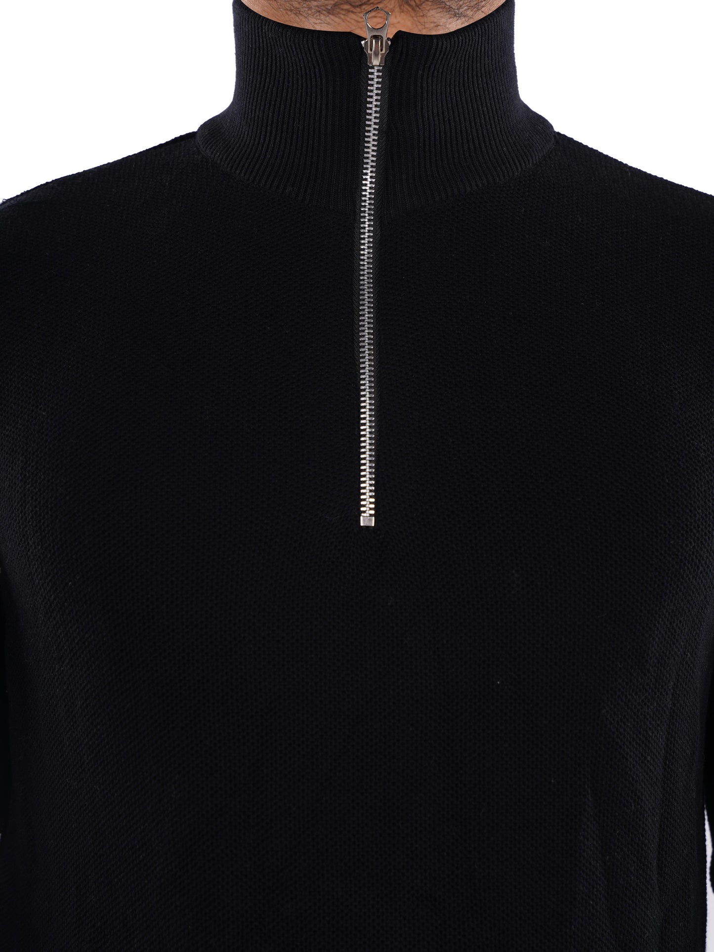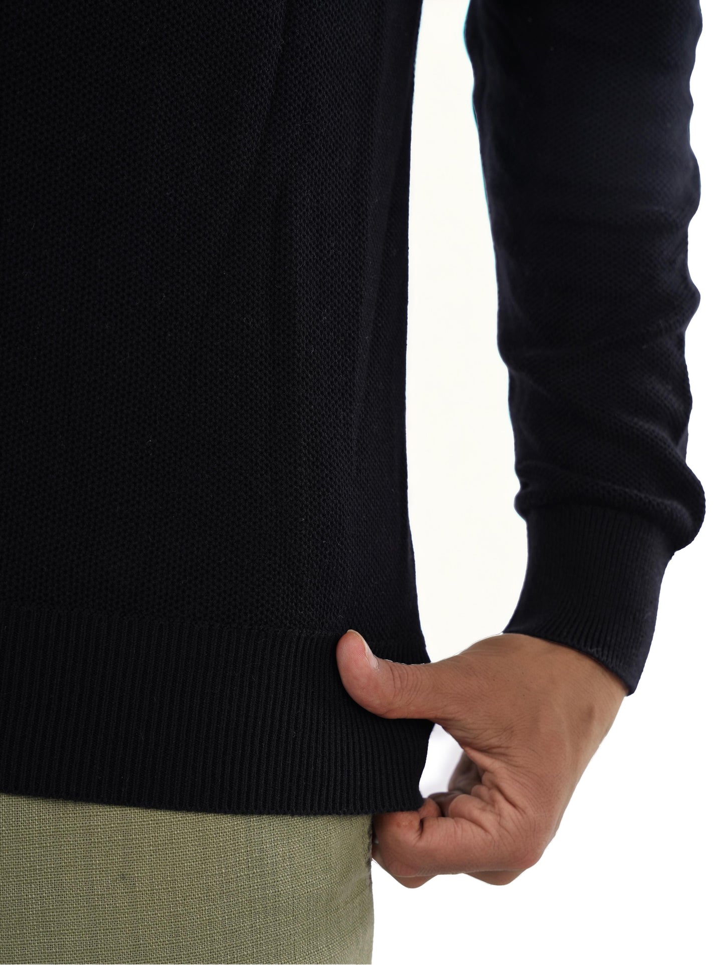 Elevate your casual wardrobe with the Celio Men's Black Mock Collar Sweater. Crafted from comfortable cotton, it features long sleeves and a stylish solid design perfect for any occasion. Disclaimer: All other items in the image are only for display purposes and will not be a part of the delivery content. Product colour may slightly vary due to photographic lighting sources. Country of Origin - India.