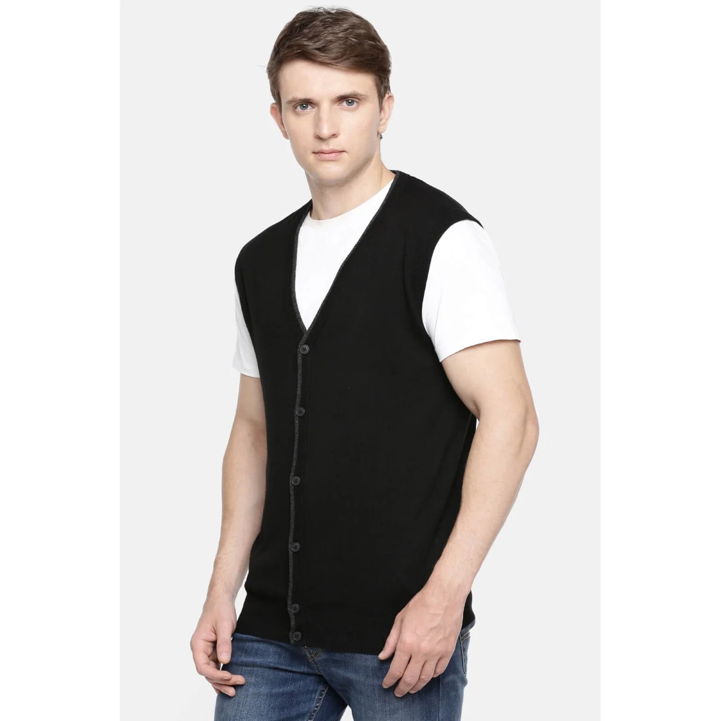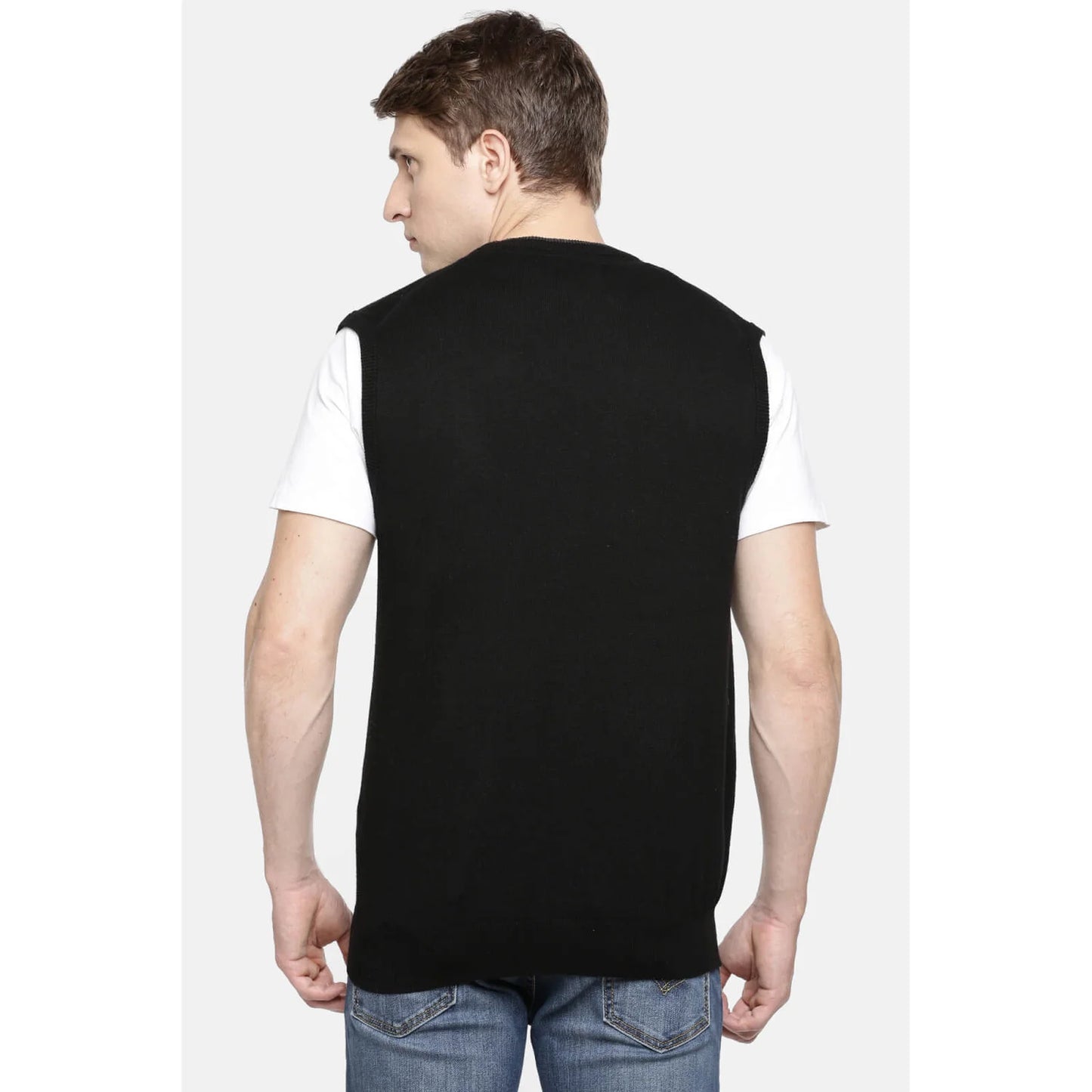 Elevate your casual wardrobe with the Celio Men's Black Solid Straight Fit Sweater. Crafted from soft cotton, this sleeveless piece blends style and comfort effortlessly. Disclaimer: All other items in the image are only for display purposes and will not be a part of the delivery content. Product colour may slightly vary due to photographic lighting sources. Country of Origin - India.