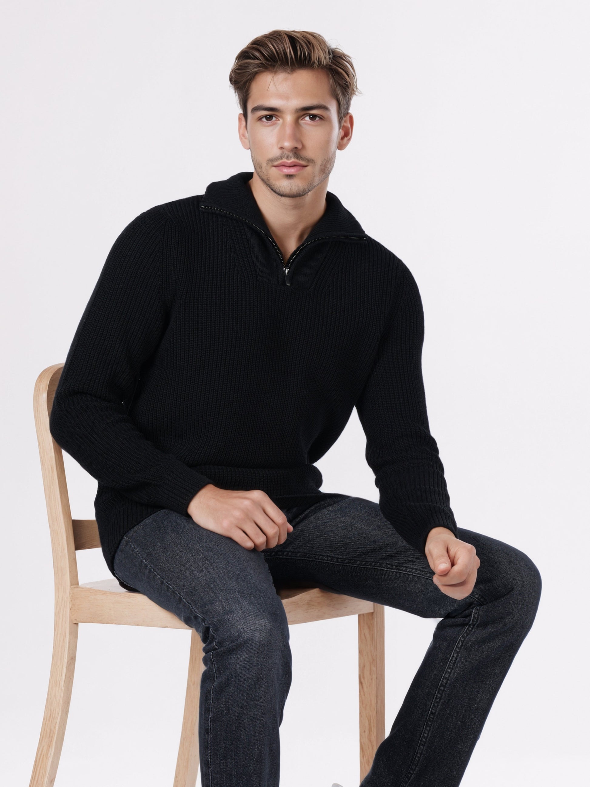Explore casual comfort with the Celio Men Black Solid Sweater, crafted from soft cotton. This regular fit design features long sleeves, perfect for everyday wear. Disclaimer: All other items in the image are only for display purposes and will not be a part of the delivery content. Product colour may slightly vary due to photographic lighting sources. Country of Origin - India.