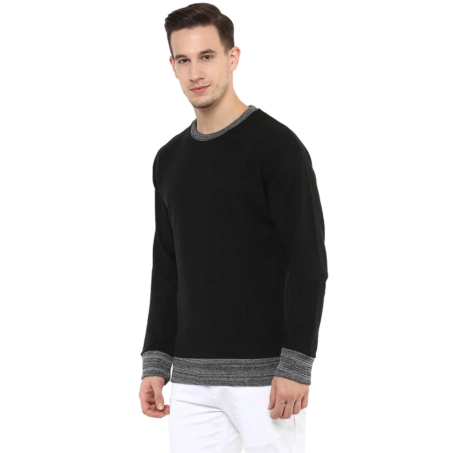 Elevate your casual style with the Celio Men's Jeslub Black Solid Sweatshirt. Made from soft cotton, this long-sleeve black sweatshirt is perfect for any relaxed occasion. Disclaimer: All other items in the image are only for display purposes and will not be a part of the delivery content. Product colour may slightly vary due to photographic lighting sources. Country of Origin - India.