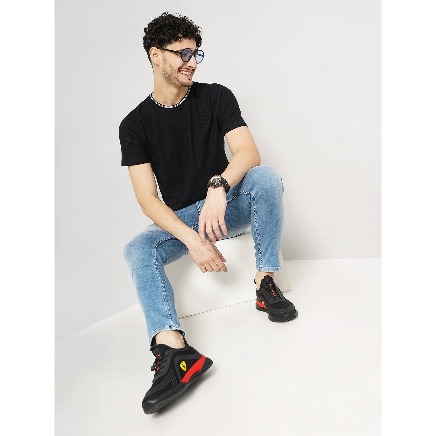 Celio* Solid Regular Fit Cotton Black T-Shirt