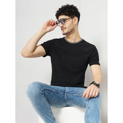 Discover the Celio Solid Half Round Neck Fashion Tshirt in Black. Perfect for casual outings, this half-sleeve cotton tee is designed for men seeking style and comfort. Disclaimer: All other items in the image are only for display purposes and will not be a part of the delivery content. Product colour may slightly vary due to photographic lighting sources. Country of Origin - India.