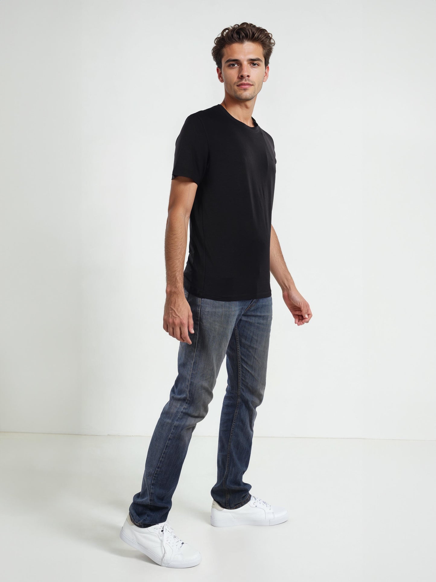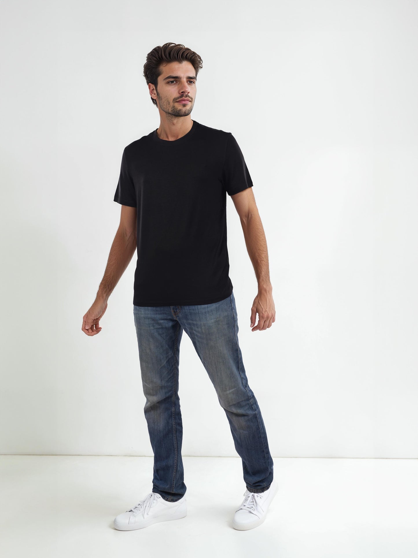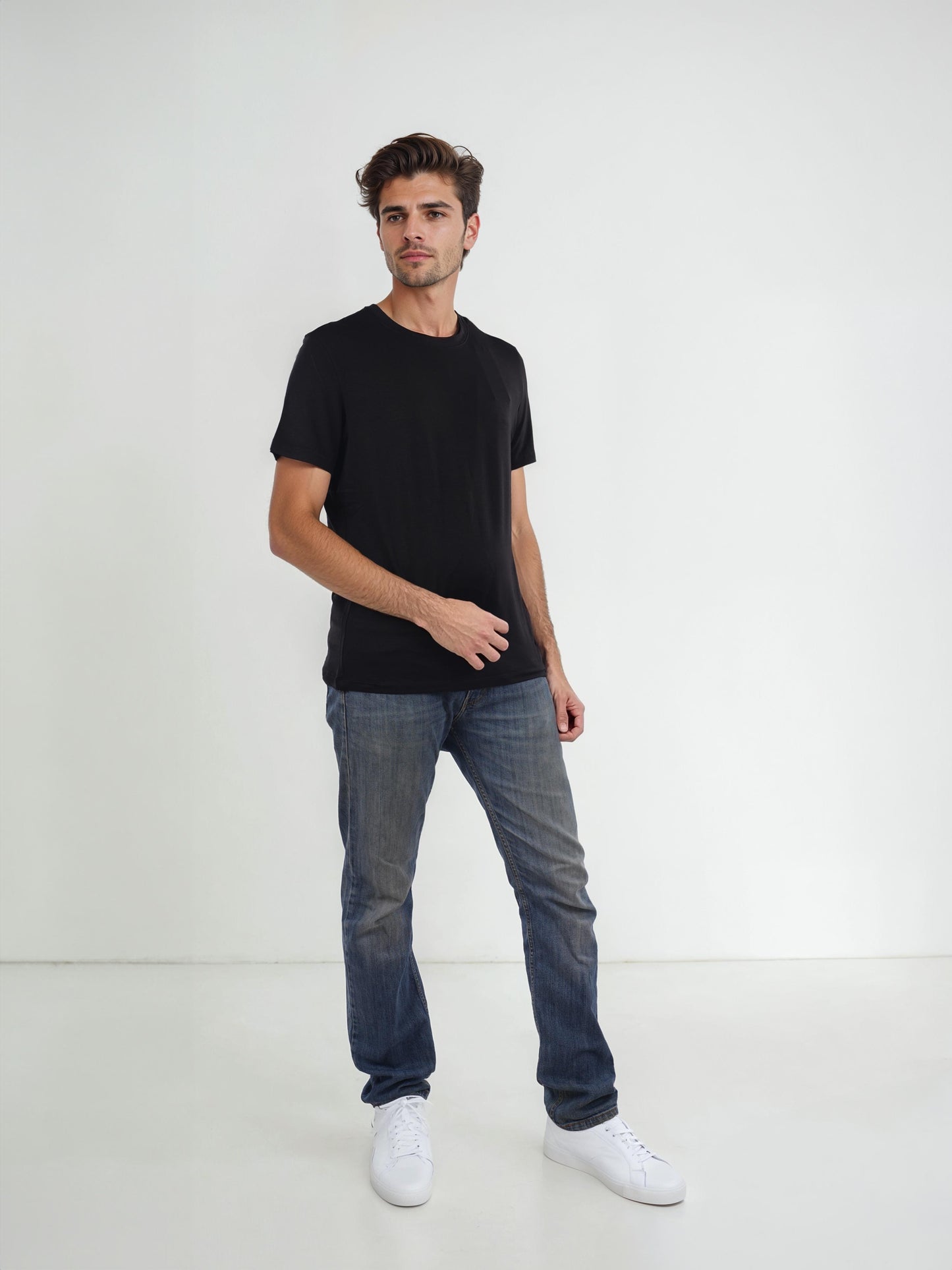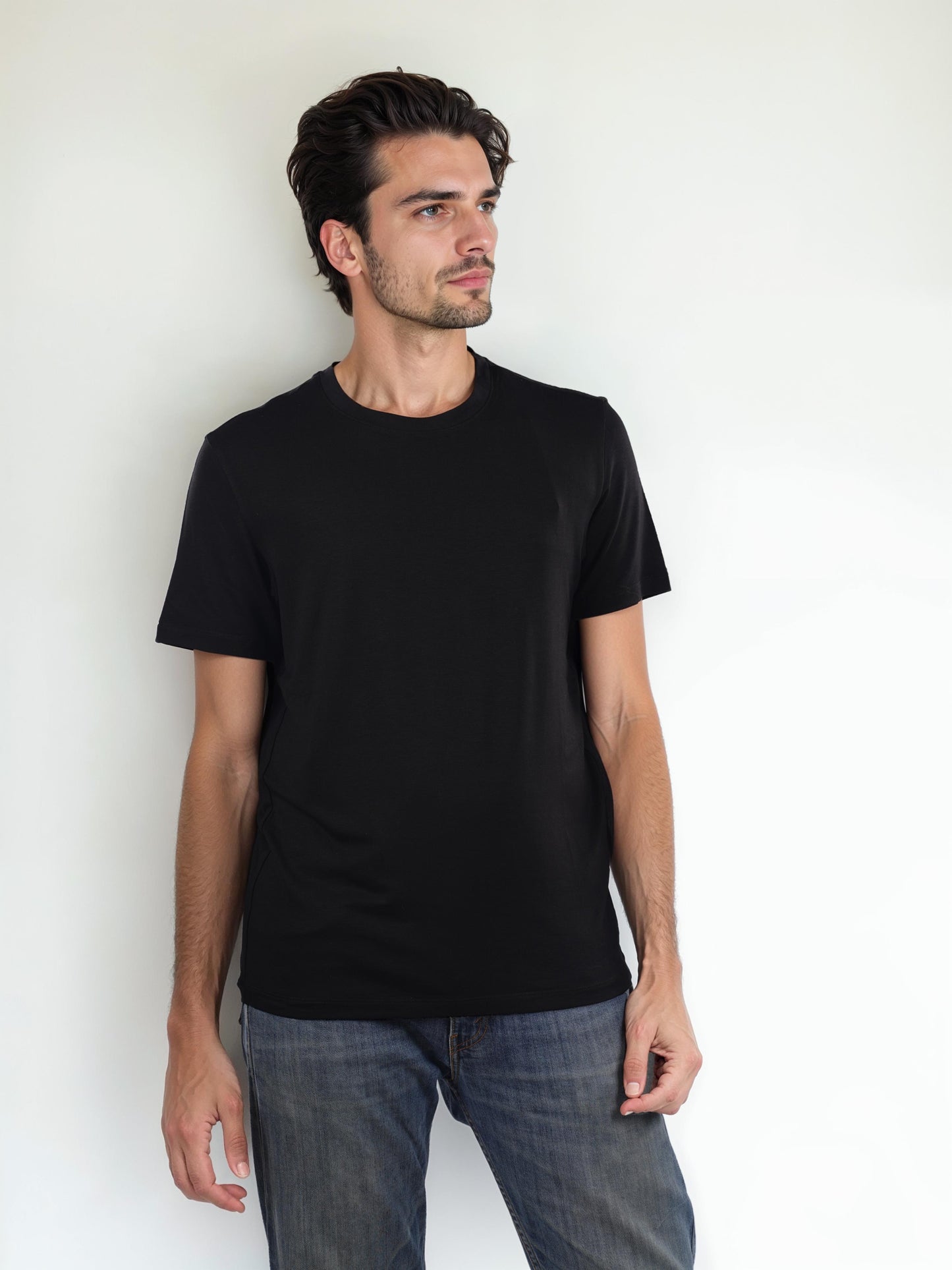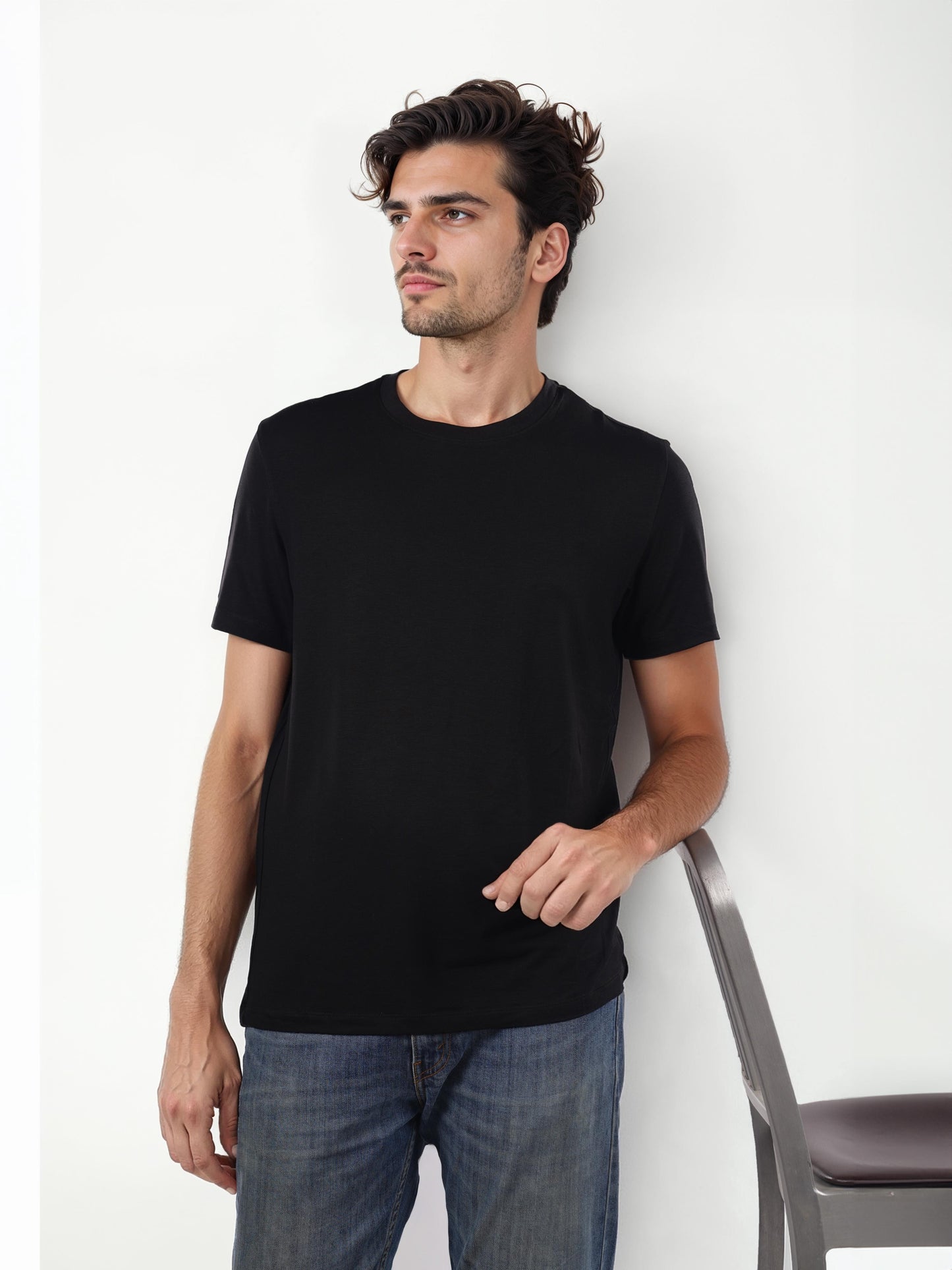Elevate your casual wardrobe with the Celio Men Black Round Neck T-shirt. Made from soft cotton, it features short sleeves and a regular fit, perfect for everyday wear. Disclaimer: All other items in the image are only for display purposes and will not be a part of the delivery content. Product colour may slightly vary due to photographic lighting sources. Country of Origin - India.