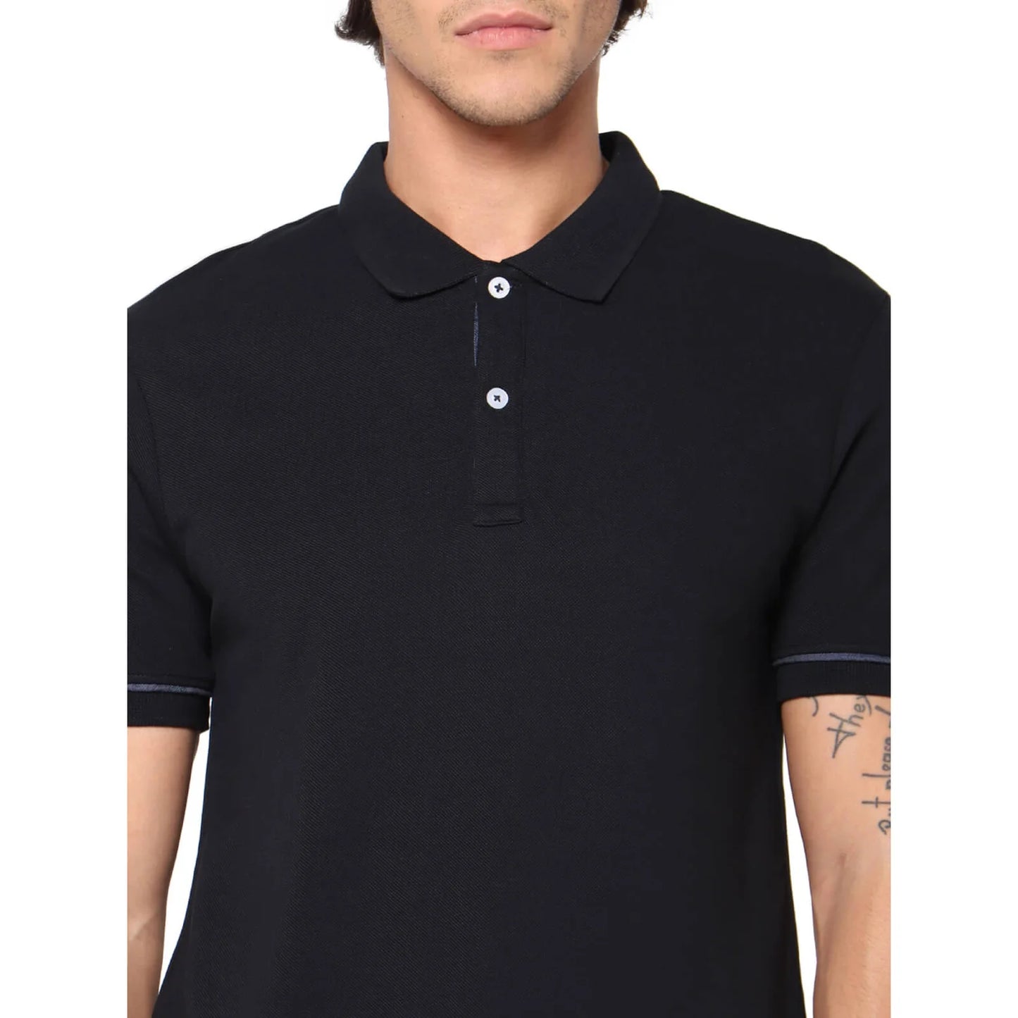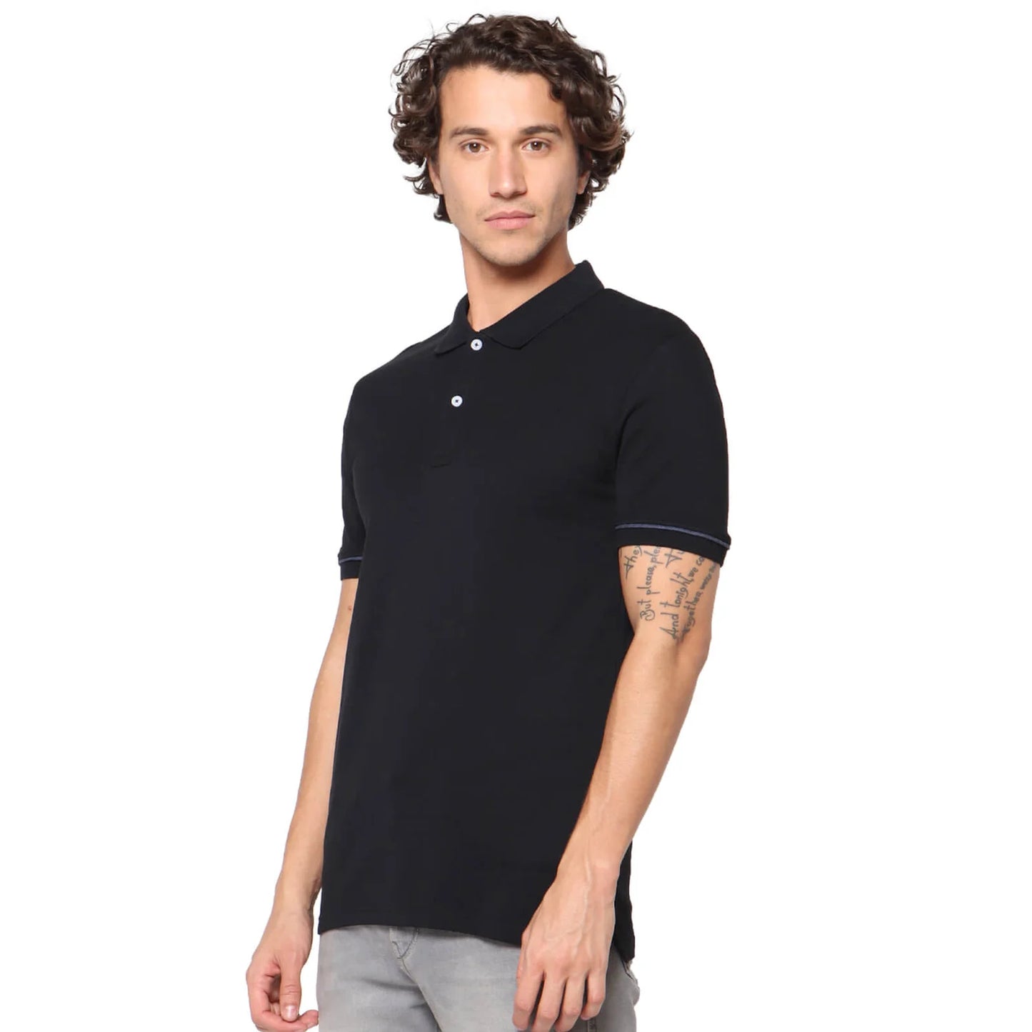 Elevate your casual wardrobe with the Celio Men's Black Solid Polo T-Shirt. Crafted from comfortable cotton, this stylish short-sleeve tee is perfect for any occasion. Disclaimer: All other items in the image are only for display purposes and will not be a part of the delivery content. Product colour may slightly vary due to photographic lighting sources. Country of Origin - India.