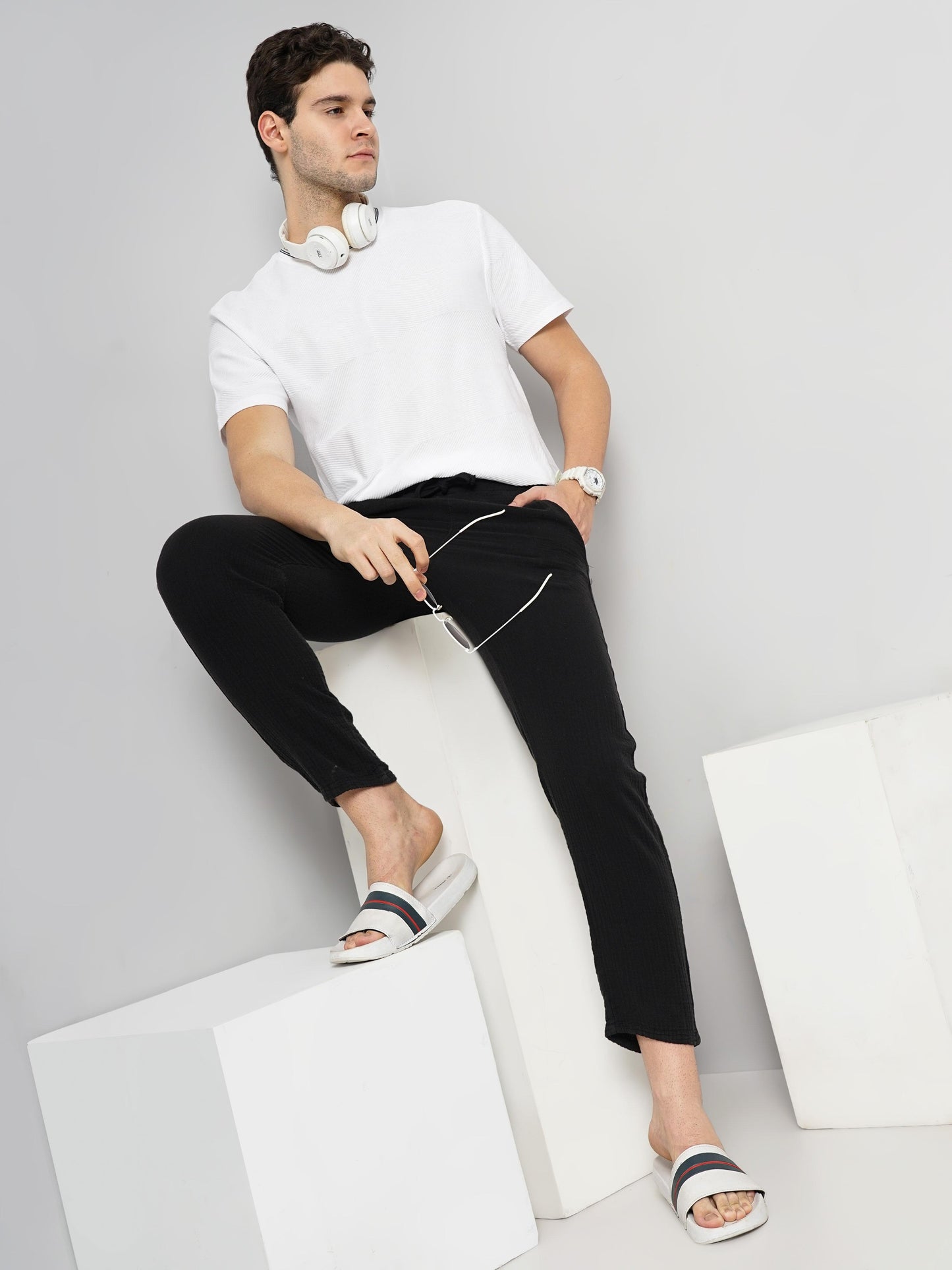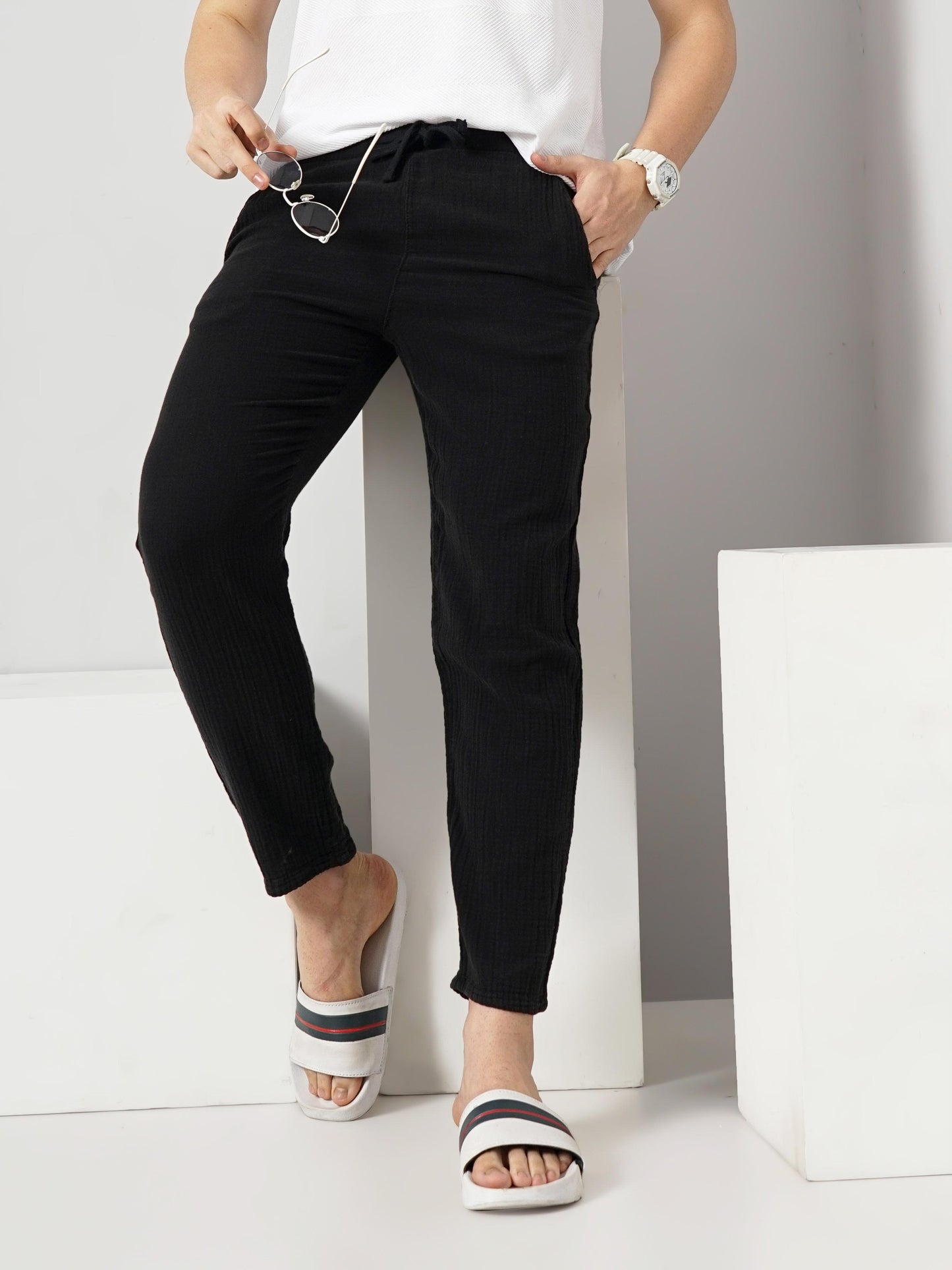 Enhance your casual wardrobe with Celio Men Black Solid Regular Fit Fashion Trouser. Made from soft cotton, these stylish Trouser offer comfort and versatility for any occasion. Disclaimer: All other items in the image are only for display purposes and will not be a part of the delivery content. Product colour may slightly vary due to photographic lighting sources. Country of Origin - India.