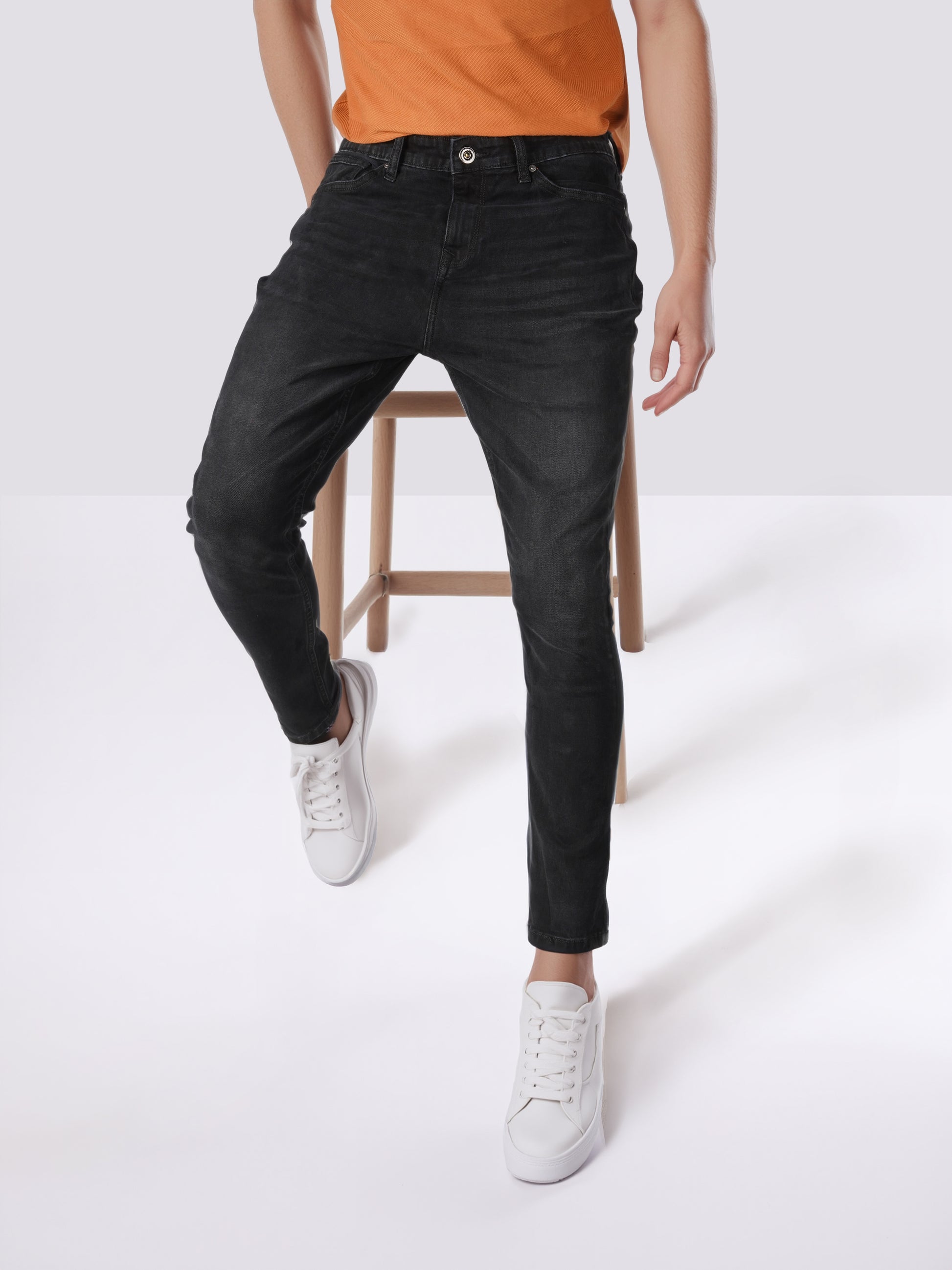 Elevate your casual wardrobe with Celio Men Black Solid Skinny Fit Ankle Length Jeans. Made from comfortable cotton, these stylish jeans offer a modern look perfect for any occasion. Disclaimer: All other items in the image are only for display purposes and will not be a part of the delivery content. Product colour may slightly vary due to photographic lighting sources. Country of Origin - India.