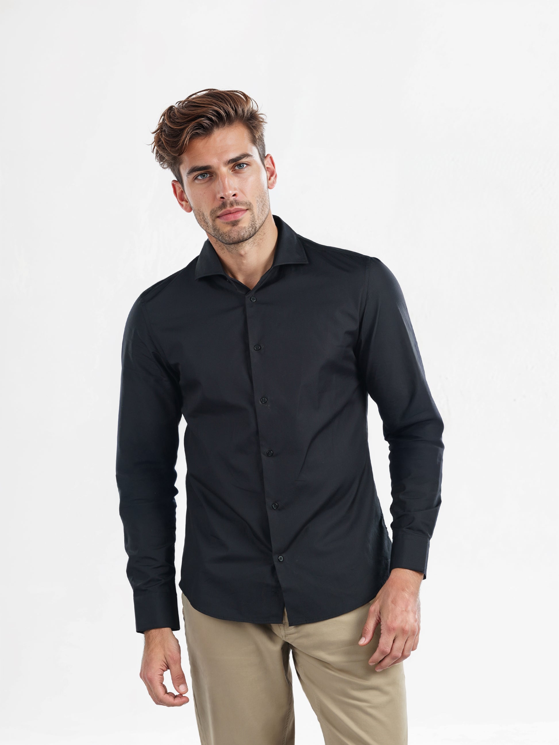 Elevate your casual attire with the Celio Men Black Solid Slim Cotton Formal Shirt. Featuring short sleeves and a sleek design, it combines comfort and style perfectly. Disclaimer: All other items in the image are only for display purposes and will not be a part of the delivery content. Product colour may slightly vary due to photographic lighting sources. Country of Origin - India.