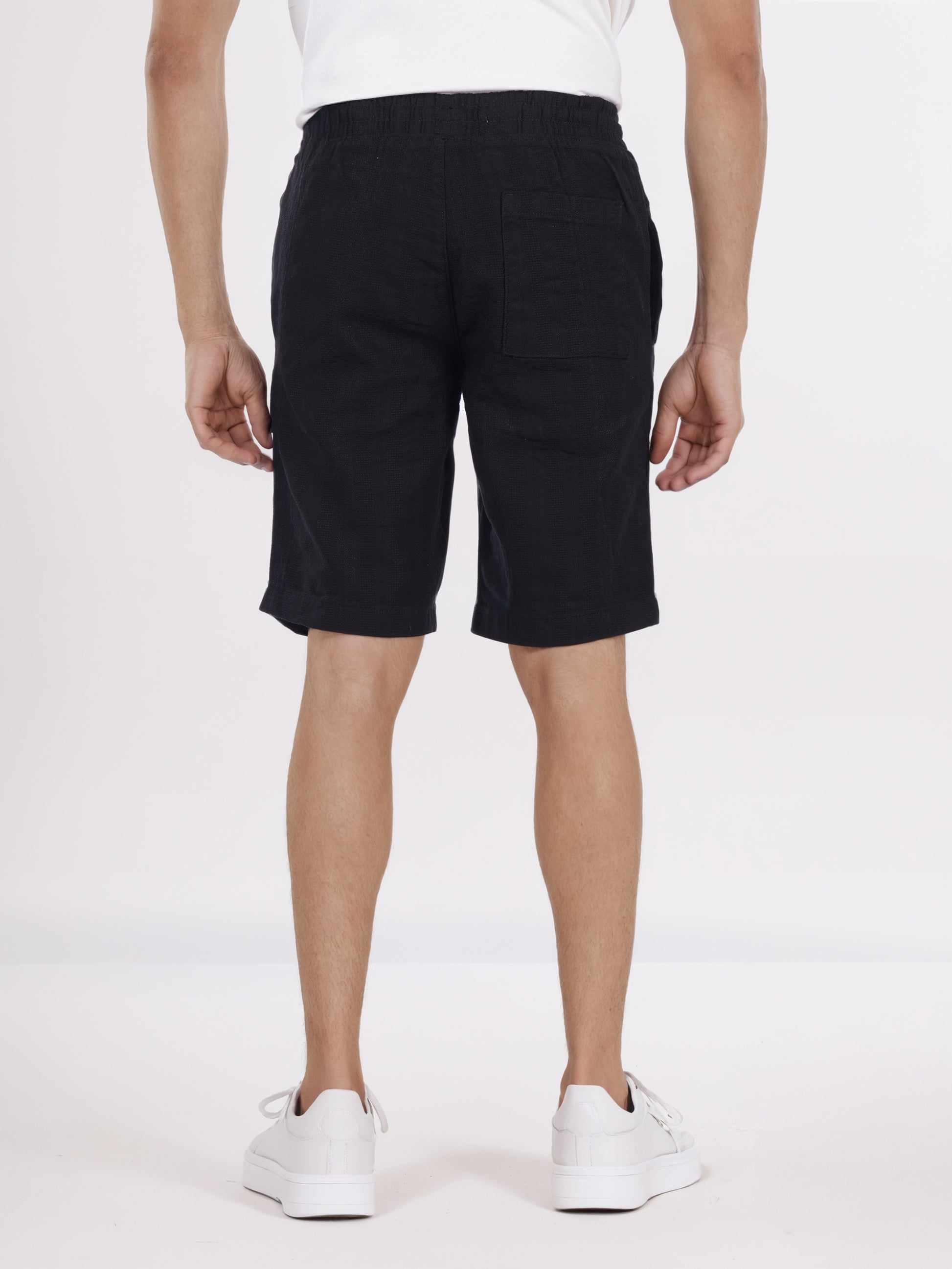 Elevate your casual wardrobe with Celio's black solid Bermuda shorts for men. Crafted from comfortable cotton, these straight fit shorts are perfect for laid-back outings. Disclaimer: All other items in the image are only for display purposes and will not be a part of the delivery content. Product colour may slightly vary due to photographic lighting sources. Country of Origin - India.